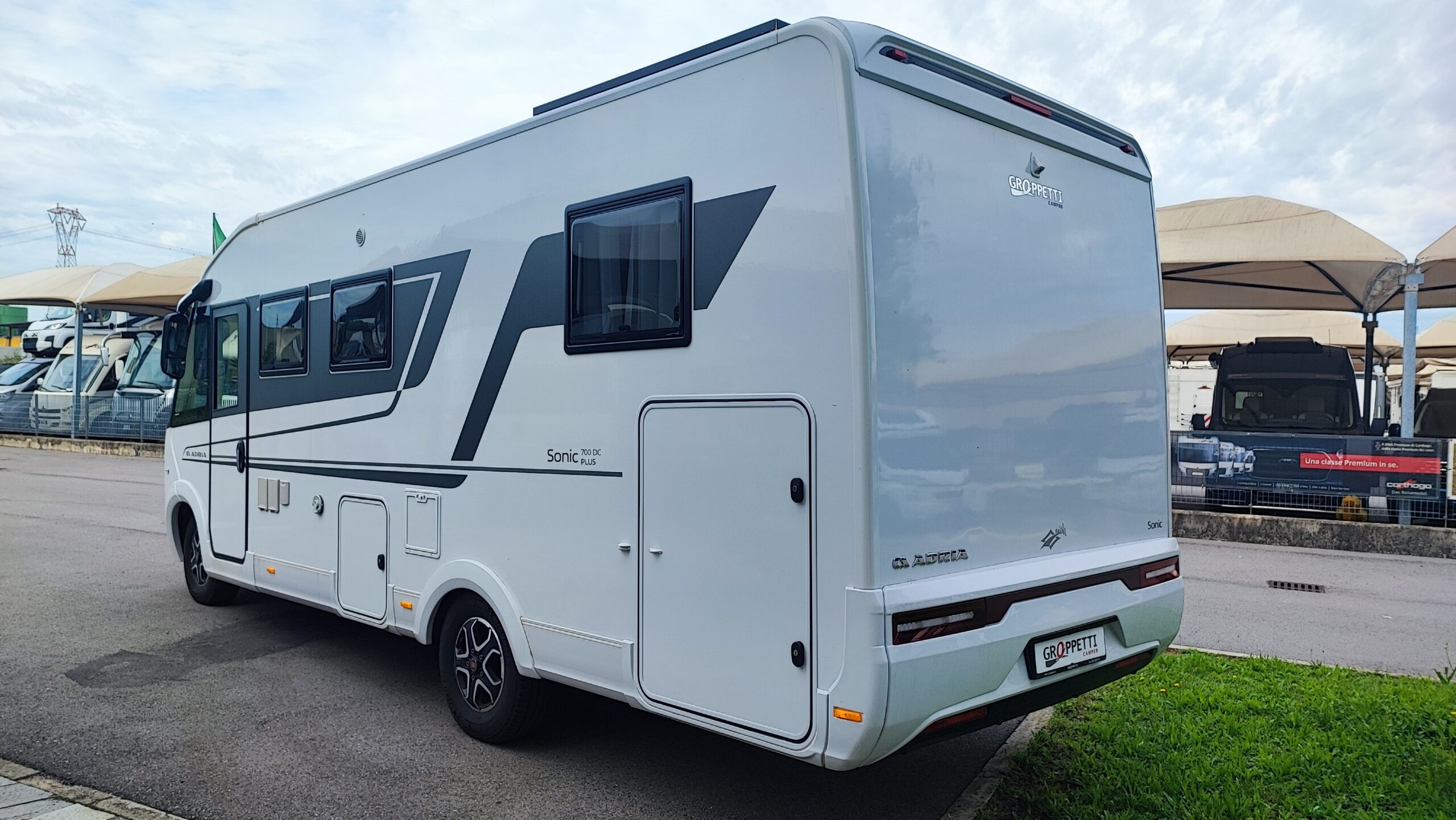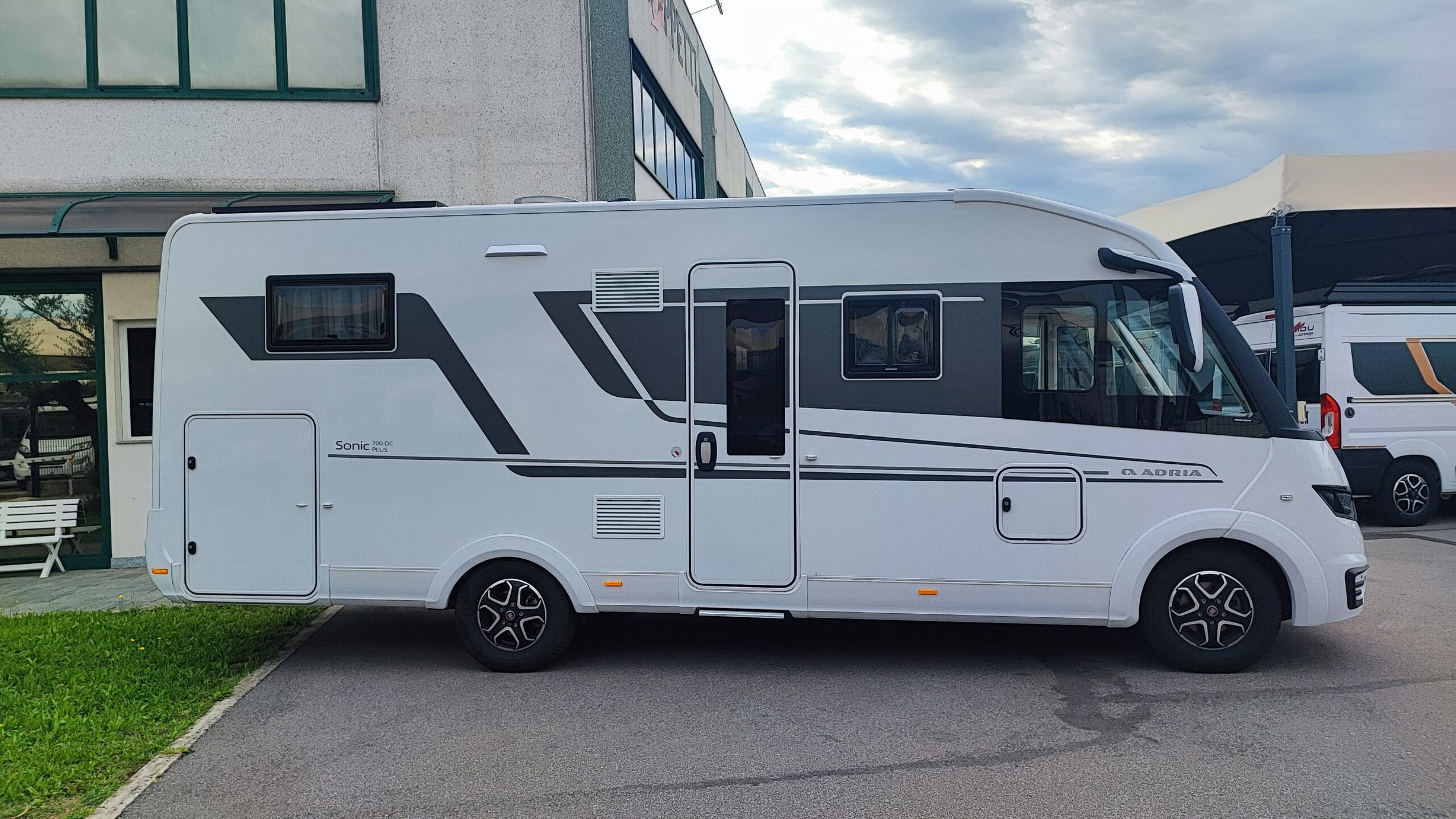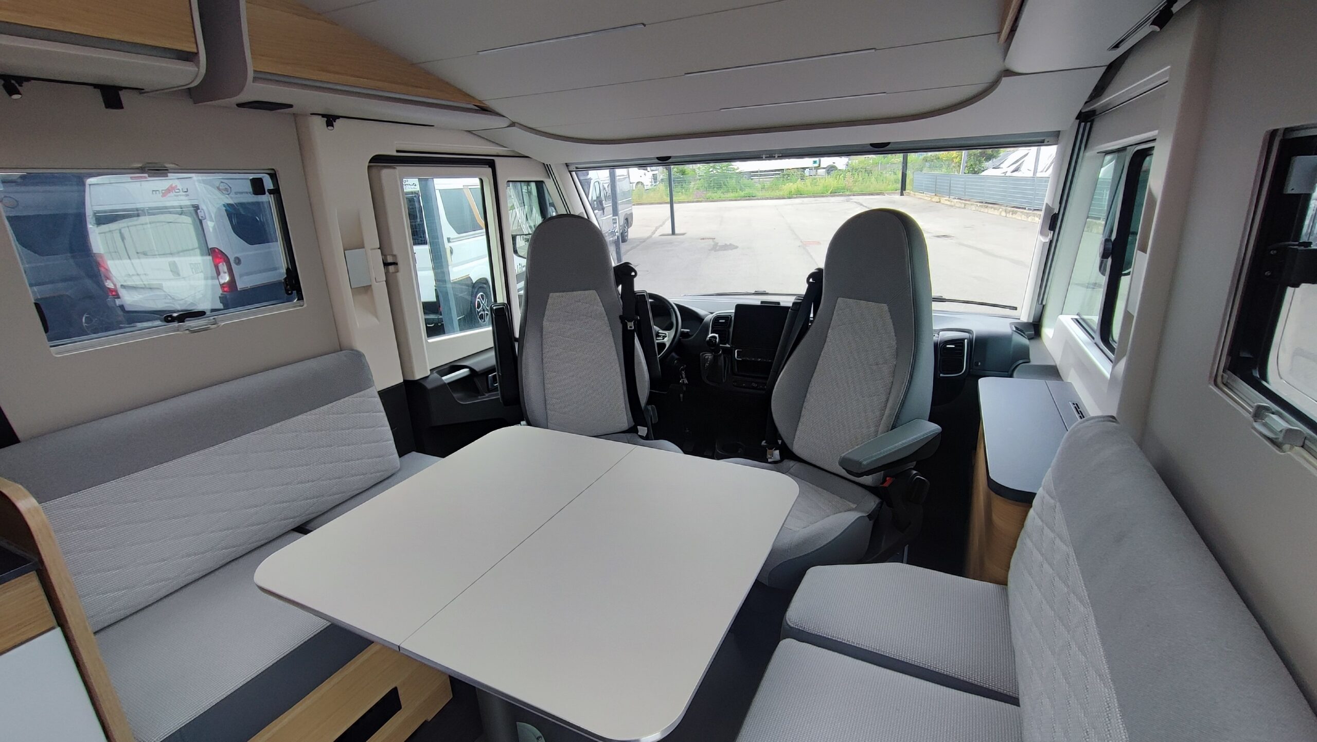 2 Pannelli solari – Letto basculante elettrico – Antifurto perimetrale e volumetrico – Oblò Sky Roof su letto basculante – Piastra porta Tv zona giorno – Ampia porta garage lato guidatore – Sistema di sicurezza in viaggio Truma secumotion con scambiatore automatico bombole Duocontrol e segnalatore interno – Frigorifero Slimtower a commutazione automatica – Porta cellula XL con chiusura a 2 punti, finestra, pattumiera e chiusura centralizzata – Luce esterna – Oblò Midi Heki zona giorno – Zanzariera scorrevole porta cellula – Luci a led interne dimmerabili – Attacchi + piastra porta TV zona letto posteriore – Comando CP Plus per Truma Combi – Letto posteriore con funzione alza/abbassa elettrico – Attacco acqua calda/fredda in garage – Presa 12v + 220v aggiuntiva in garage – Tappezzeria in similpelle e tessuto – Triogas – SOG per cassetta wc – Prese USB e USBC aggiuntive letto posteriore – Tappezzeria in similpelle e tessuto