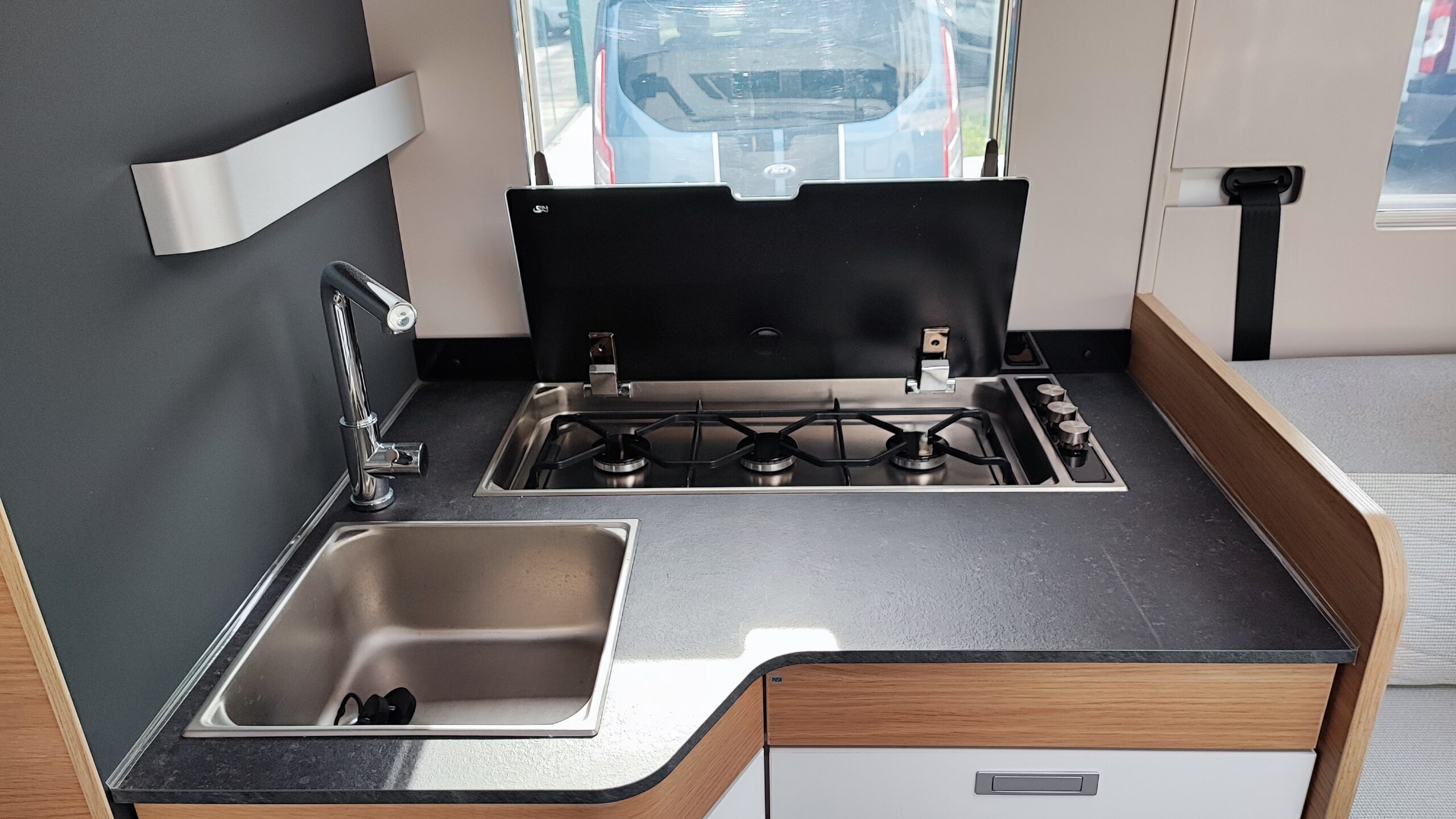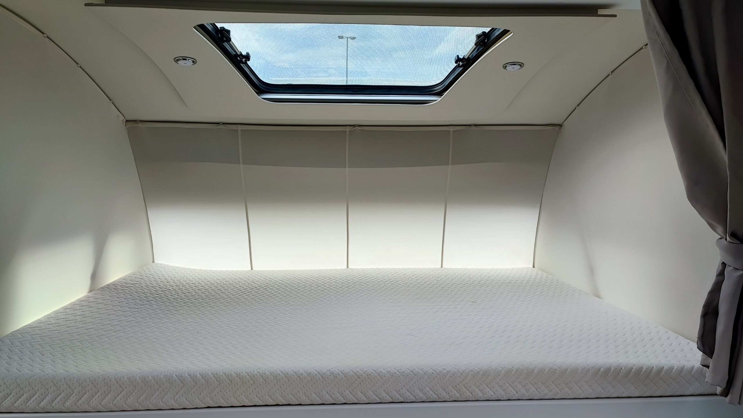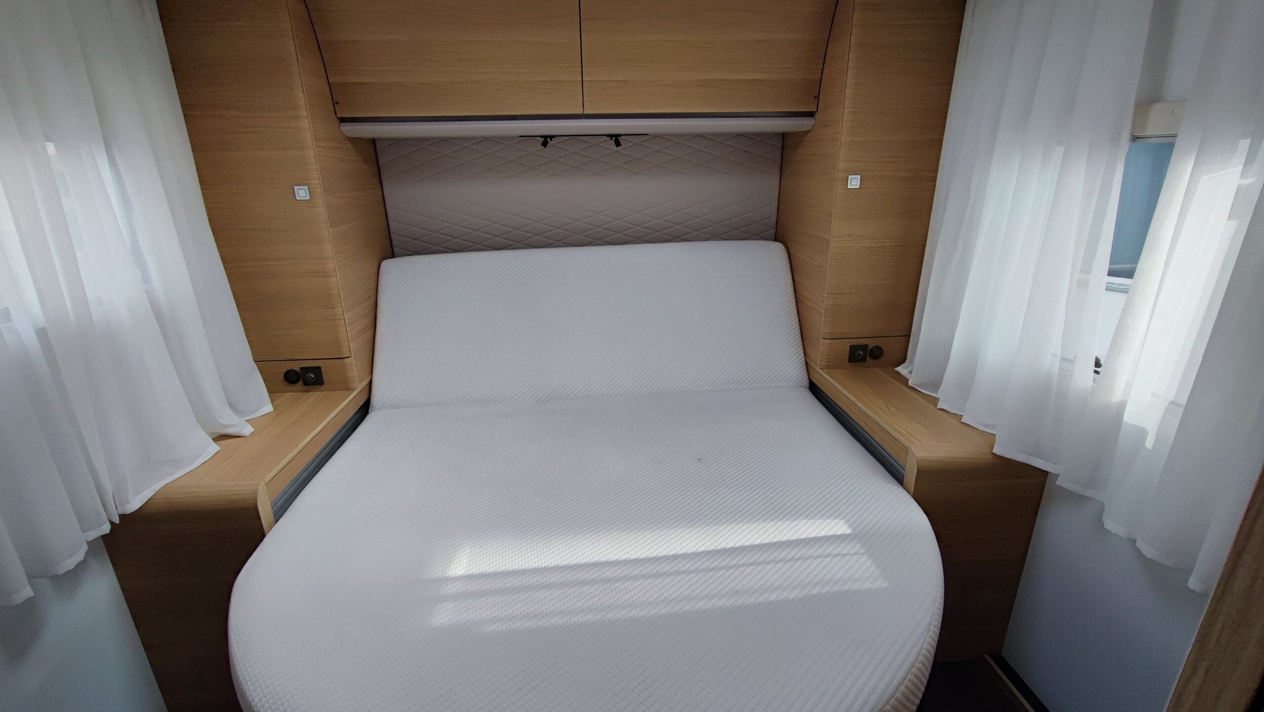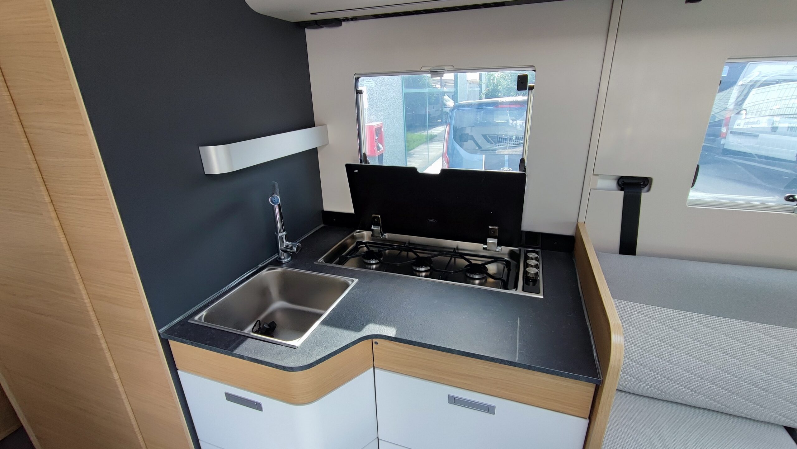 2 Pannelli solari – Letto basculante elettrico – Antifurto perimetrale e volumetrico – Oblò Sky Roof su letto basculante – Piastra porta Tv zona giorno – Ampia porta garage lato guidatore – Sistema di sicurezza in viaggio Truma secumotion con scambiatore automatico bombole Duocontrol e segnalatore interno – Frigorifero Slimtower a commutazione automatica – Porta cellula XL con chiusura a 2 punti, finestra, pattumiera e chiusura centralizzata – Luce esterna – Oblò Midi Heki zona giorno – Zanzariera scorrevole porta cellula – Luci a led interne dimmerabili – Attacchi + piastra porta TV zona letto posteriore – Comando CP Plus per Truma Combi – Letto posteriore con funzione alza/abbassa elettrico – Attacco acqua calda/fredda in garage – Presa 12v + 220v aggiuntiva in garage – Tappezzeria in similpelle e tessuto – Triogas – SOG per cassetta wc – Prese USB e USBC aggiuntive letto posteriore – Tappezzeria in similpelle e tessuto