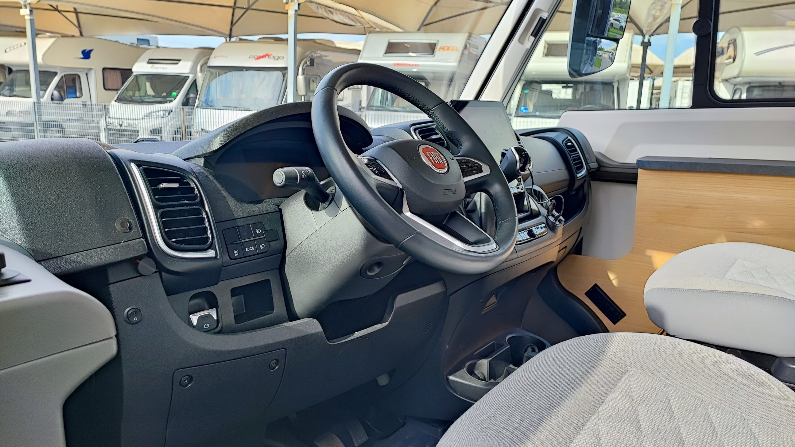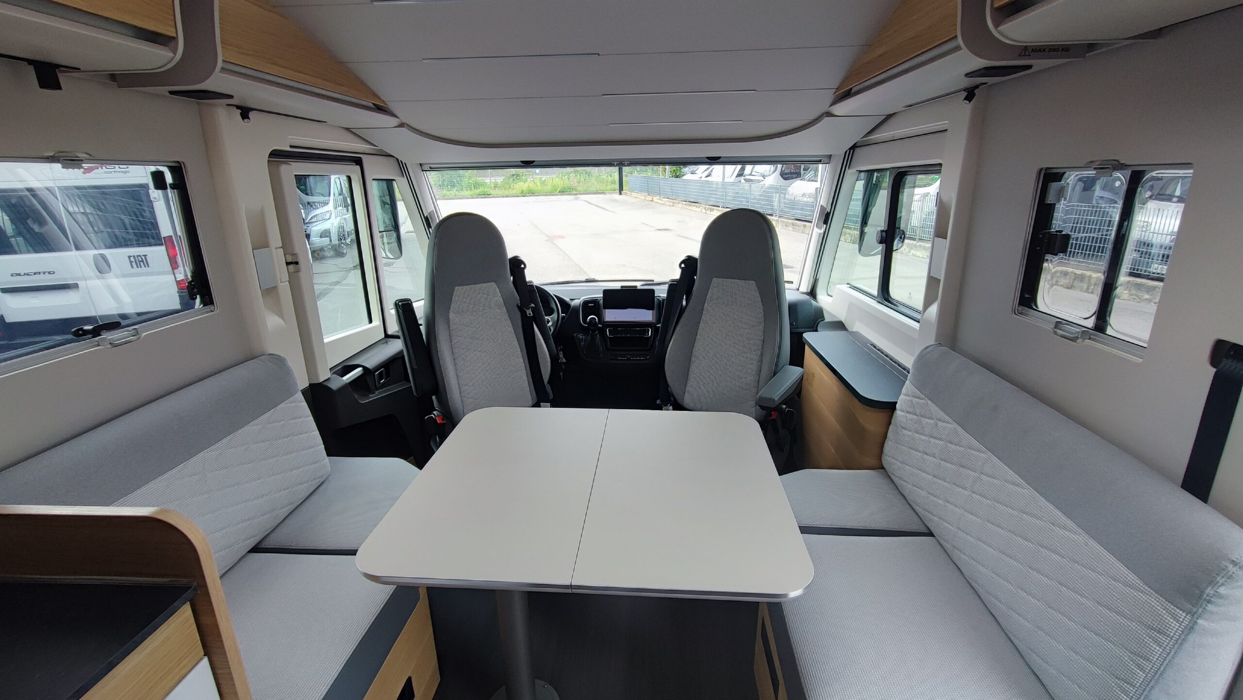 Fiat Ducato 2.200 cc Multijet III 180 cv – EURO 6D Final con AdBlue – Cambio automatico a 9 rapporti – Clima cabina automatico – Sistema Multimediale Fiat da 10” con DAB+/Nav. Sat e calcolo itinerari per autocaravan/ Android Auto/Apple Carplay – Sospensioni ad aria assale posteriore con compressore dedicato – Sensori di parcheggio anteriori e posteriori – Cruise control e limitatore di velocità – Cerchi in lega con pneumatici da 16” – Sensori di parcheggio anteriori e posteriori – TPMS (sistema di controllo pressione pneumatici) – Sedili cabina regolabili con piastre girevoli, con braccioli e in tinta – Retrocamera – ABS – ASR – ESP – TRACTION + – HILL HOLDER – HILL DESCENDT CONTROL – Doppio Airbag – Volante in pelle – Specchietti e finestrini elettrici – Oscurante plissettati per parabrezza e laterali – Comandi radio al volante – Presa USB/USBC in cabina – Fendinebbia – Start & Stop