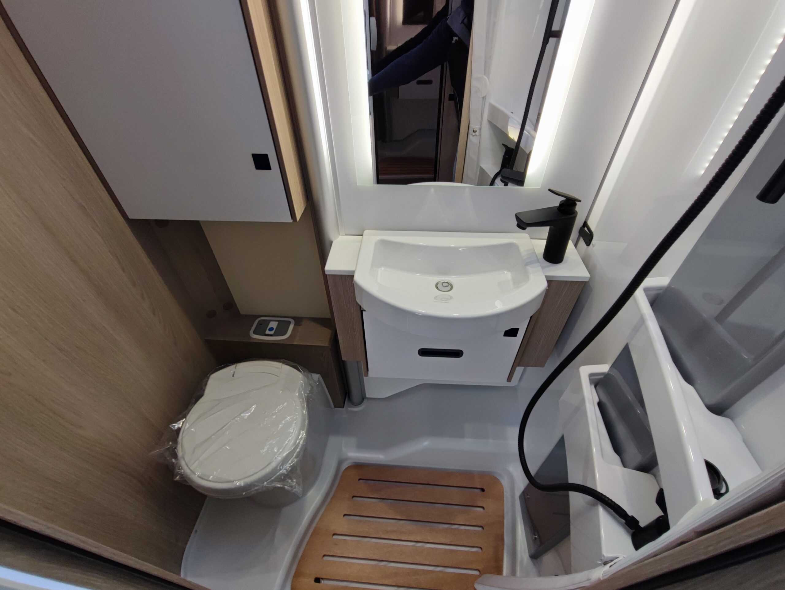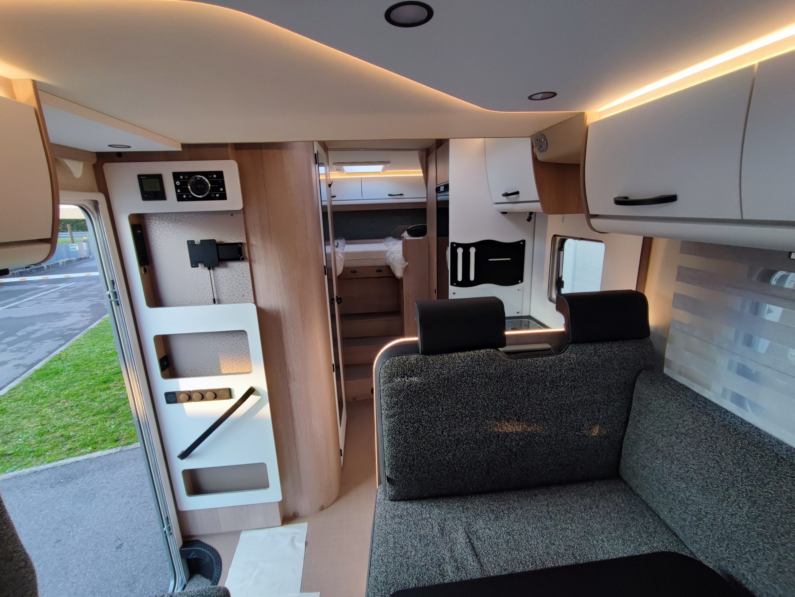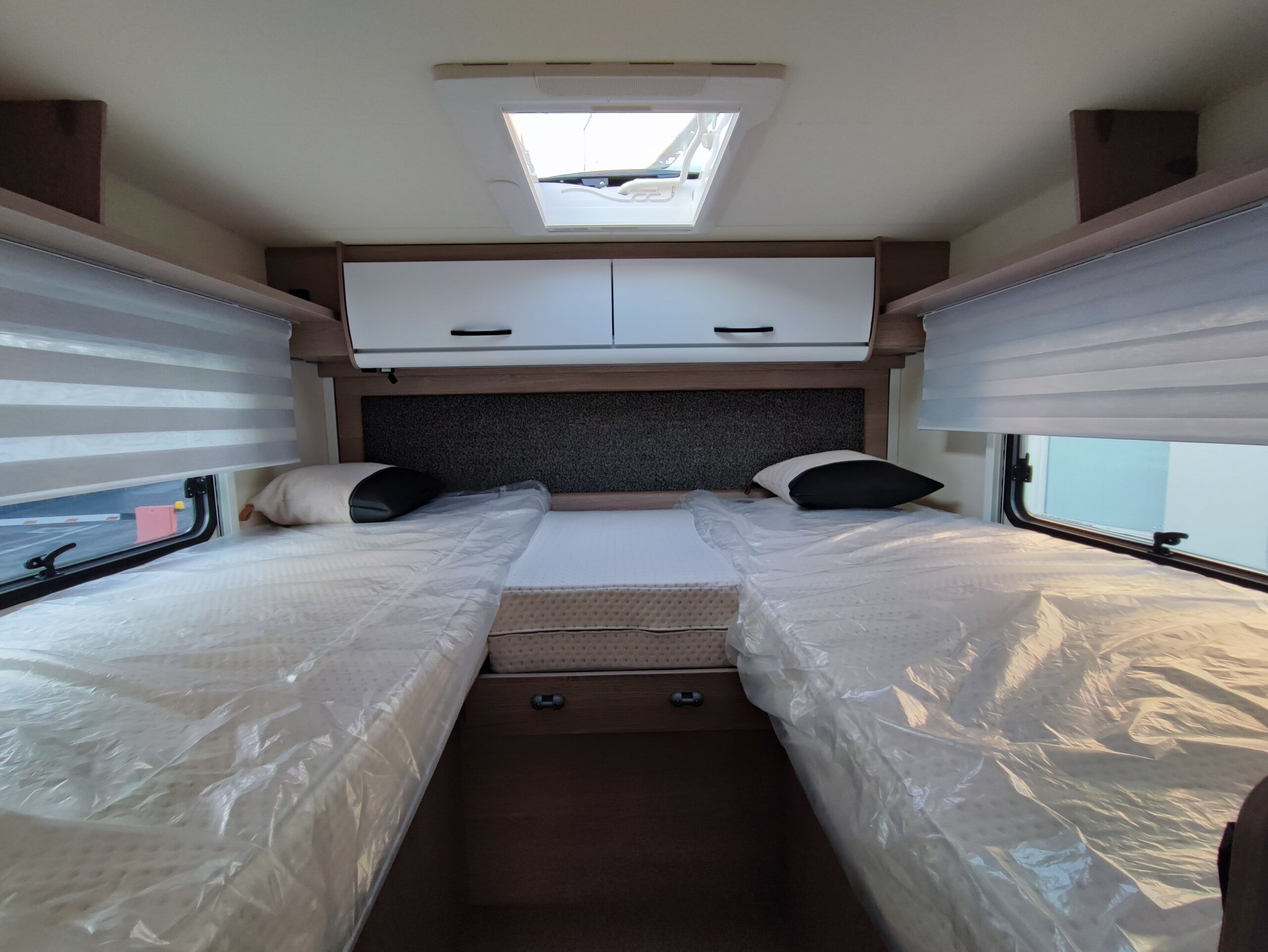 PACCHETTO SKYLINE: Riscaldamento a gas Truma Combi 6000k, Frigo 145lt con scomparto freezer integrato, Finestre a filo carrozzeria con oscurante/zanzariera, Porta cellula Xl con finestra, pattumiera e zanzariera plissettata, Oblò midi heki 50à—70 posteriore, Porta supplementare del garage a sinistra, Oscuranti plissettati cabina, Centralina elettronica LCD Touch SCU, Sunroof panoramico anteriore, Pack illuminazione con luci led ambiente e prese USB, Presa esterna 12/220/TV, guide con ganci in garage, piano cucina inox 3 fuochi, bagno con sistema VARIO e doccia integrata
