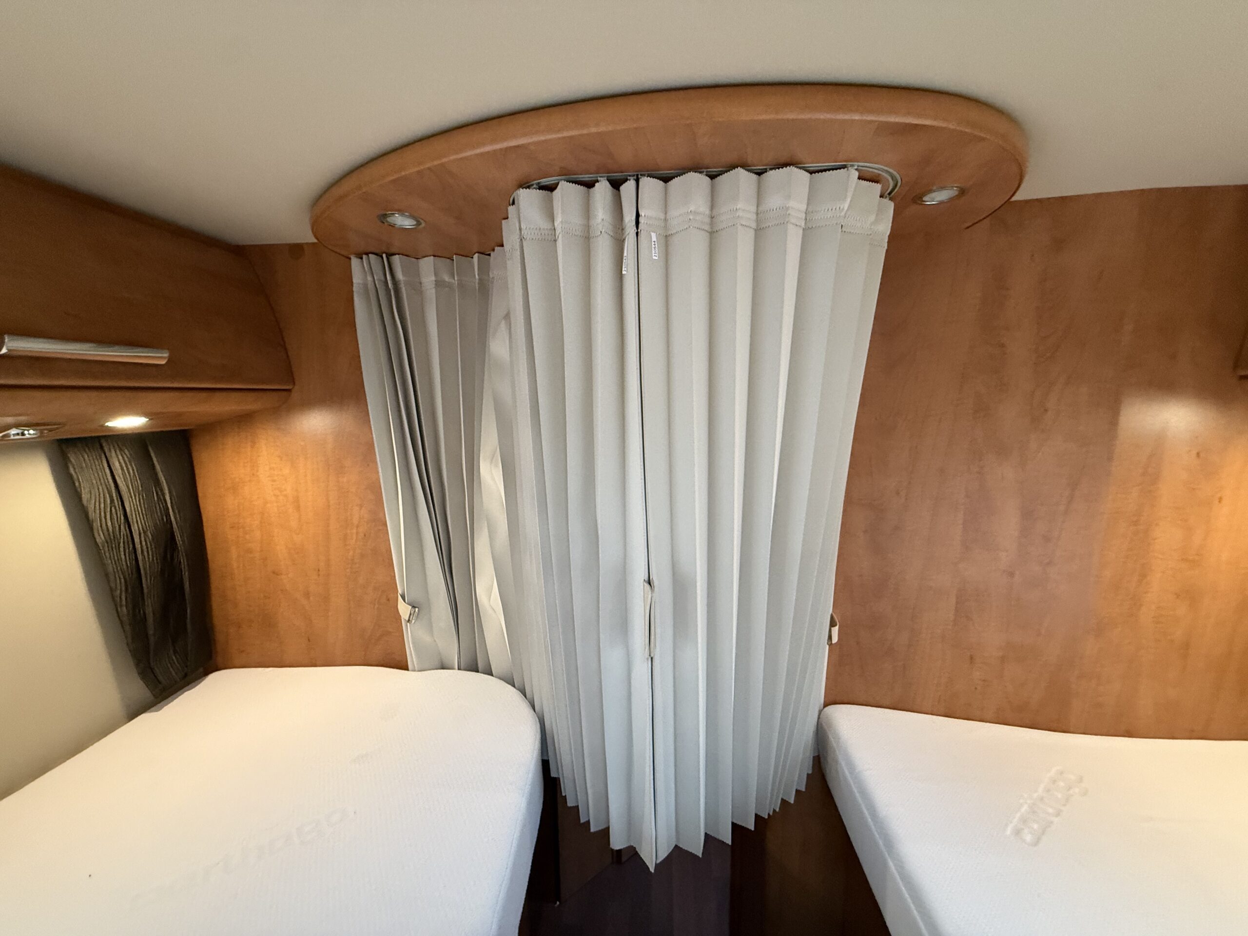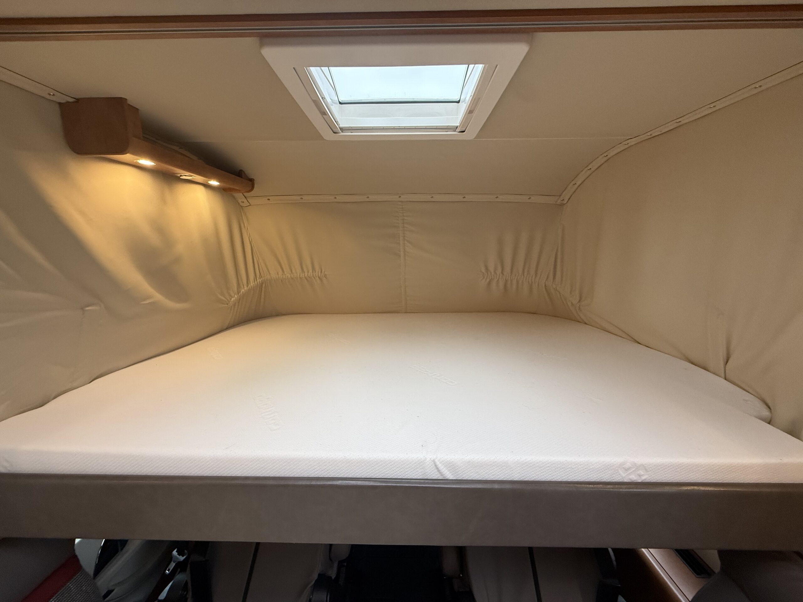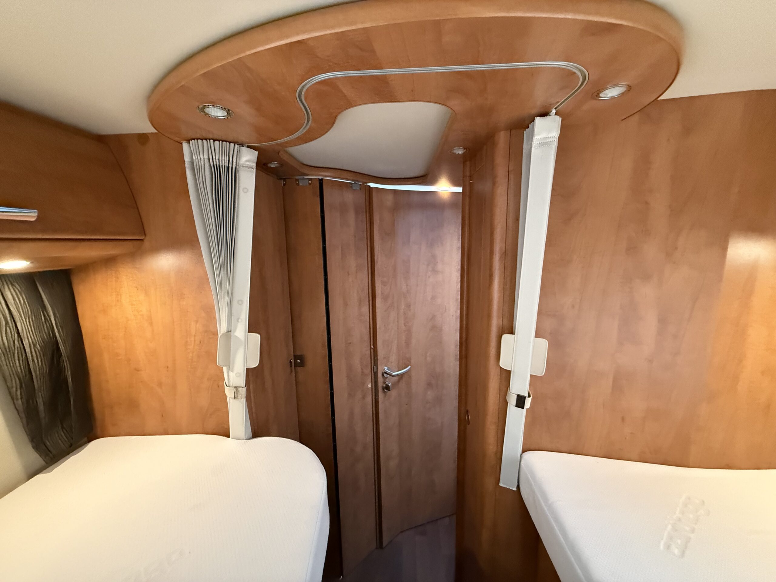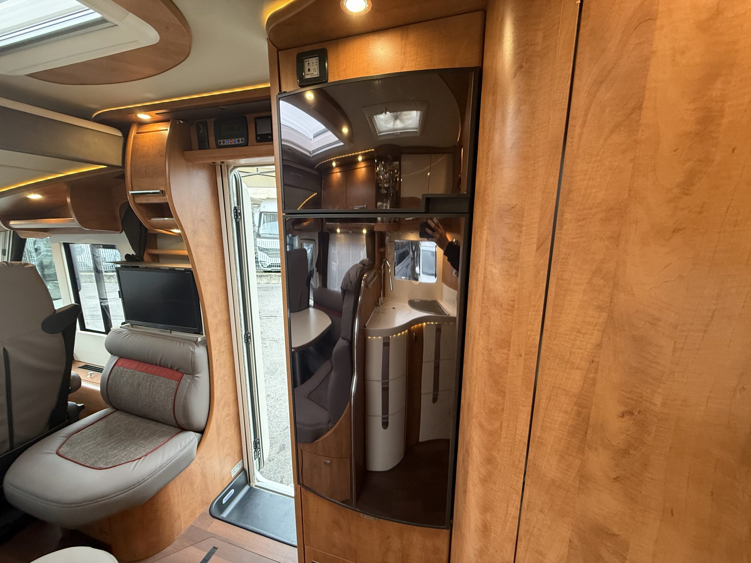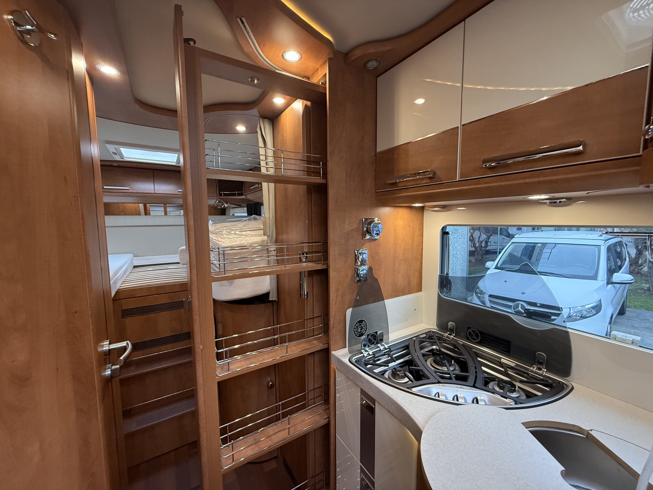 Veranda a tetto con cassone anodizzato – Riscaldamento a termosifoni Alde ad acqua (funzionalità a gas ed elettrico) – Antenna satellitare a puntamento automatico Teleco – Scambiatore di calore in collegamento con Alde – Pannello solare – Doppia batteria servizi – Oblò con Turbovent in cucina – Ulteriore riscaldamento a gasolio Eberspacher in collegamento con Alde – Inverter 1.500 w onda pura con remote e collegamento prese 220v interne – Sistema di sicurezza in viaggio per il gas Truma Securmotion con scambiatore automatico bombole Duocontrol e filtri – TV zona giorno con piastra Sali scendi