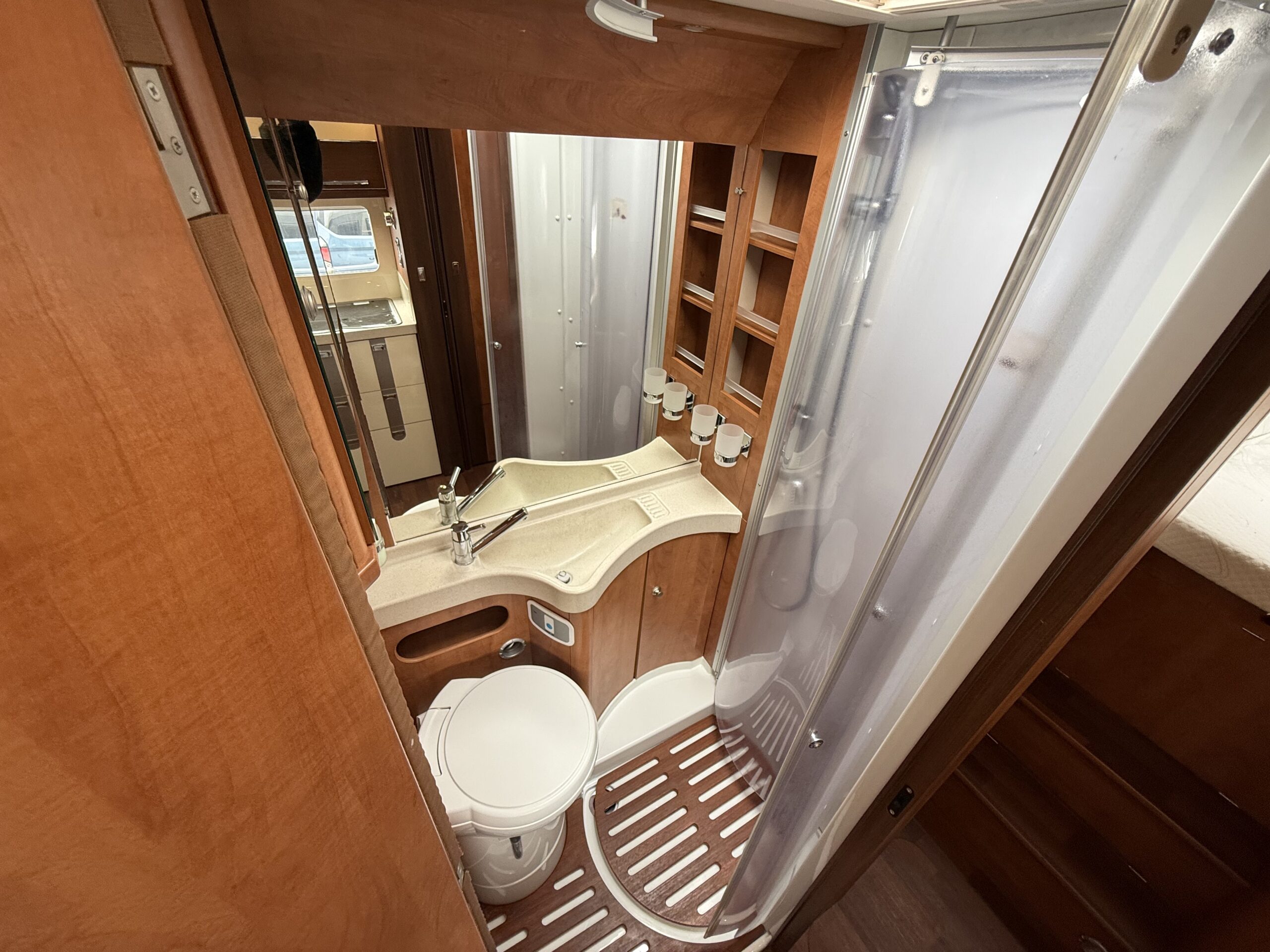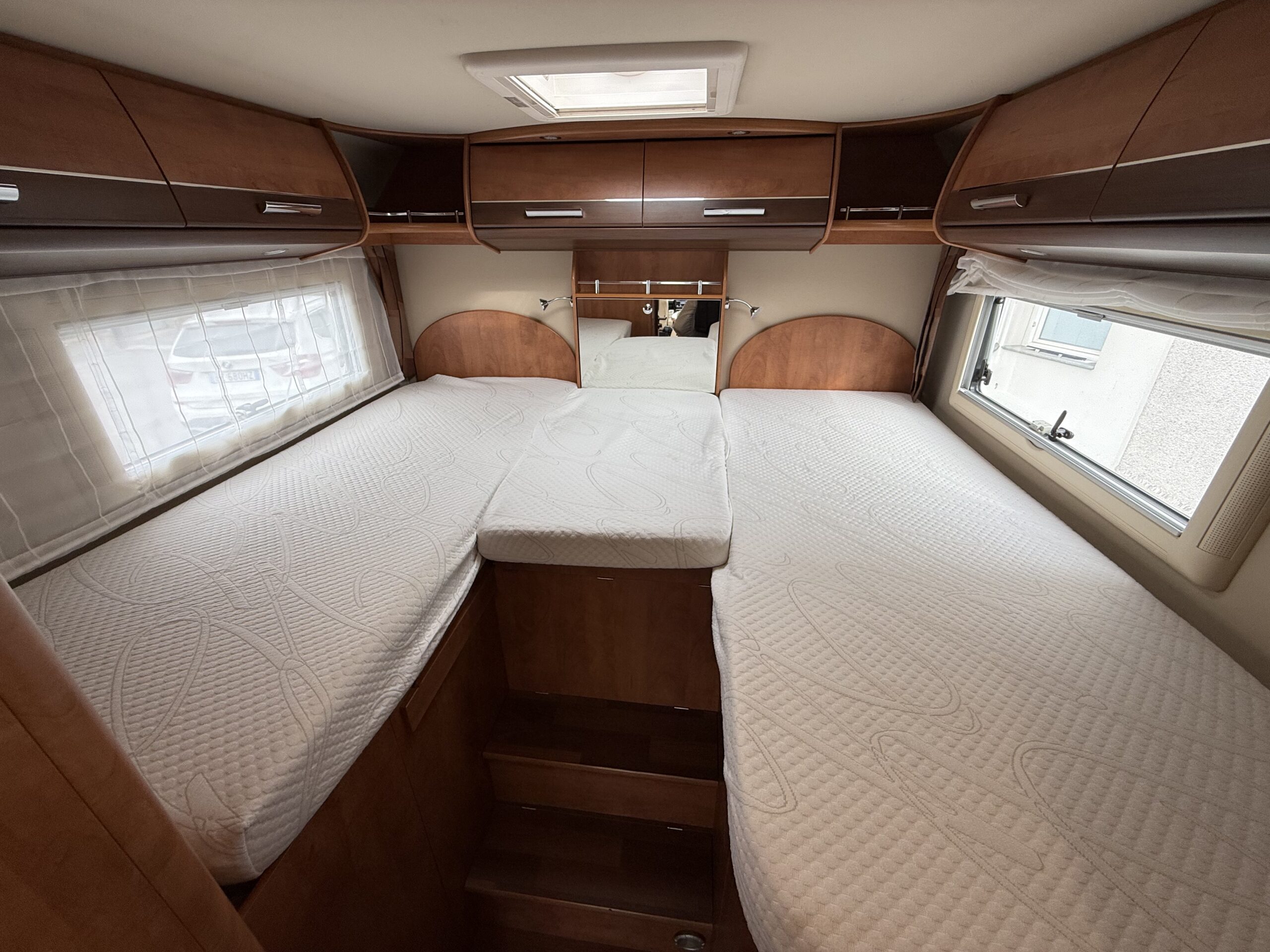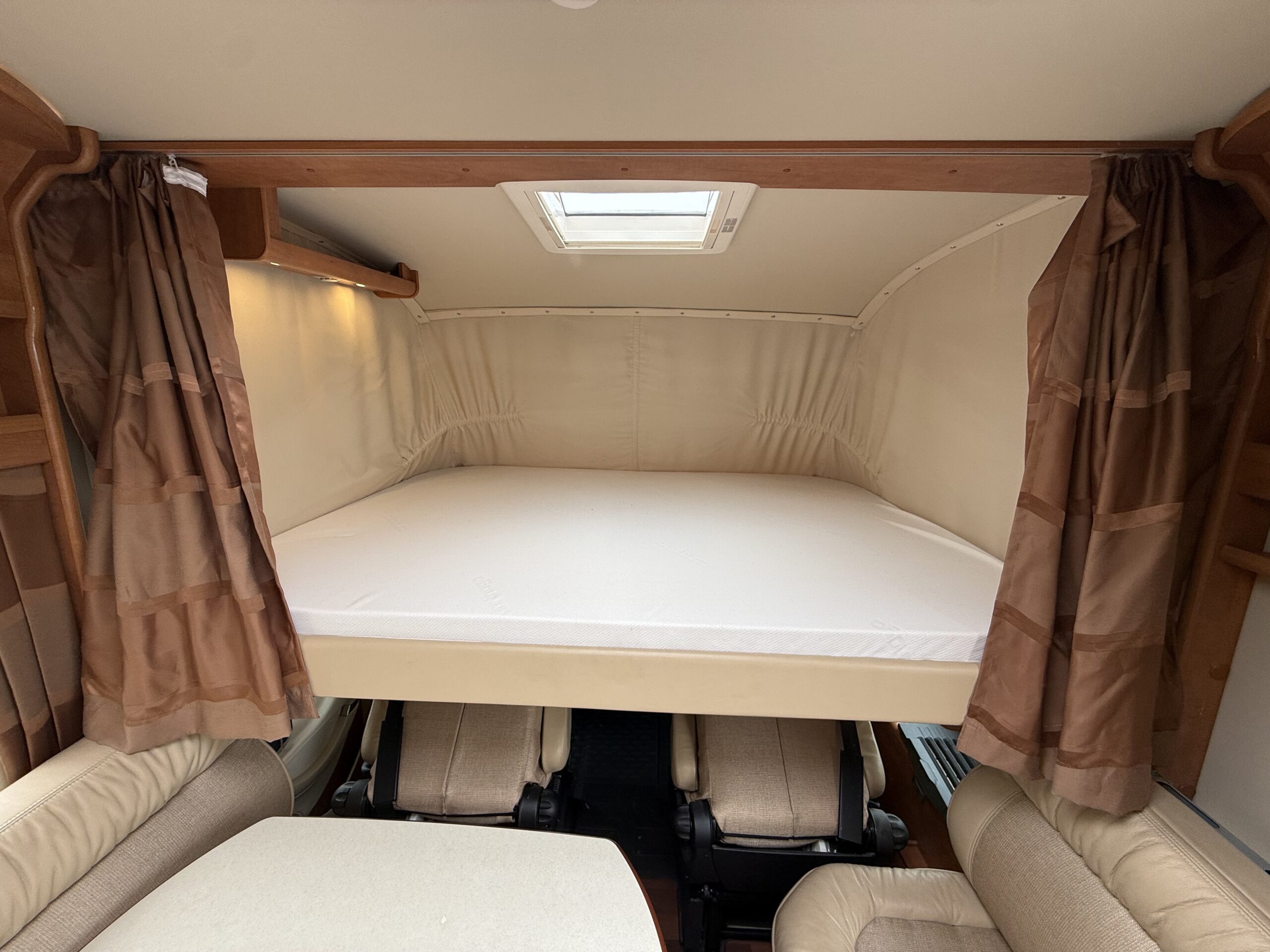 Veranda a tetto – Antenna satellitare automatica Mecatronic – Pannello solare – Doppio serbatoio acqua potabile – Doppia batteria servizi – Oblò con Turbovent in cucina – Inverter Waeco 1800w con remote e collegamento prese 220v interne – Riscaldamento Truma Combi 6 EH (funzionalità a gas e 220v) – Sistema di sicurezza in viaggio Truma Securmotion + scambiatore automatico bombole Duocontrol – TV zona giorno con piastra Sali scendi – Ampia porta garage lato guidatore – Attacco gas ext vano porta bombole – Upgrade garage con rivestimento pareti interne in feltro agugliato – Doppio pavimento passante – Maxi oblò Heki in dinette – Vetrinetta bar con set bicchieri zona cucina – Comando CP Plus x Truma Combi – Frigorifero grande a commutazione automatica – Porta cellula a 2 punti con finestra e chiusura centralizzata – Stile mobilio interno “Milano” – Sali scendi per macchina caffè in cucina – Attacco esterno acqua calda/fredda all’interno del garage – Zanzariera scorrevole porta cellula – Luce esterna – Oblò letto basculante – Prolunghe + cuscini per grande matrimoniale posteriore – Moquette cellula – Sistema Sog per cassetta WC – Supporto per fissaggio ruota moto in garage