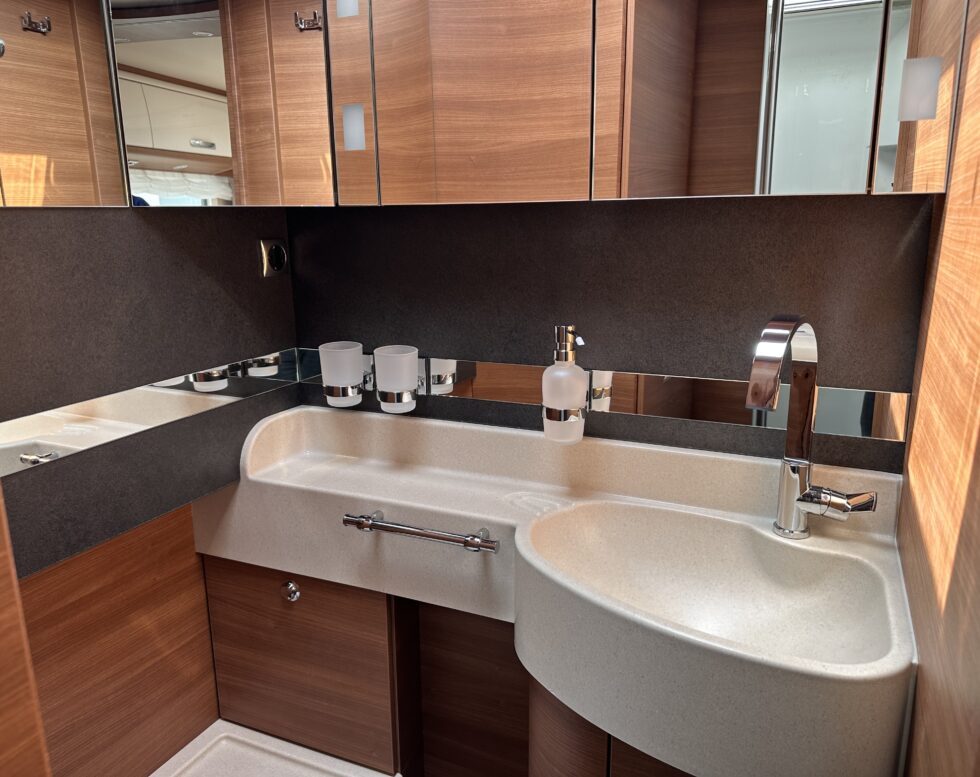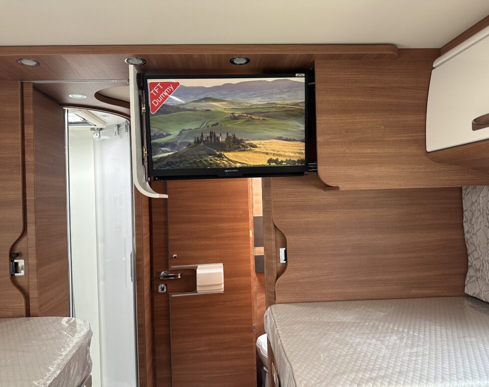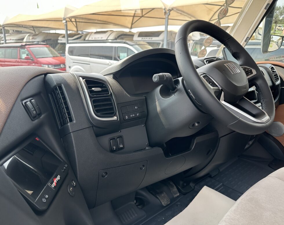 – PACCHETTO SUPER FIAT € 6.050,00: Presa USB nel pensile sopra il letto posteriore, predisposizione retrocamera a lente singola, specchietti in stile bus bicolore nero/bianco, upgrade garage per scooter con feltro agugliato, reti portabagagli, superfici delle sedute nella cabina guida regolabili in inclinazione e in altezza, areazione toilette SOG tramite camino sul tetto, Truma DuoControl CS con sensore anticollisione e funzione Eis-Ex, predisposizione radio con antenna sul tetto e DAB+, altoparlanti, predisposizione impianto satellitare, porta cellula XL “œpremium two 2.0″ (larghezza 63 cm) con doppia chiusura, finestra e zanzariera avvolgibile, booster di ricarica, predisposizione dell’impianto solare, mobile bar di design con porta bicchieri e set bicchieri sopra la cucina, sistema di retrocamera con lente singola, con monitor a colori da 7″³, piedini di stazionamento posteriori a manovella per stabilizzare il veicolo da fermo