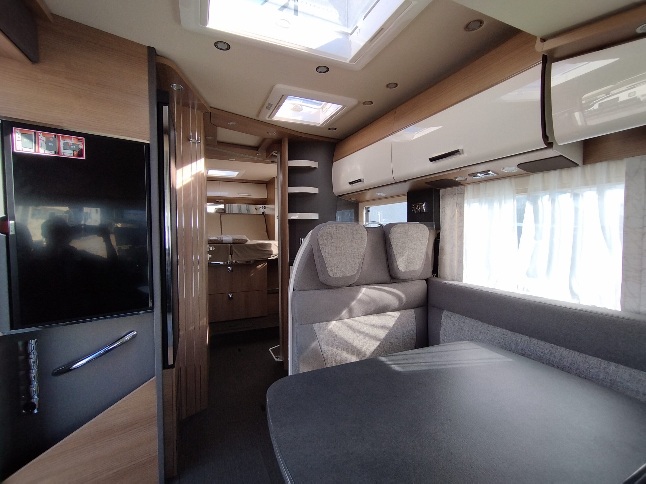 – PACCHETTO BASE PLUS MB € 12.625,00 : Oblò Midi Heki su gruppo sedute – Presa USB nel pensile sopra il letto posteriore – Sensore pioggia – Volante in pelle con tasti multifunzione – Assale anteriore con portata superiore – Predisposizione radio con antenna sul tetto e DAB+, altoparlanti (4 x) – Porta cellula con zanzariera a rullo – Booster di ricarica – MBUX 10,2″³ Multimedia con navigatore / DAB+ – Assistente alla segnaletica stradale – Freno di stazionamento elettrico – Ampia porta del garage lato guida – Strumento combinato con display a colori – SOG toilette – batteria al litio da 90 Ah –