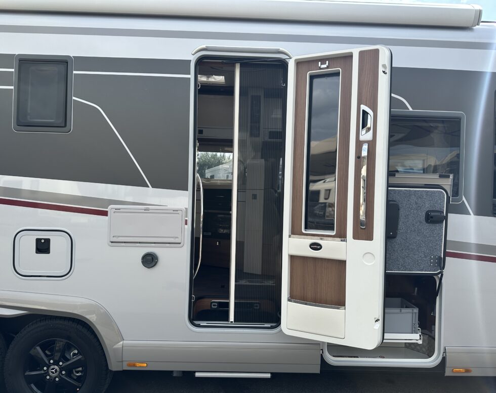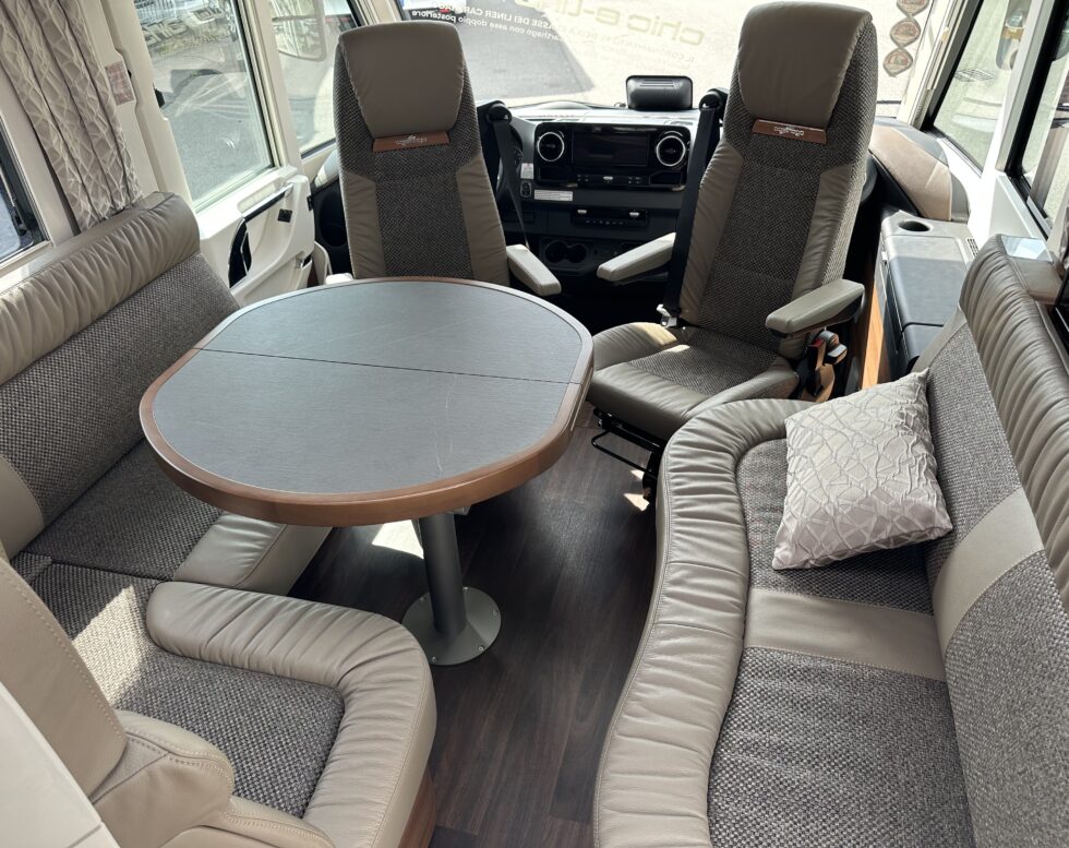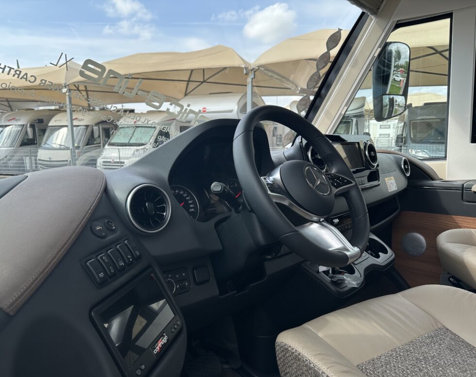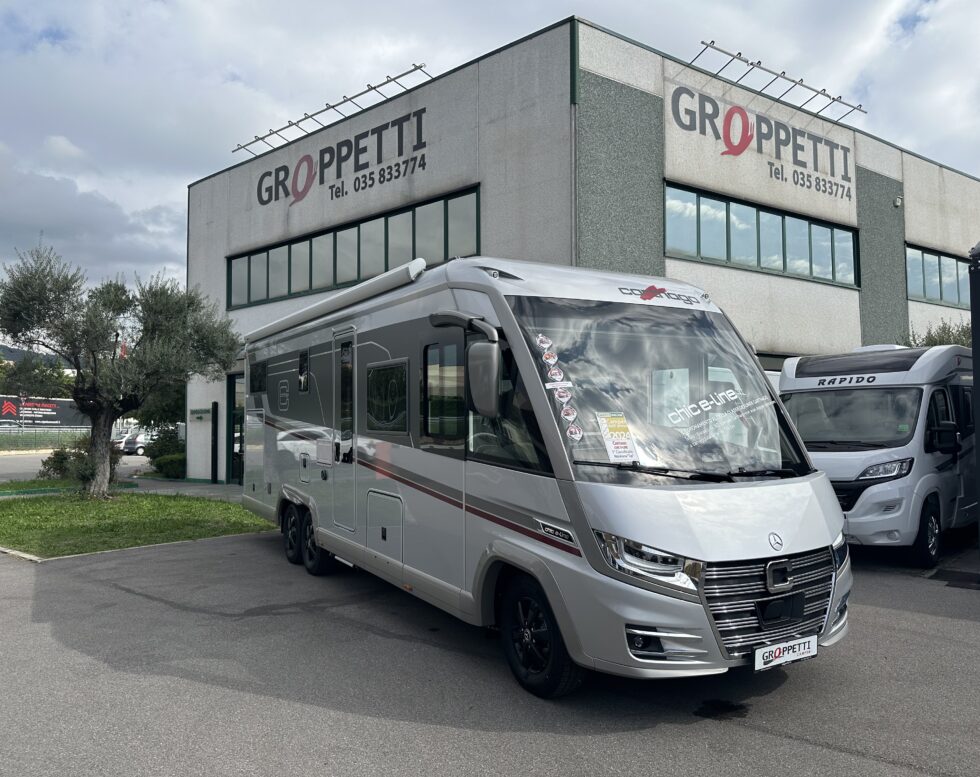 – PACCHETTO SUPER MB DOPPIO ASSE € 16.935,00 (Predisposizione retrocamera, Upgrade garage per scooter con feltro agugliato, reti portabagagli, Superfici delle sedute nella cabina guida regolabili in inclinazione e in altezza, Truma DuoControl CS con sensore anticollisione, Chiusura centralizzata per le porte della cabina, della cellula, gli sportelli esterni e del garage per scooter, Predisposizione radio con antenna sul tetto e DAB+, altoparlanti, Porta della cellula XL “œSafetyluxe”con doppia chiusura di sicurezza e coming home, Sensore pioggia, Freno di stazionamento elettrico, Booster di ricarica 70AH, Presa USB nel pensile sopra il letto posteriore, MBUX 10,2 Multimedia con navigatore/DAB+, Assistente alla segnaletica stradale, Specchietti in stile bus bicolore nero/bianco, Volante in pelle con optional tasti multifunzione, Serbatoio carburante da 92 litri, Predisposizione impianto satellitare, Scambiatore di calore Alde, Strumento combinato con display a colori, Mobile bar di design con porta bicchieri e set bicchieri sopra la cucina, Areazione toilette SOG tramite camino sul tetto, Piedini di stazionamento posteriori a manovella, Toilette Thetford C 260 con vaso in ceramica)