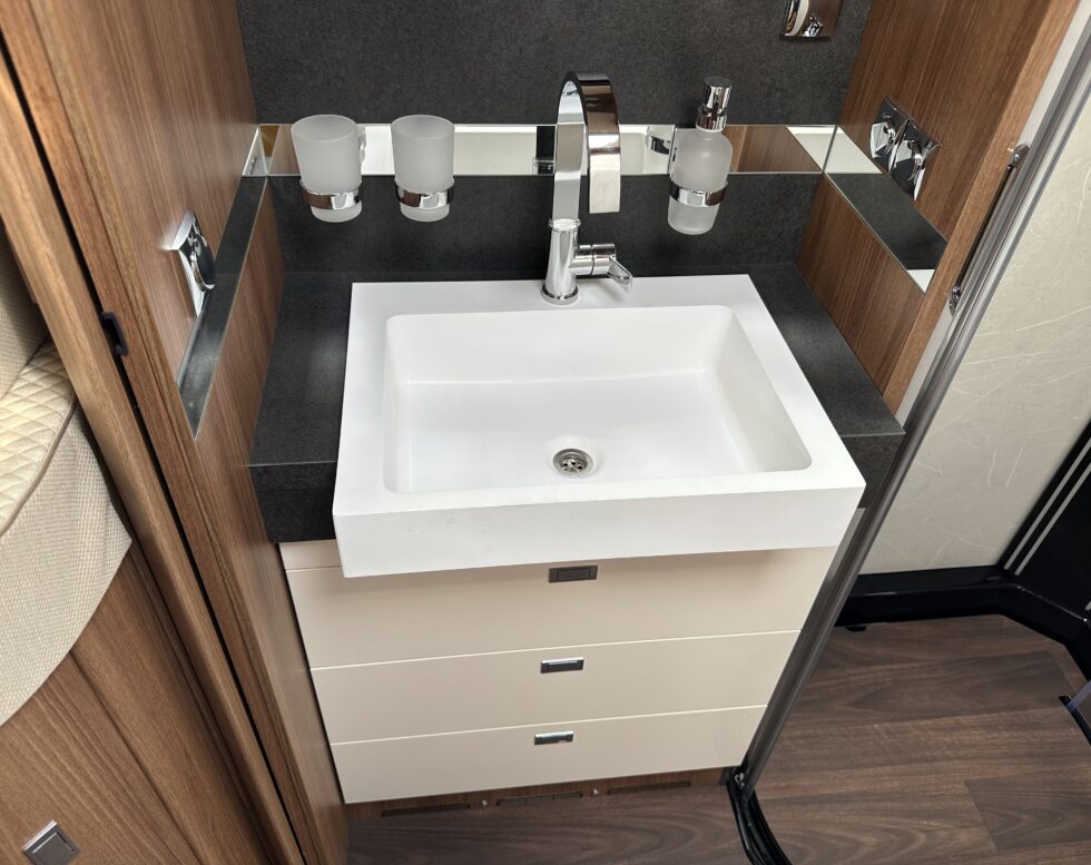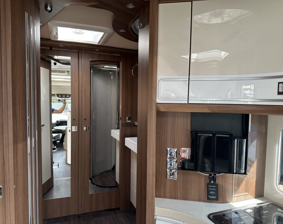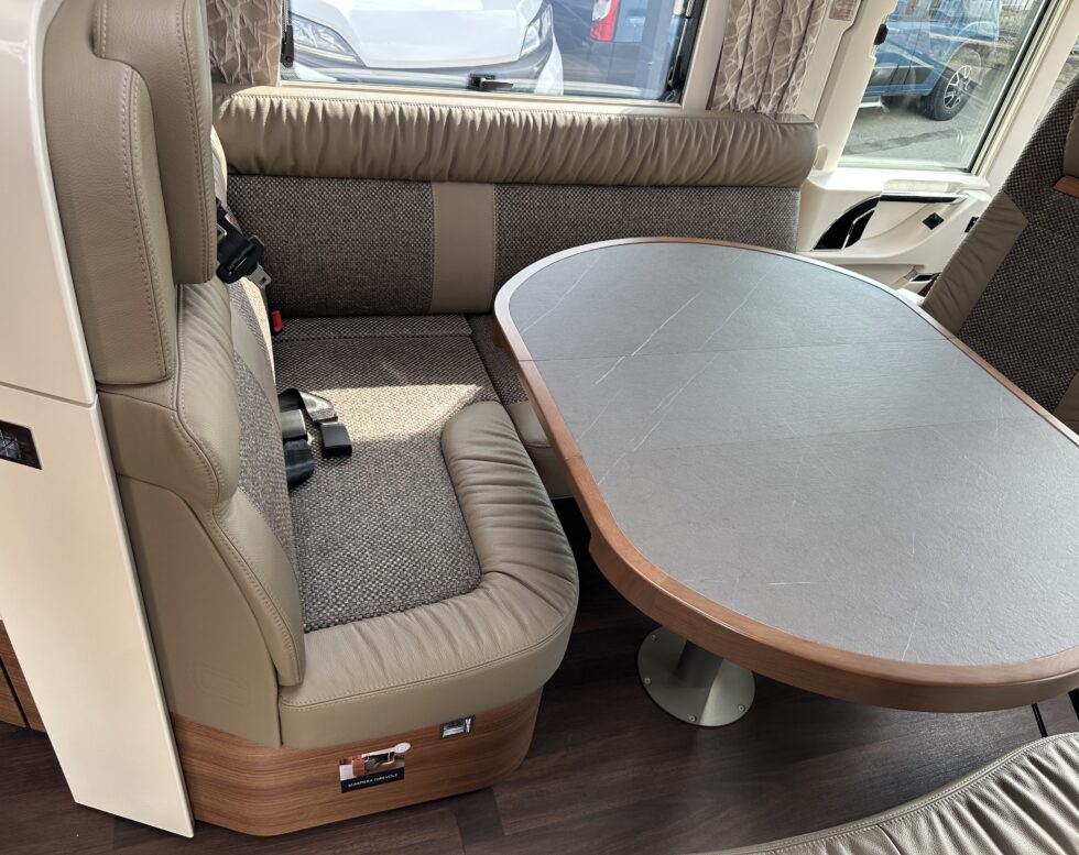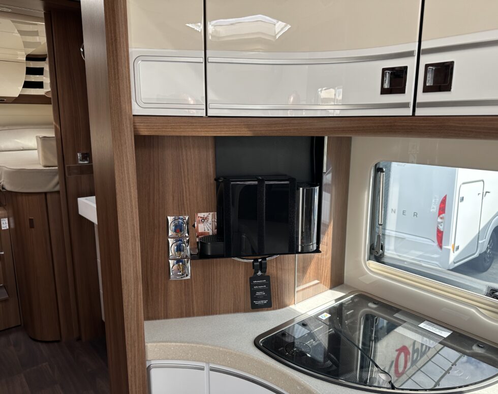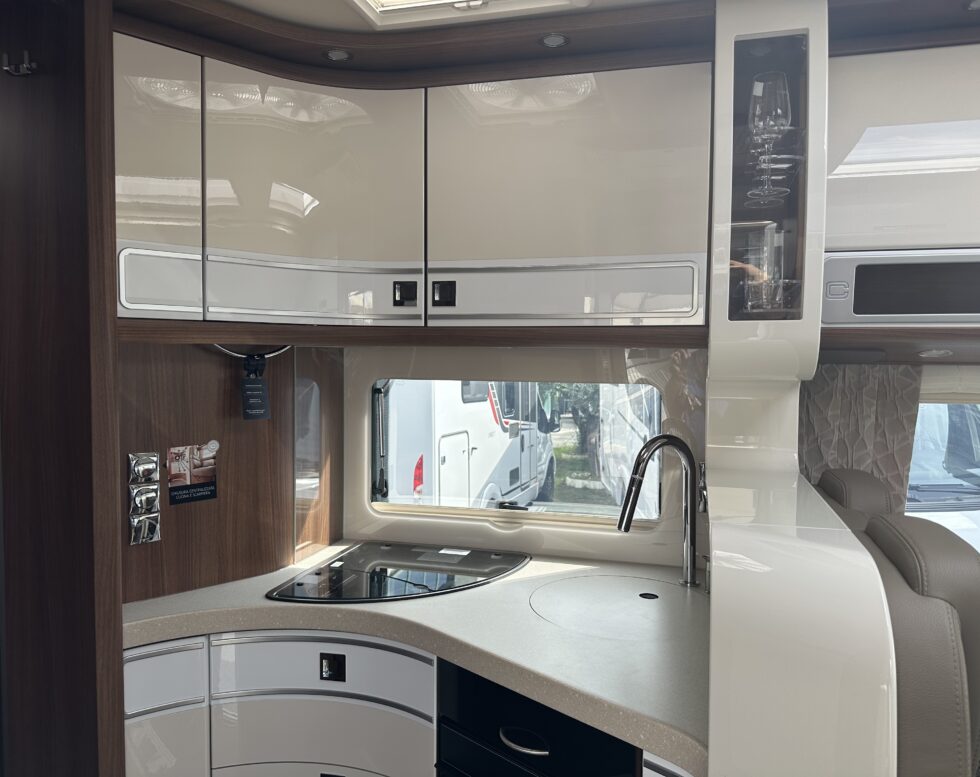 – PACCHETTO SUPER MB DOPPIO ASSE € 16.935,00 (Predisposizione retrocamera, Upgrade garage per scooter con feltro agugliato, reti portabagagli, Superfici delle sedute nella cabina guida regolabili in inclinazione e in altezza, Truma DuoControl CS con sensore anticollisione, Chiusura centralizzata per le porte della cabina, della cellula, gli sportelli esterni e del garage per scooter, Predisposizione radio con antenna sul tetto e DAB+, altoparlanti, Porta della cellula XL “œSafetyluxe”con doppia chiusura di sicurezza e coming home, Sensore pioggia, Freno di stazionamento elettrico, Booster di ricarica 70AH, Presa USB nel pensile sopra il letto posteriore, MBUX 10,2 Multimedia con navigatore/DAB+, Assistente alla segnaletica stradale, Specchietti in stile bus bicolore nero/bianco, Volante in pelle con optional tasti multifunzione, Serbatoio carburante da 92 litri, Predisposizione impianto satellitare, Scambiatore di calore Alde, Strumento combinato con display a colori, Mobile bar di design con porta bicchieri e set bicchieri sopra la cucina, Areazione toilette SOG tramite camino sul tetto, Piedini di stazionamento posteriori a manovella, Toilette Thetford C 260 con vaso in ceramica)