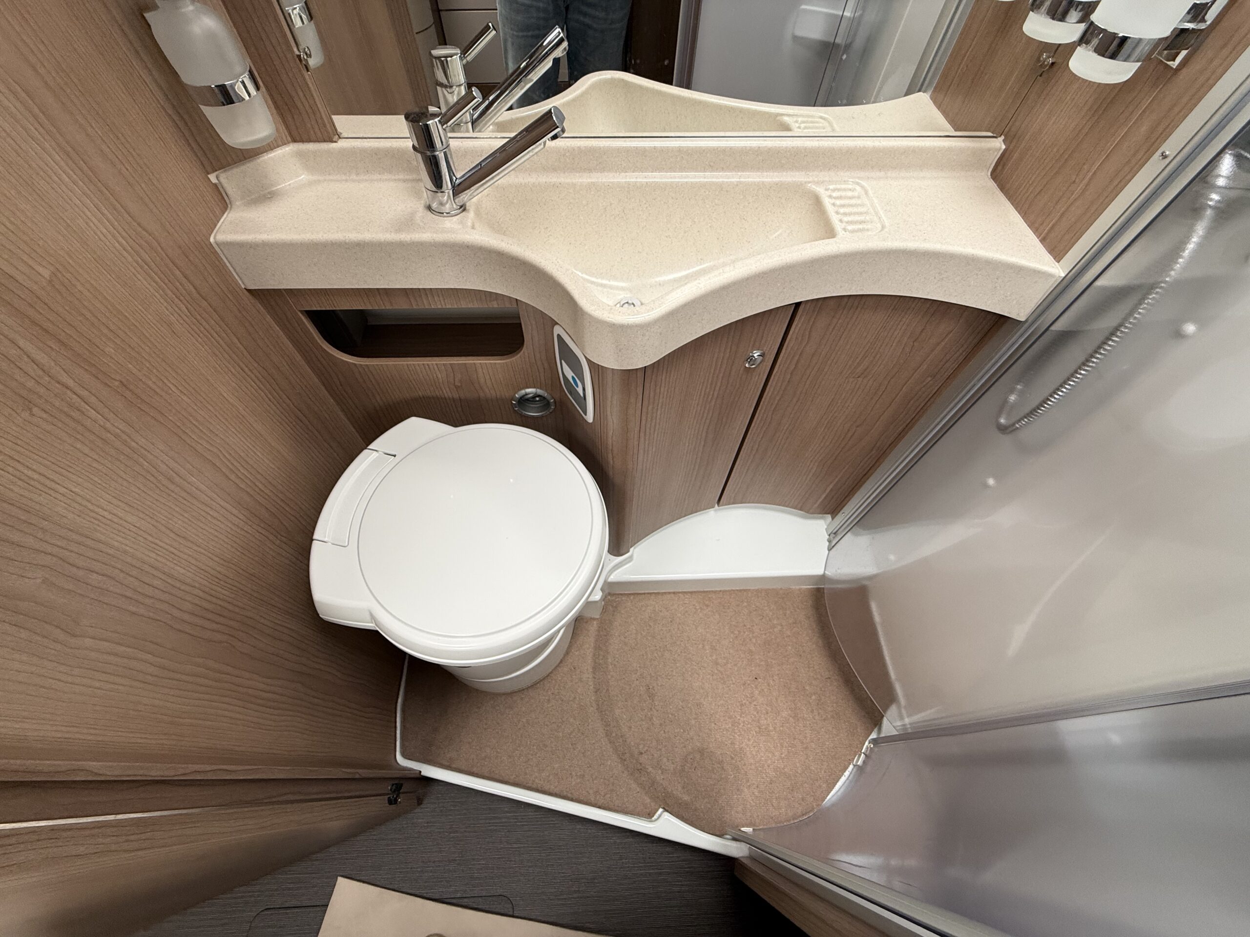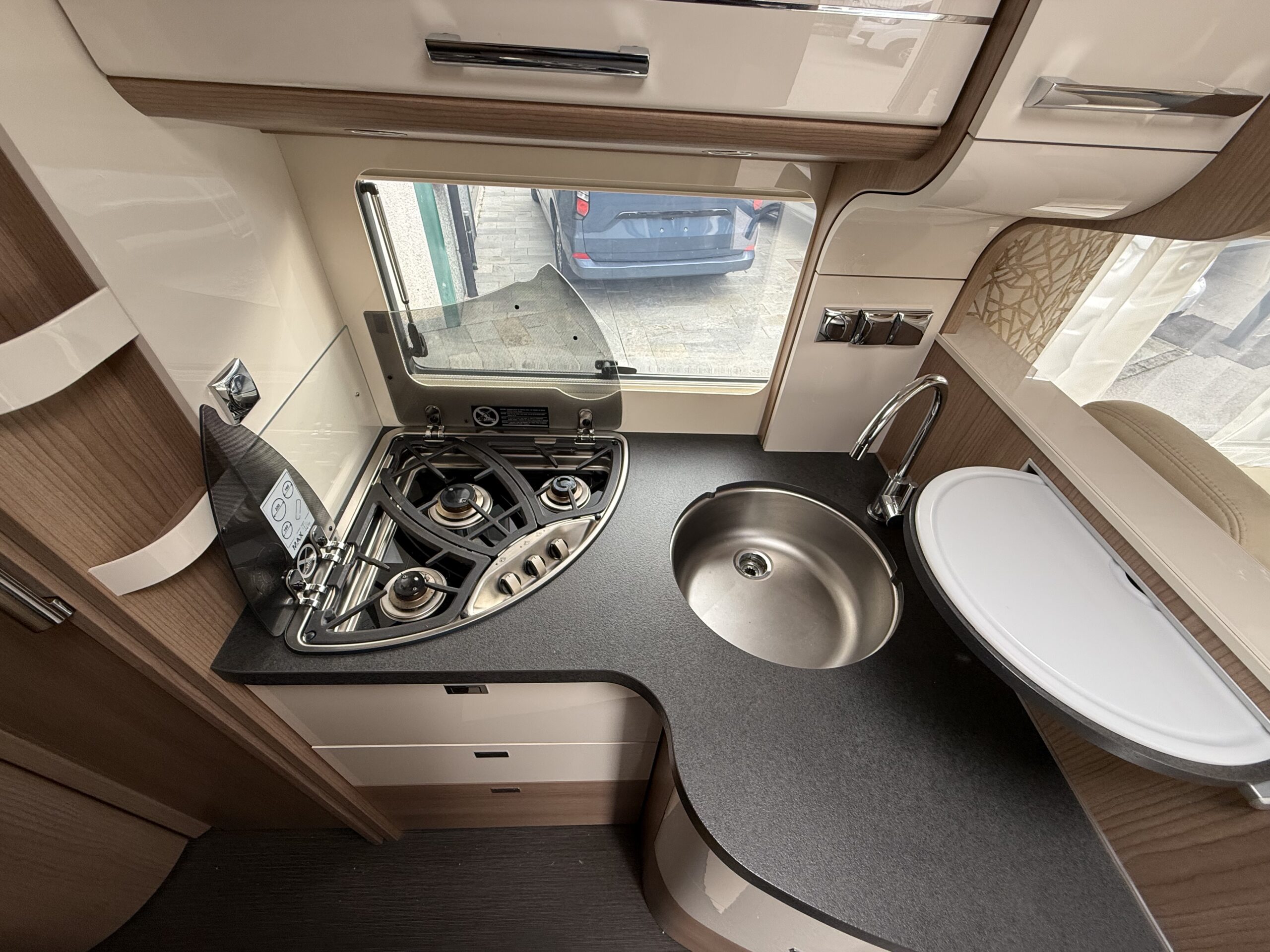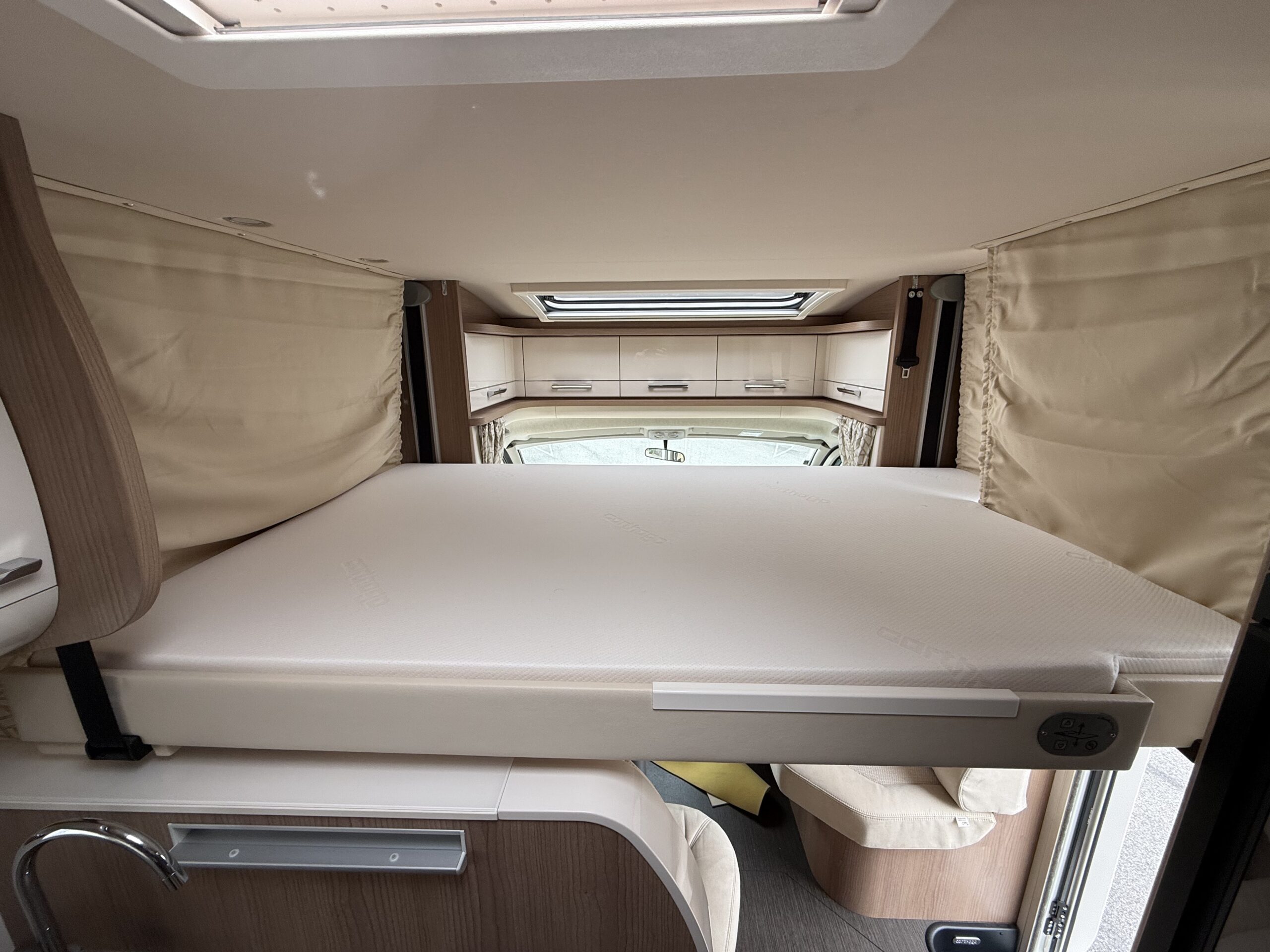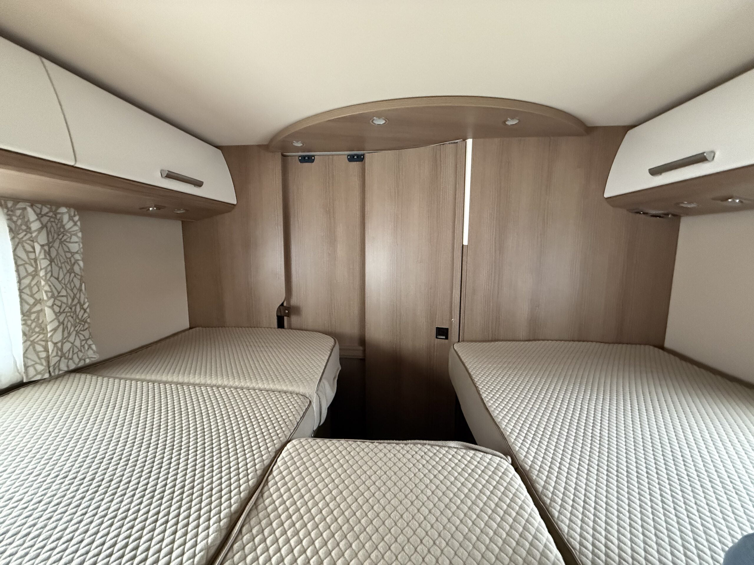 Veranda esterna a tetto – Luce esterna – Aria condizionata Dometic – Antenna satellitare automatica Mecatronic – Doppia batteria servizi – Doppio pannello solare – Grande sportello garage lato guidatore – Attacco esterno gas nel vano porta bombole – Sistema di sicurezza per il gas in viaggio Truma secumotion con scambiatore automatico bombole Duocontrol e filtri – Ampio armadio nella camera posteriore – Comando CP Plus per Truma CombiDoppio pavimento passante – Rivestimento pareti e portelloni garage in feltro – Porta cellula Premium Two con finestra – chiusura a 2 punti e centralizzata – Frigorifero grande a commutazione automatica – zanzariera scorrevole porta cellula – Areazione toilette SOG tramite camino a tetto – Stacca batterie servizi – Prolunga e cuscini per trasformazione letto matrimoniale posteriore – Tappezzeria mista alcantara e tessuto – Letto basculante elettrico – Cupolino skyroof sopra la zona di guida.