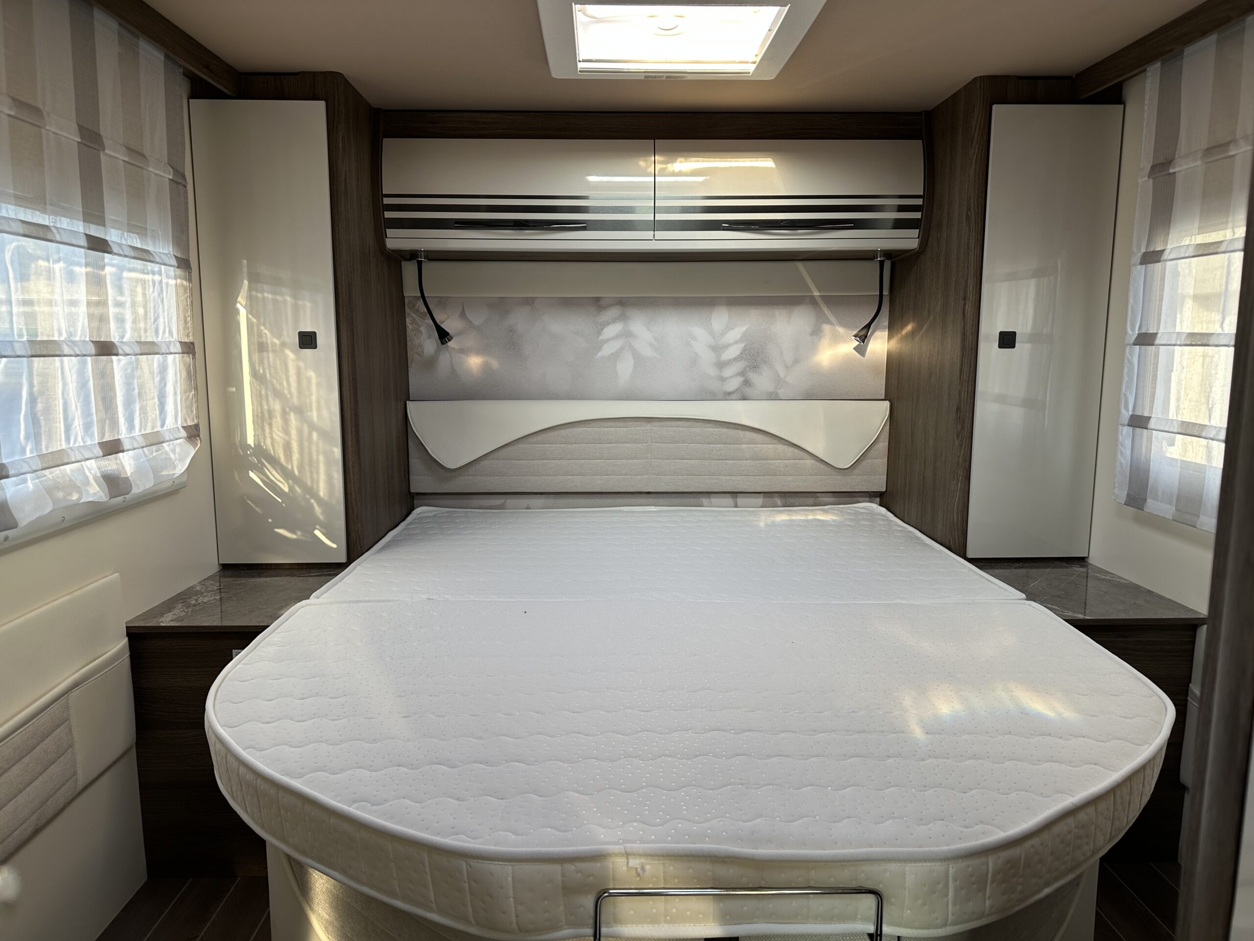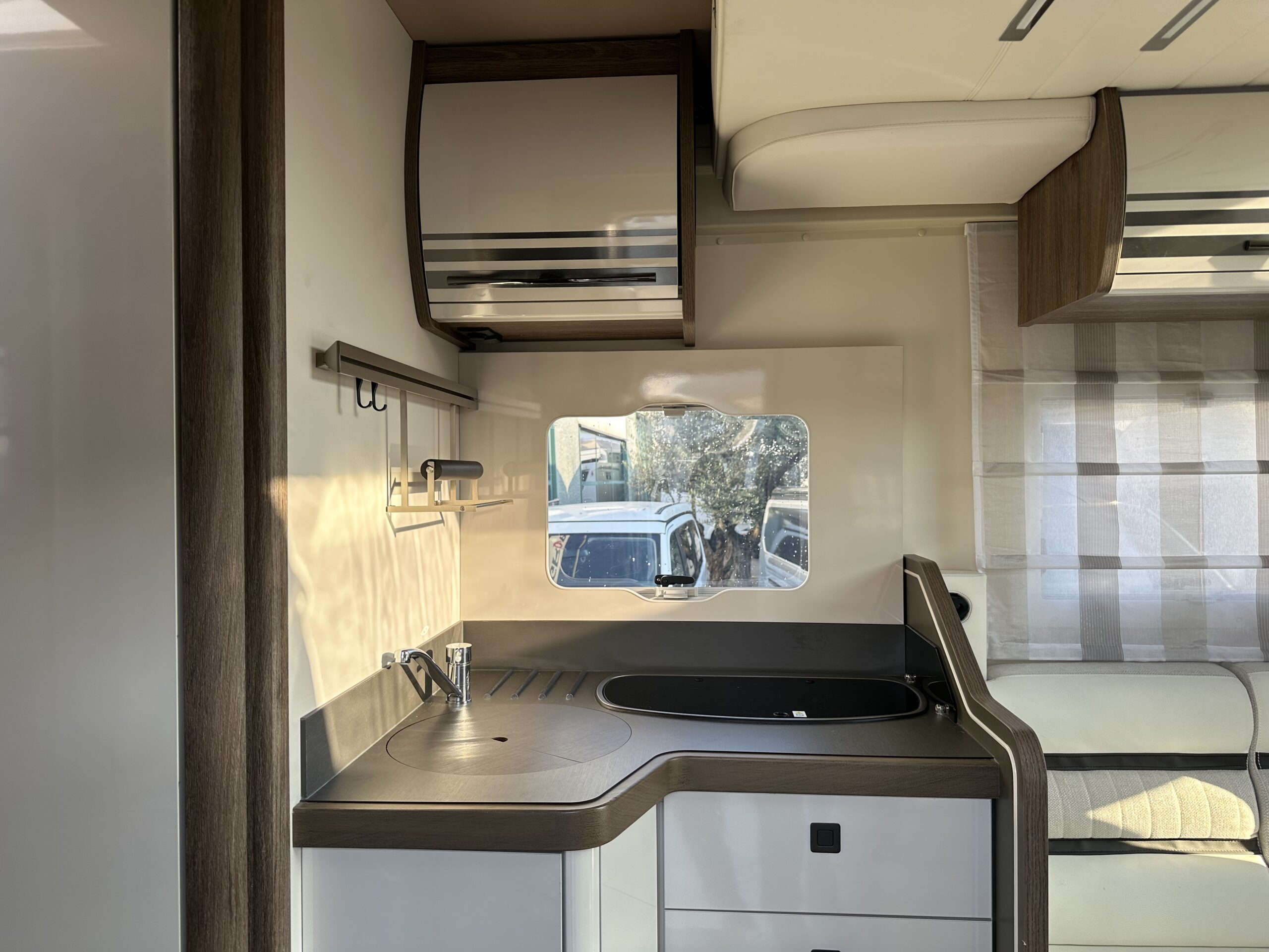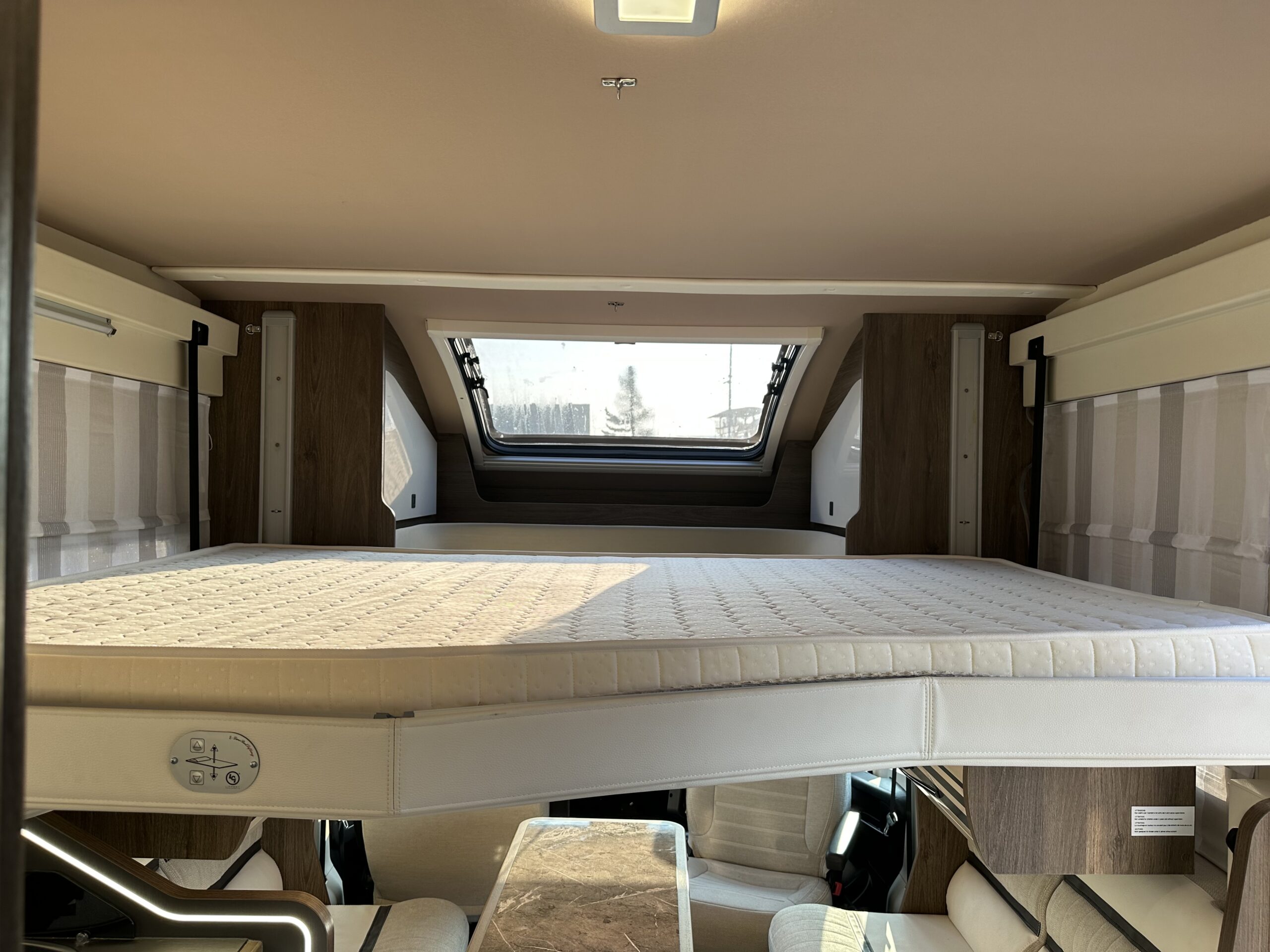 Oblò Skyroof su cupolino – Truma panel X – Casse audio posteriori – Stacca batterie servizi – Presa USB doppia aggiuntiva zona dinette – Rivestimento soft touch interno del tetto –