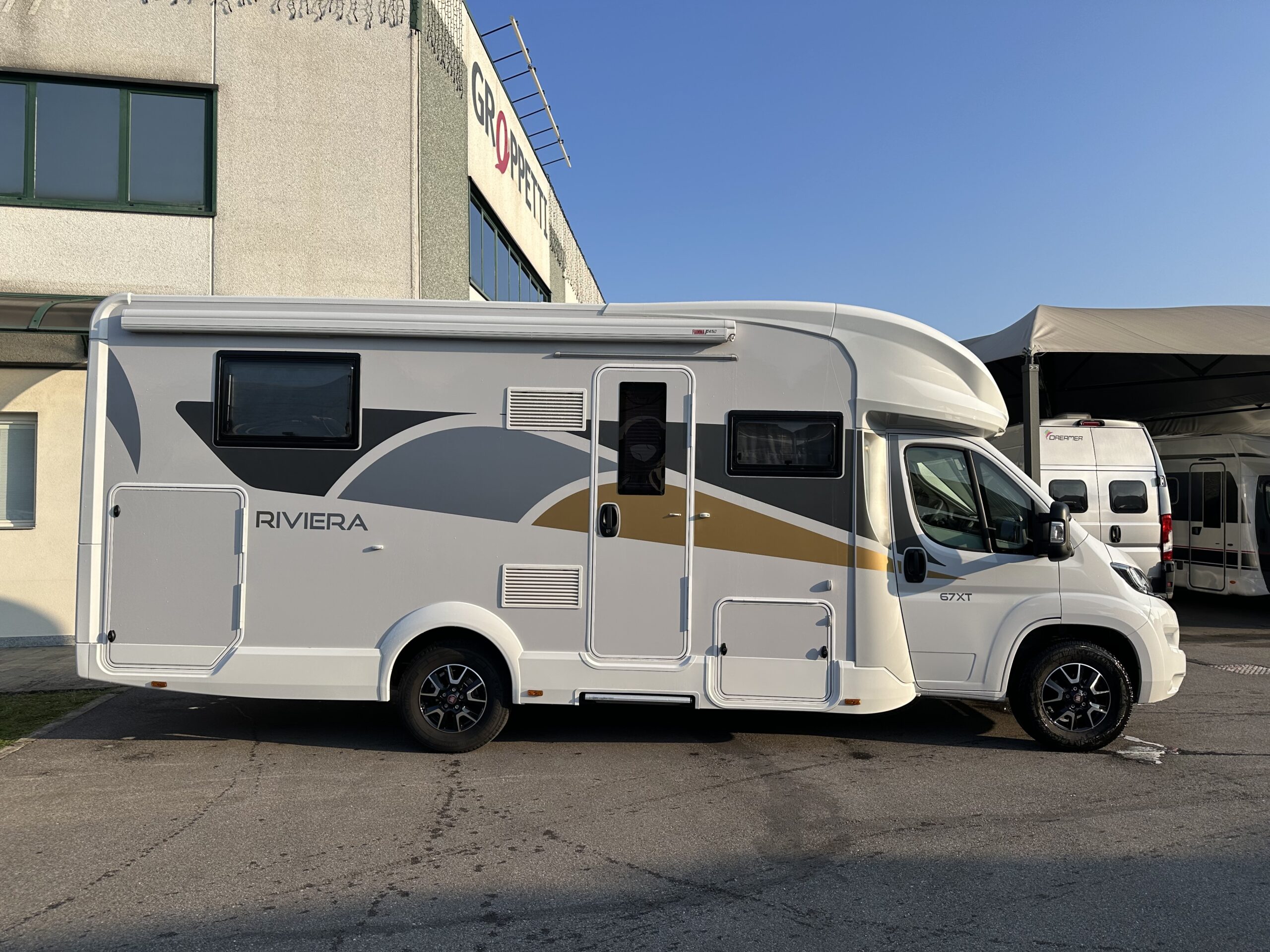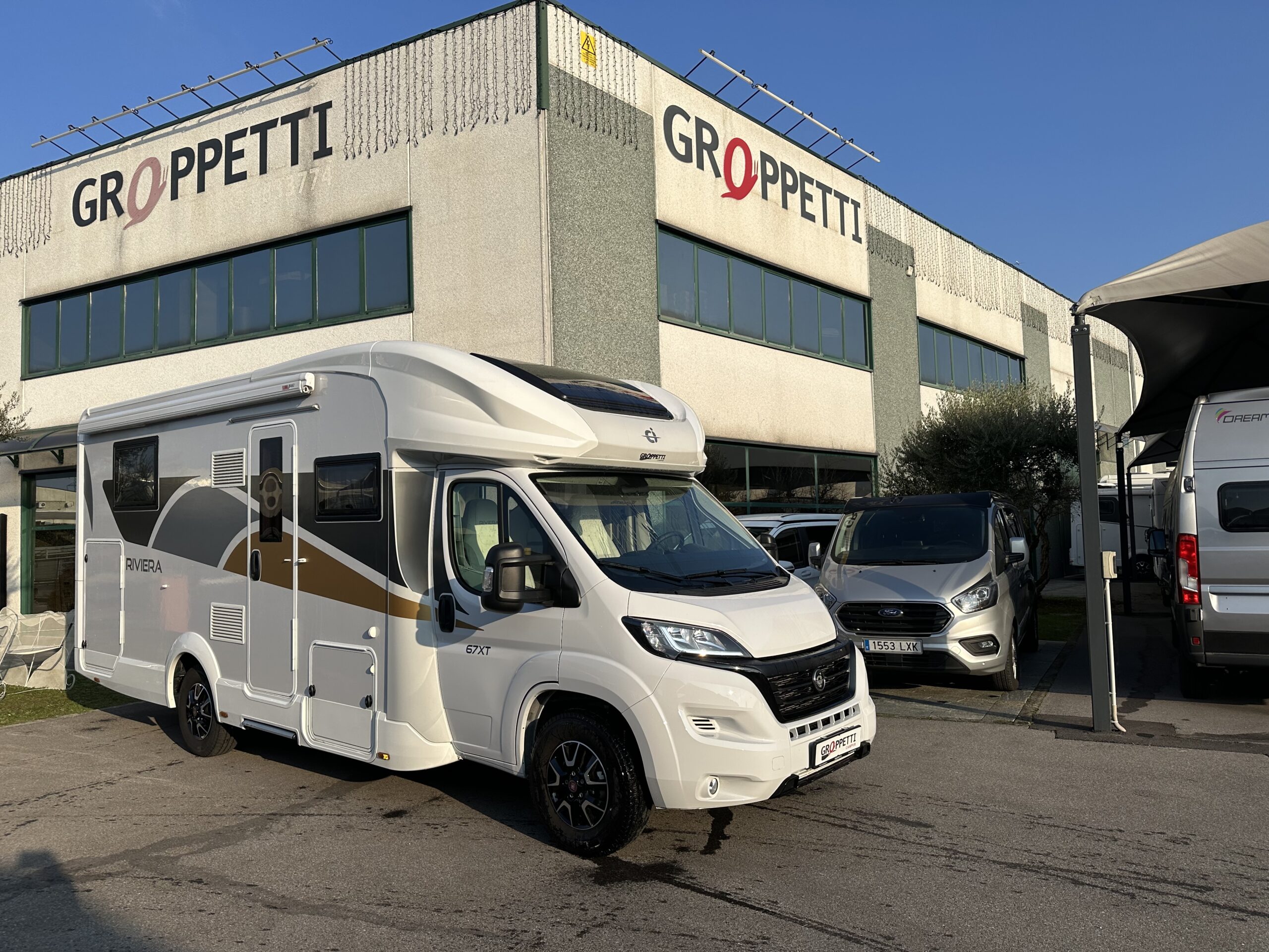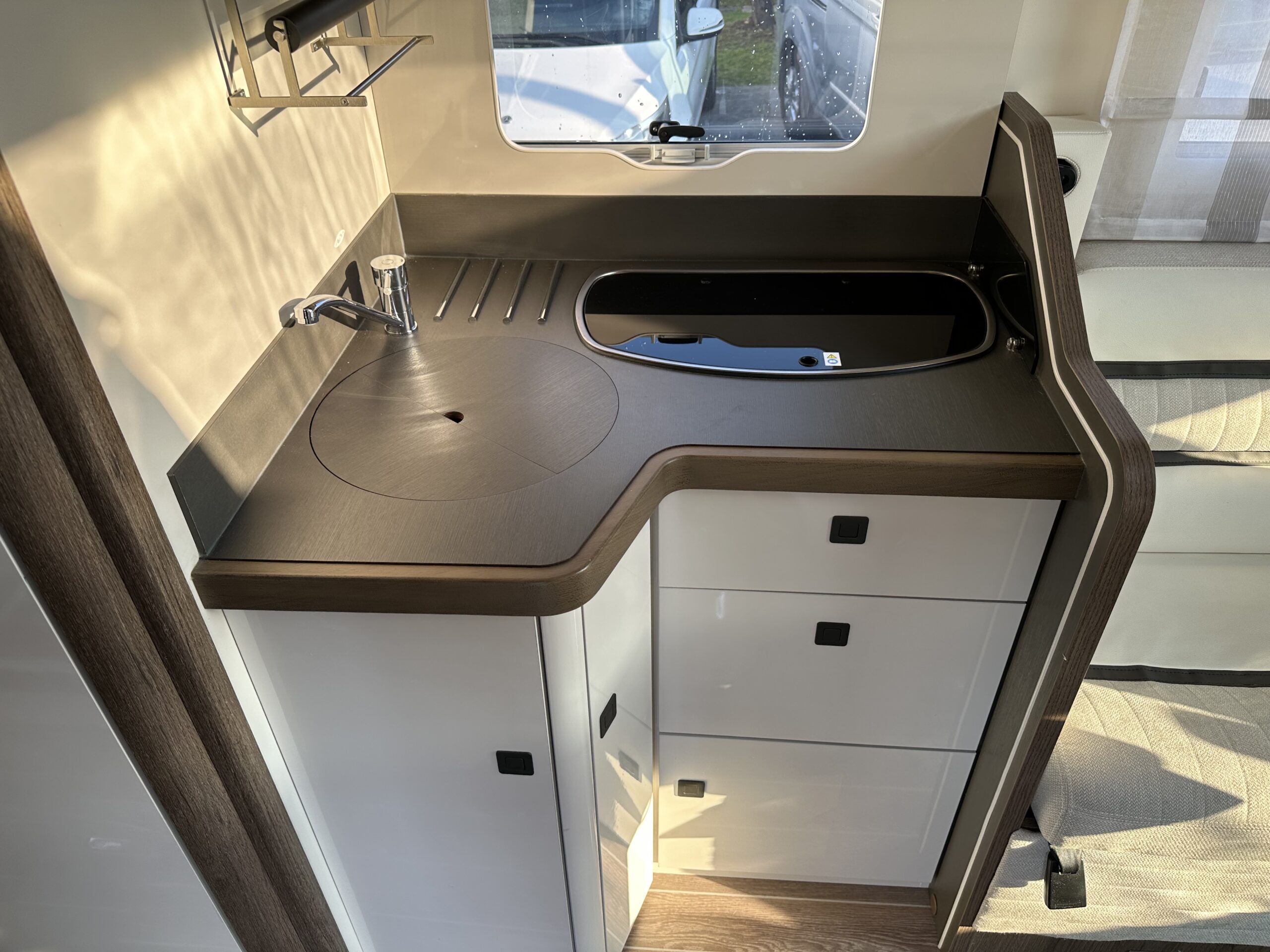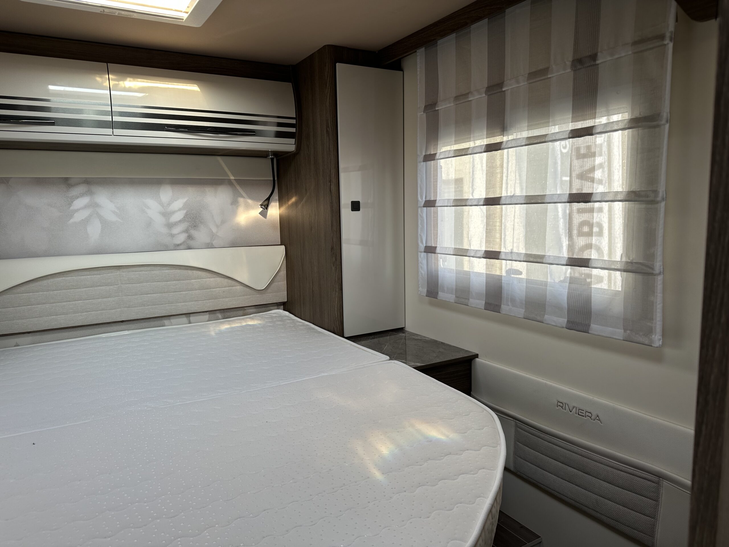 Oblò Skyroof su cupolino – Truma panel X – Casse audio posteriori – Stacca batterie servizi – Presa USB doppia aggiuntiva zona dinette – Rivestimento soft touch interno del tetto –