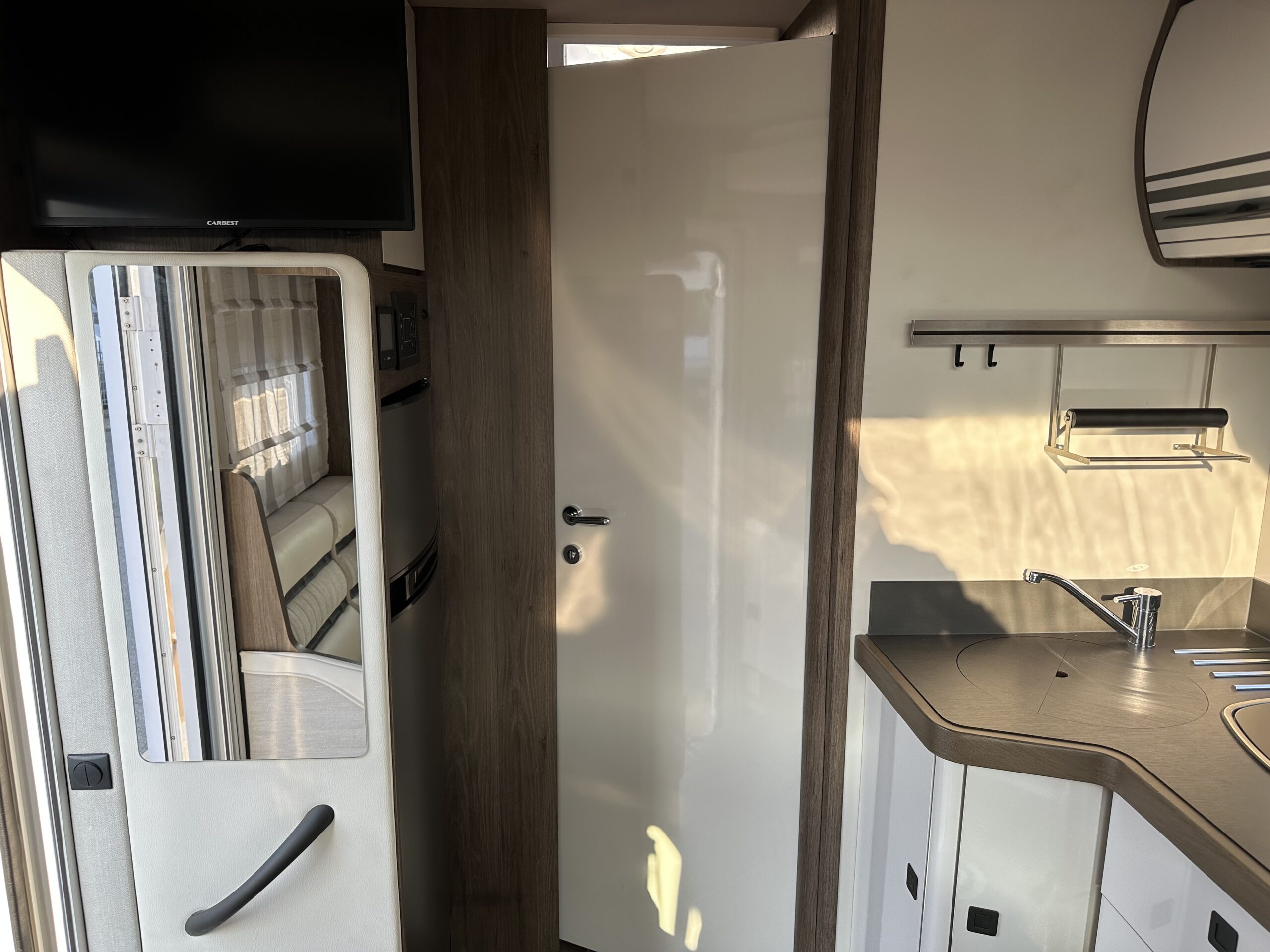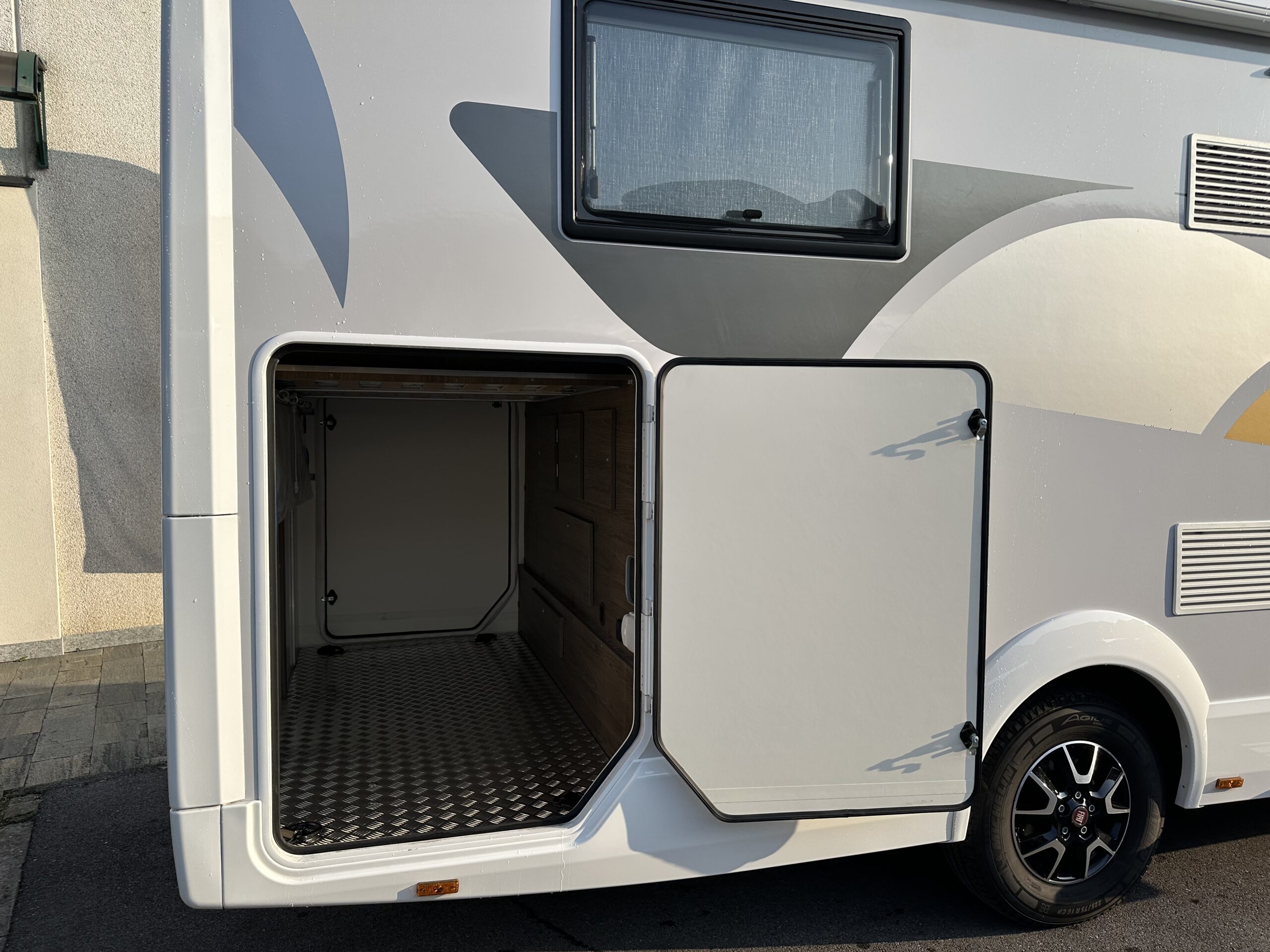 Veranda esterna – Pannello solare – Piastra porta TV + TV zona giorno smart – Luce esterna a Led – Doppia batteria – Letto basculante a movimentazione elettrica – Piastra porta TV zona notte – Porta cellula XL a 2 punti, con finestra, pattumiera integrata e chiusura centralizzata – Zanzariera scorrevole porta cellula – Illuminazione interna a Led – Frigorifero grande a commutazione automatica –