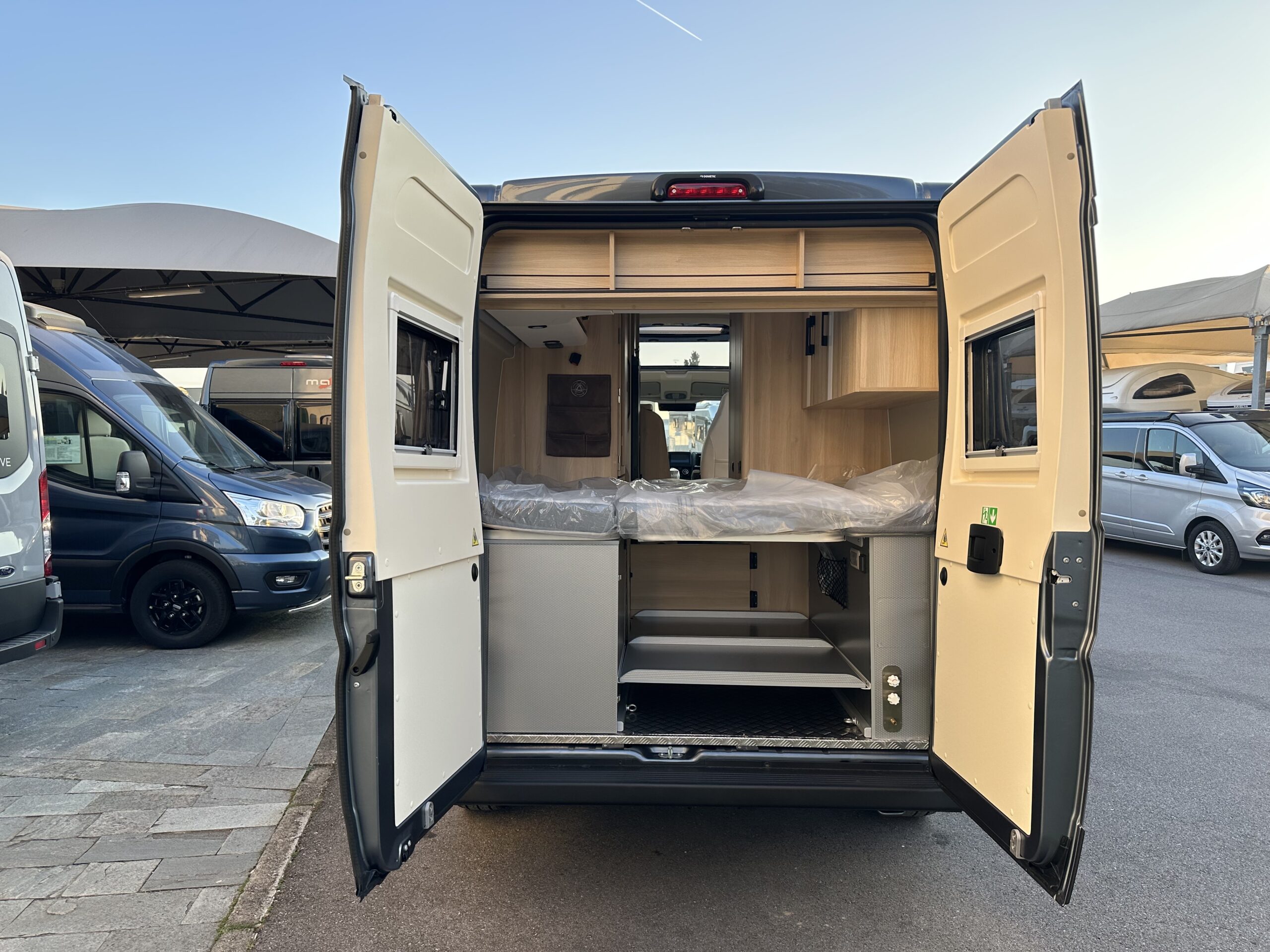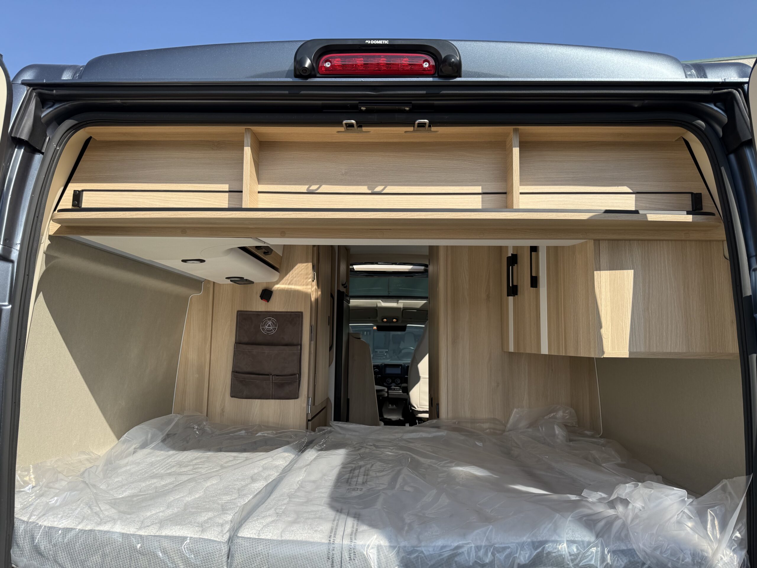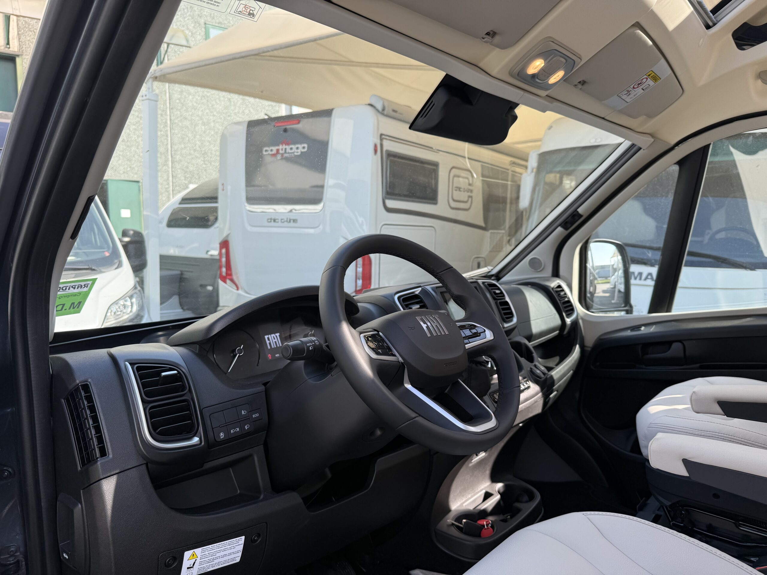 Fiat Ducato Heavy 2.2cc 140cv Euro 6F – Cerchi da 16″ – ABS – Cruise control – Cruscotto semi-digitale – Doppio airbag – Traction Control e Hill Holder – ESC, ASR, ROM – letto a soffitto elettrico – doppio pavimento tecnico con vano di stivaggio – serbatoio acque grigie coibentato dal gelo – letto posteriore modulabile – Gavone posteriore modulabile – 4 posti omologati – frigorifero 128 lt con AES – serbatoio acqua potabile da 110 lt – acque di recupero 100 lt – chiusura centralizzata porte cabina, portellone laterale e sportelli posteriori – specchietti retrovisori elettrici e riscaldati – doccia esterna calda e fredda – illuminazione interna a Led – letto fisso con rete a doghe, cardine in alluminio e materasso in Bultex – illuminazione esterna a Led con funzione coming home – isolamento XHP – pavimento con isolamento in styrofoam da 25mm e sottopavimento in poliestere – guarnizioni antifrizione sul soffitto – pavimento sigillato per proteggere il mobilio – gavone tecnico – pannelli rinforzati con finitura TITAN – rotaie fermacarico – pavimento gavone rinforzato – oscuranti cabina (parabrezza e finestrini laterali) – gradino elettrico automatico – sospensioni pneumatiche assale posteriore