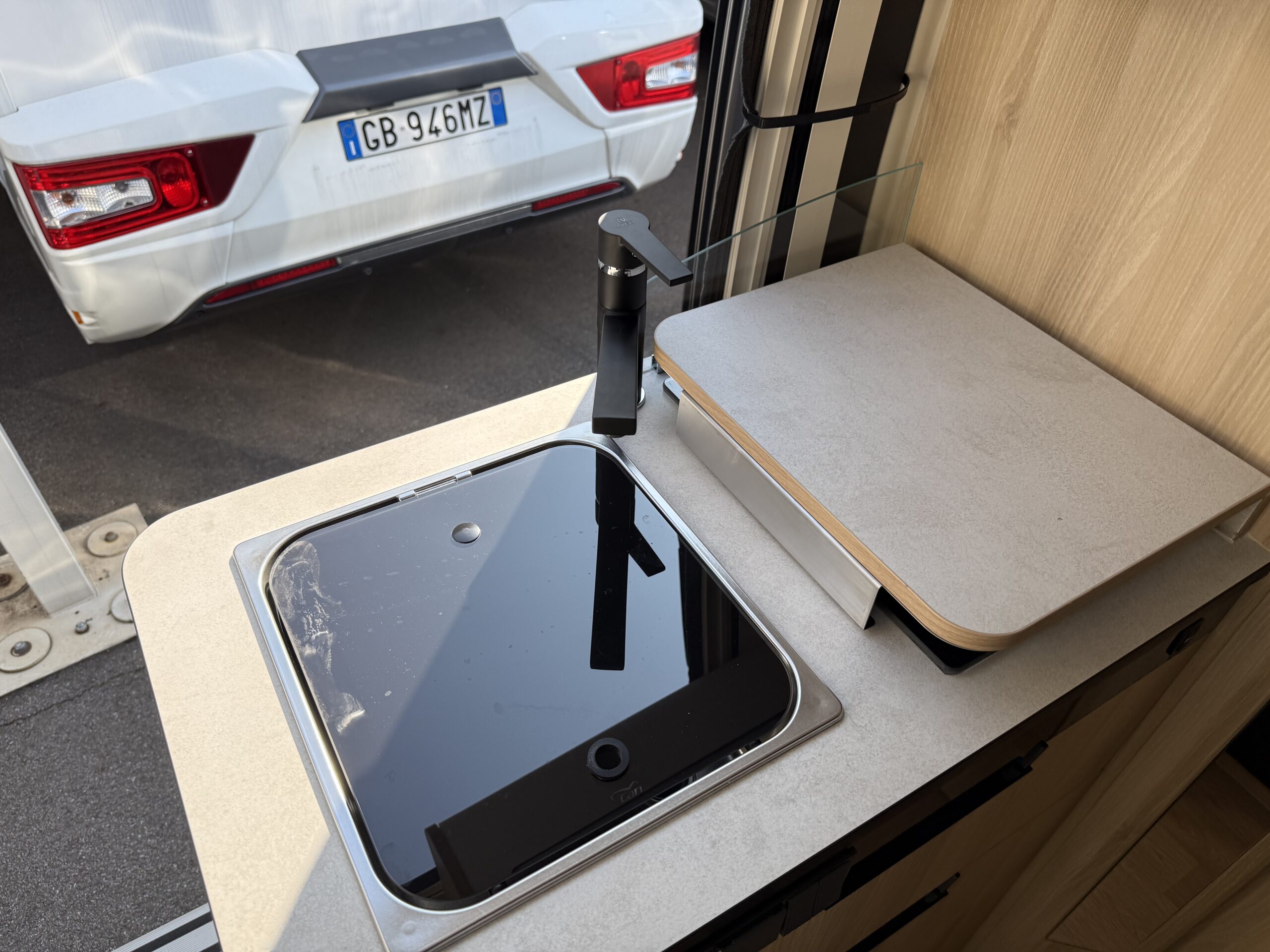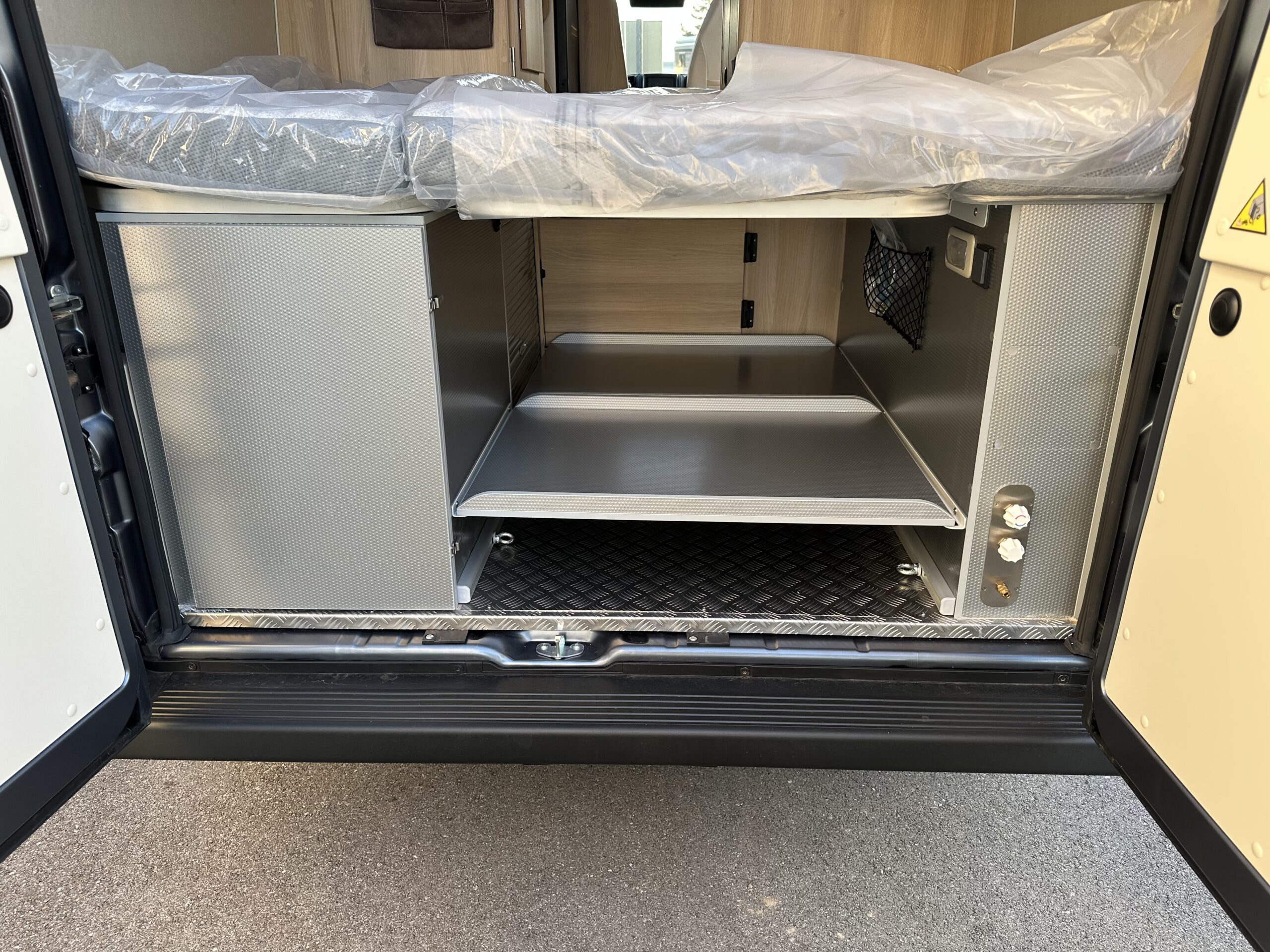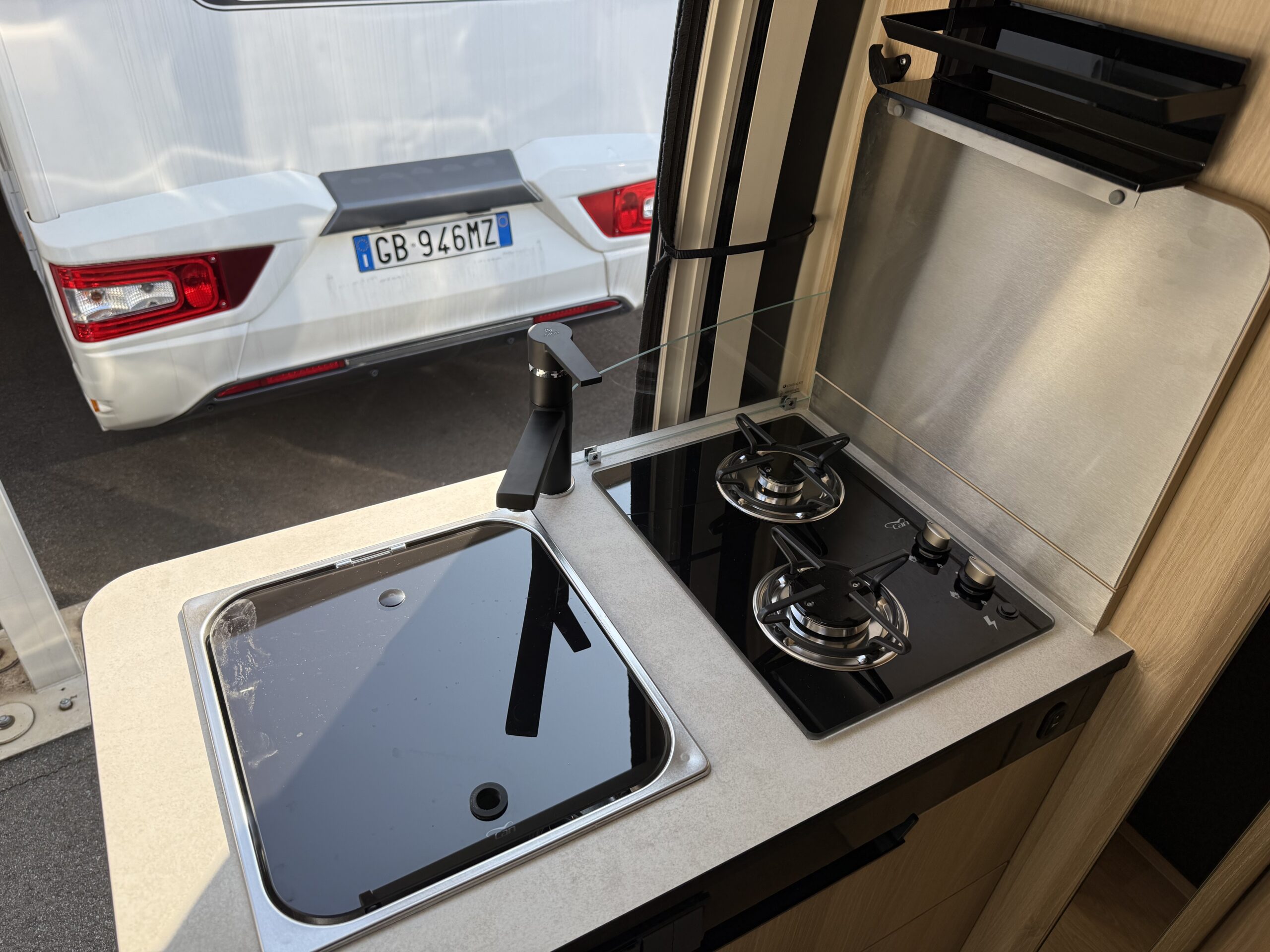 Fiat Ducato Heavy 2.2cc 140cv Euro 6F – Cerchi da 16″ – ABS – Cruise control – Cruscotto semi-digitale – Doppio airbag – Traction Control e Hill Holder – ESC, ASR, ROM – letto a soffitto elettrico – doppio pavimento tecnico con vano di stivaggio – serbatoio acque grigie coibentato dal gelo – letto posteriore modulabile – Gavone posteriore modulabile – 4 posti omologati – frigorifero 128 lt con AES – serbatoio acqua potabile da 110 lt – acque di recupero 100 lt – chiusura centralizzata porte cabina, portellone laterale e sportelli posteriori – specchietti retrovisori elettrici e riscaldati – doccia esterna calda e fredda – illuminazione interna a Led – letto fisso con rete a doghe, cardine in alluminio e materasso in Bultex – illuminazione esterna a Led con funzione coming home – isolamento XHP – pavimento con isolamento in styrofoam da 25mm e sottopavimento in poliestere – guarnizioni antifrizione sul soffitto – pavimento sigillato per proteggere il mobilio – gavone tecnico – pannelli rinforzati con finitura TITAN – rotaie fermacarico – pavimento gavone rinforzato – oscuranti cabina (parabrezza e finestrini laterali) – gradino elettrico automatico – sospensioni pneumatiche assale posteriore