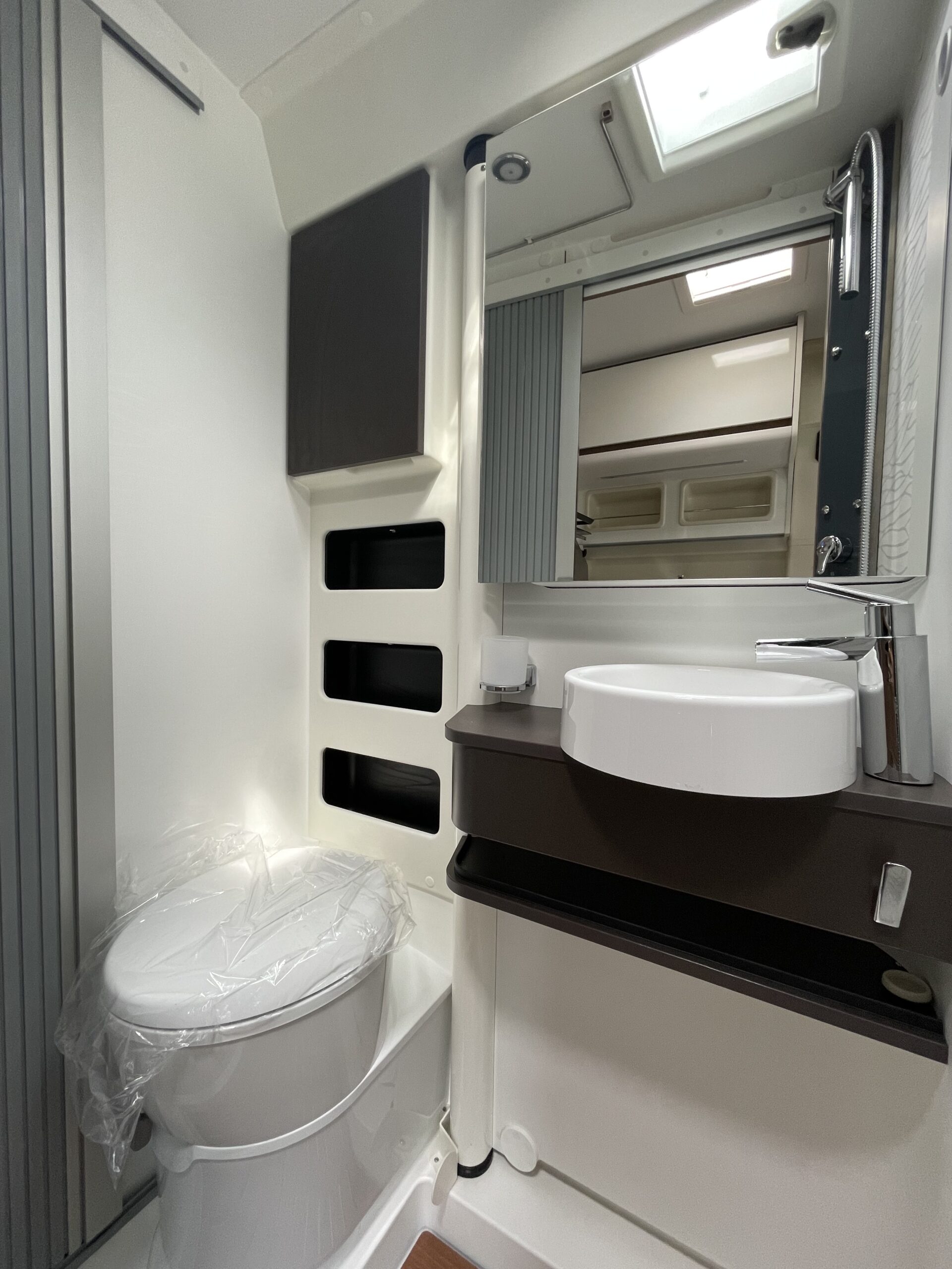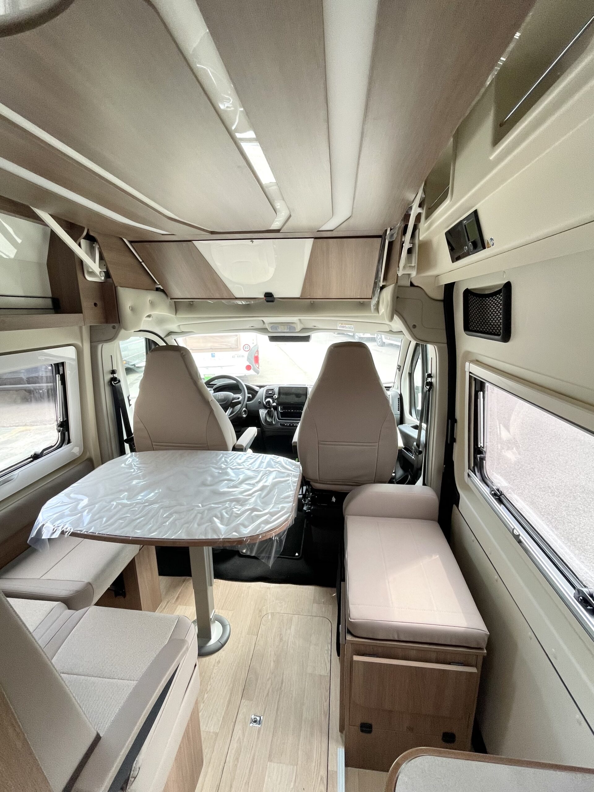Fiat Ducato Heavy 2200cc 140cv Euro 6D Final con ADBlue – Cerchi da 16″ – letto a soffitto a scomparsa assistita e martinetti – doppio pavimento tecnico con vano di stivaggio – serbatoio acque grigie coibentato dal gelo – letti posteriori modulabili – Gavone posteriore modulabile – 5 posti omologati – frigorifero 160 lt con AES – serbatoio acqua potabile da 85 lt – acque di recupero 100 lt – chiusura centralizzata porte cabina, portellone laterale e sportelli posteriori – specchietti retrovisori elettrici e riscaldati – doccia esterna calda e fredda – illuminazione interna a Led – letto fisso con rete a doghe, cardine in alluminio e materasso in Bultex – illuminazione esterna a Led con funzione cming home – isolamento XHP – pavimento con isolamento in styrofoam da 25mm e sottopavimento in pliestere – guarnizioni antifrizione sul soffitto – pavimento sigillato per proteggere il mobilio – gavone tecnico – pannelli rinforzati con finitura TITAN – rotaie fermacarico – pavimento gavone rinforzato – oscuranti cabina (parabrezza e finestrini laterali) – gradino elettrico – letto addizionale in dinette