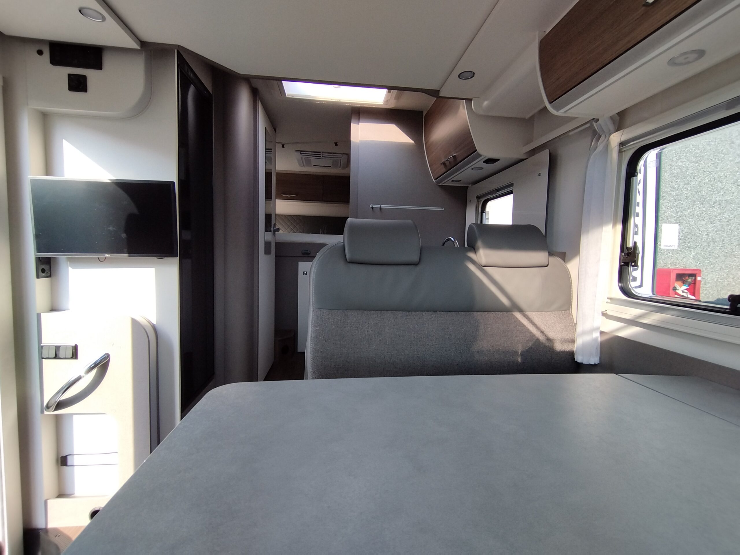 Veranda esterna Thule, Letto basculante elettrico, Piastra porta TV + TV zona giorno