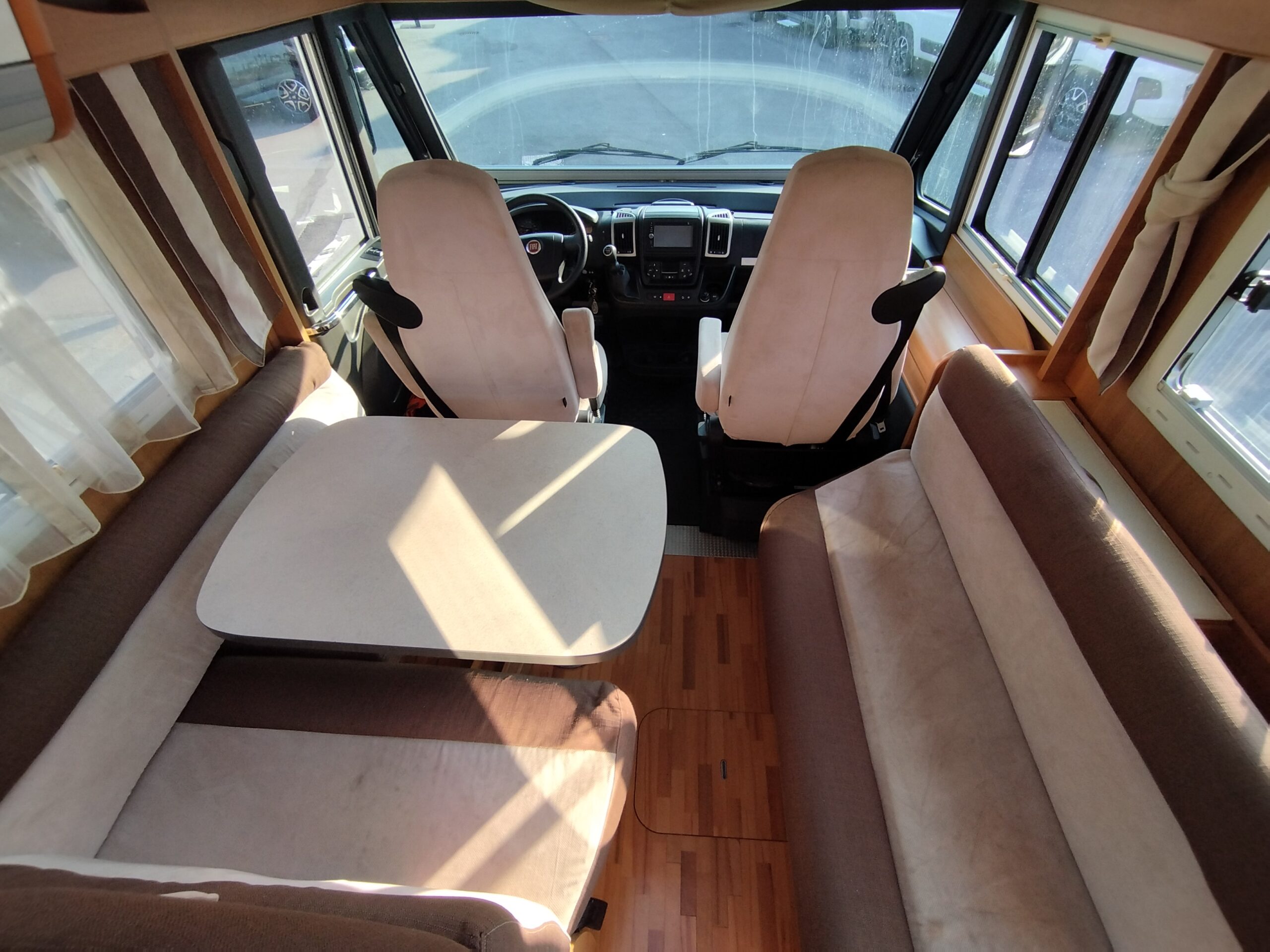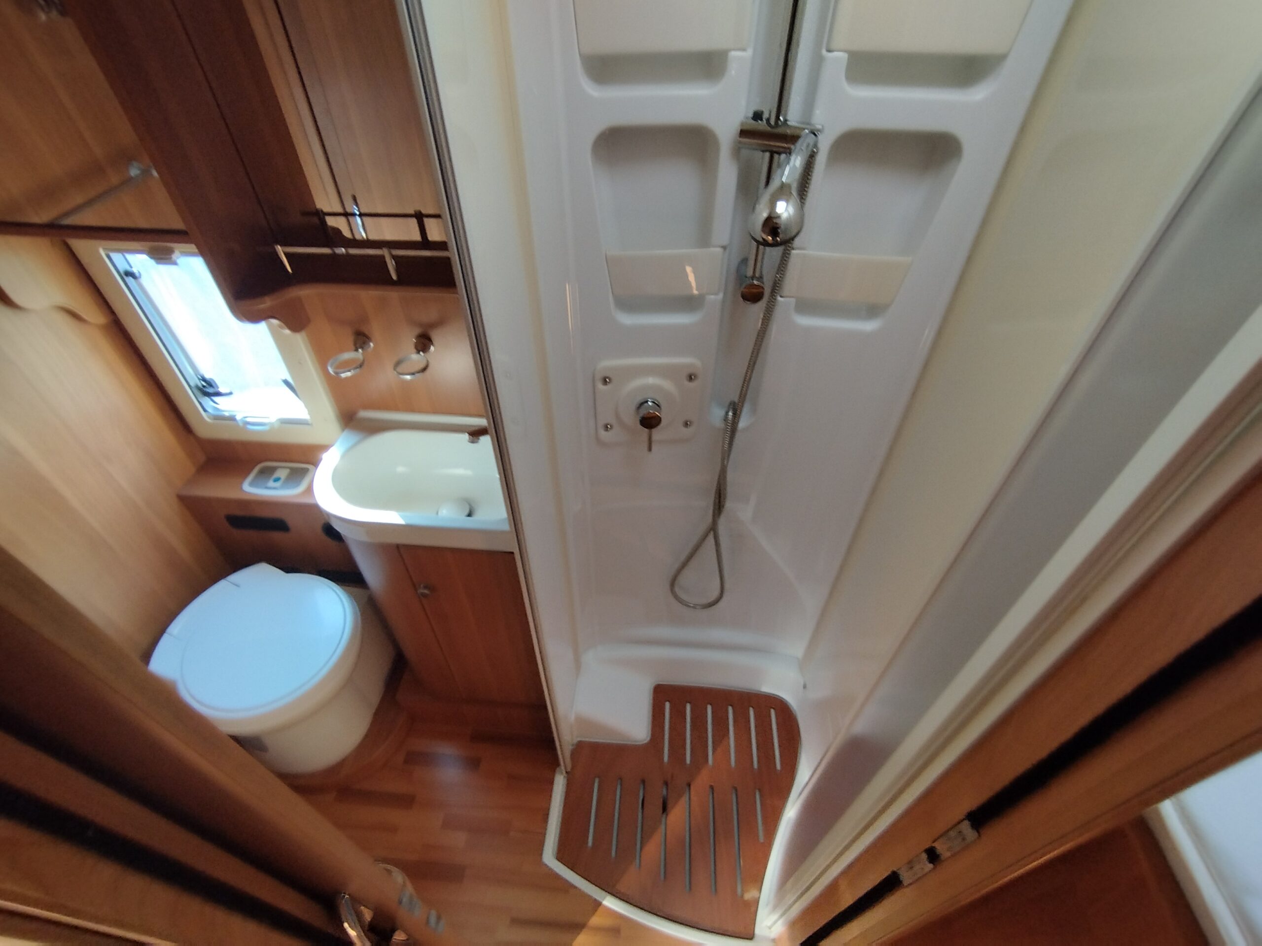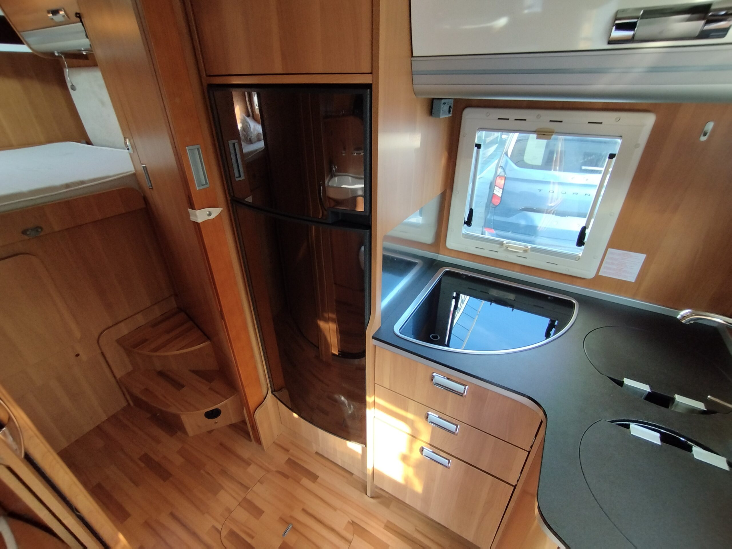 Oblò Midi Heki zona giorno, Frigorifero doppia porta 150lt a commutazione automatica, Oblò su letto basculante, Luci interne a Led – Comando CP Plus per Truma Combi