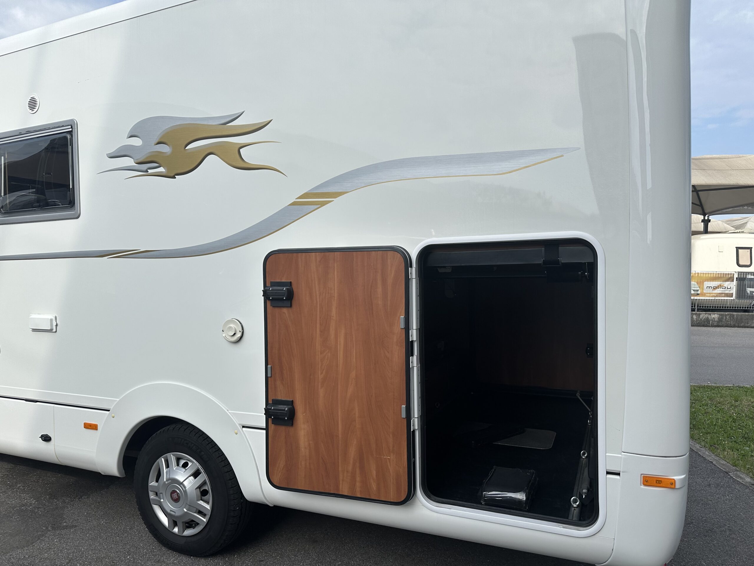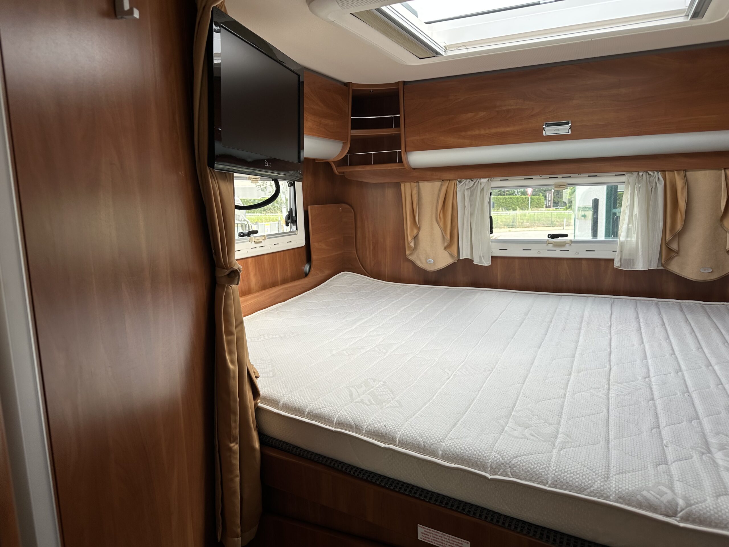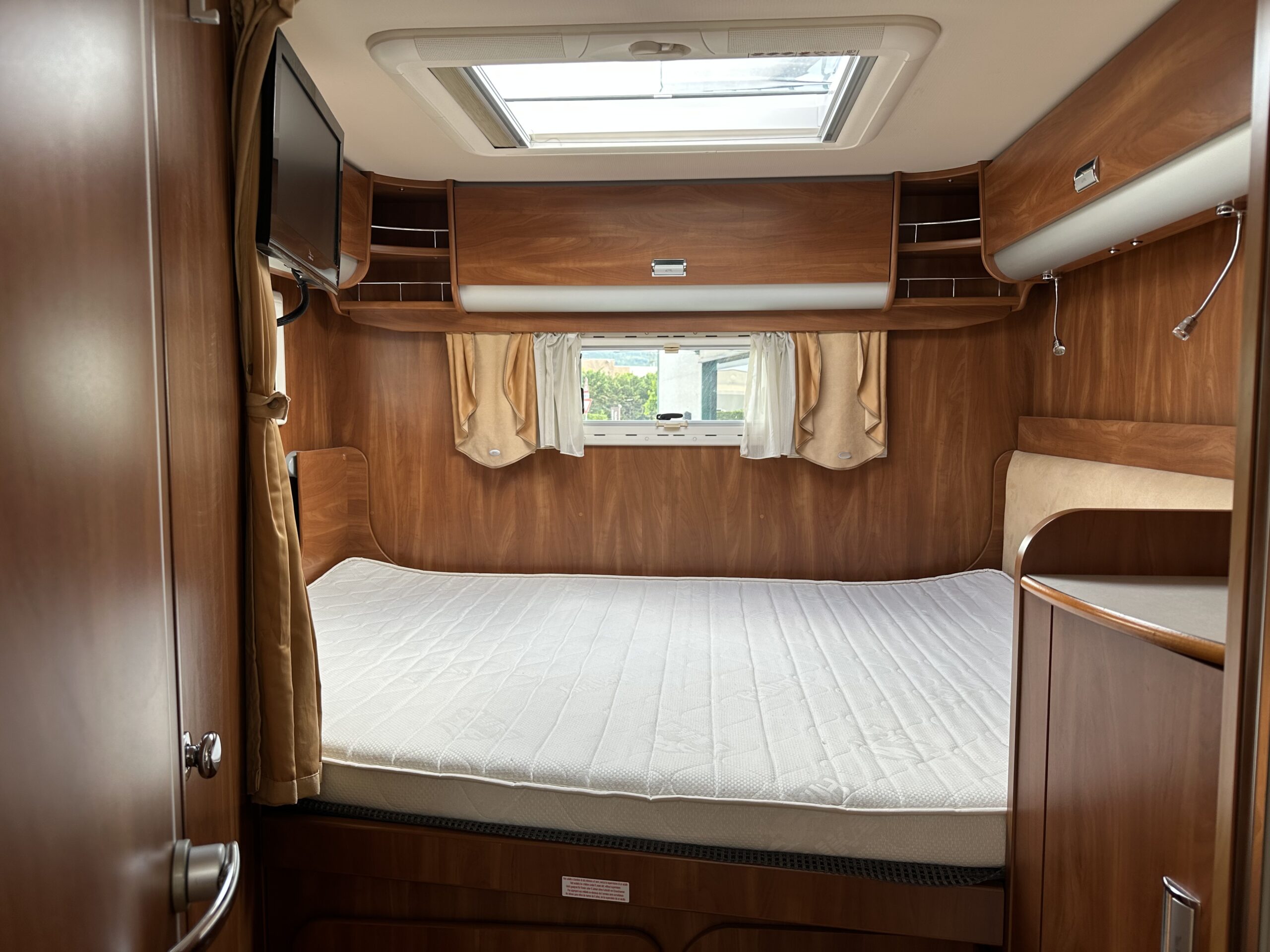Veranda esterna a tetto – Clima in cellula – Cucina con 4 fuochi e forno – Inverter da 600w – Doppio pavimento passante – Letto basculante elettrico – Cappa aspirante in cucina – Maxi oblò Heki zona giorno – – Stacca Batterie servizi – Frigorifero grande a commutazione automatica – Maxi Oblò Heki zona letto posteriore – Porta cellula con finestra, pattumiera e chiusura centralizzata – Piastra porta TV zona giorno – Illuminazione interna a led – Zanzariera porta cellula – Tappezzeria in alcantara – Luce esterna – Sistema di sicurezza in viaggio per il gas Truma Secumotion con scambiatore automatico bombole Duocontrol – Letto posteriore con sistema sali/scendi elettrico – Attacco esterno acqua e gas – Attacchi Tv + piastra porta Tv zona letto posteriore