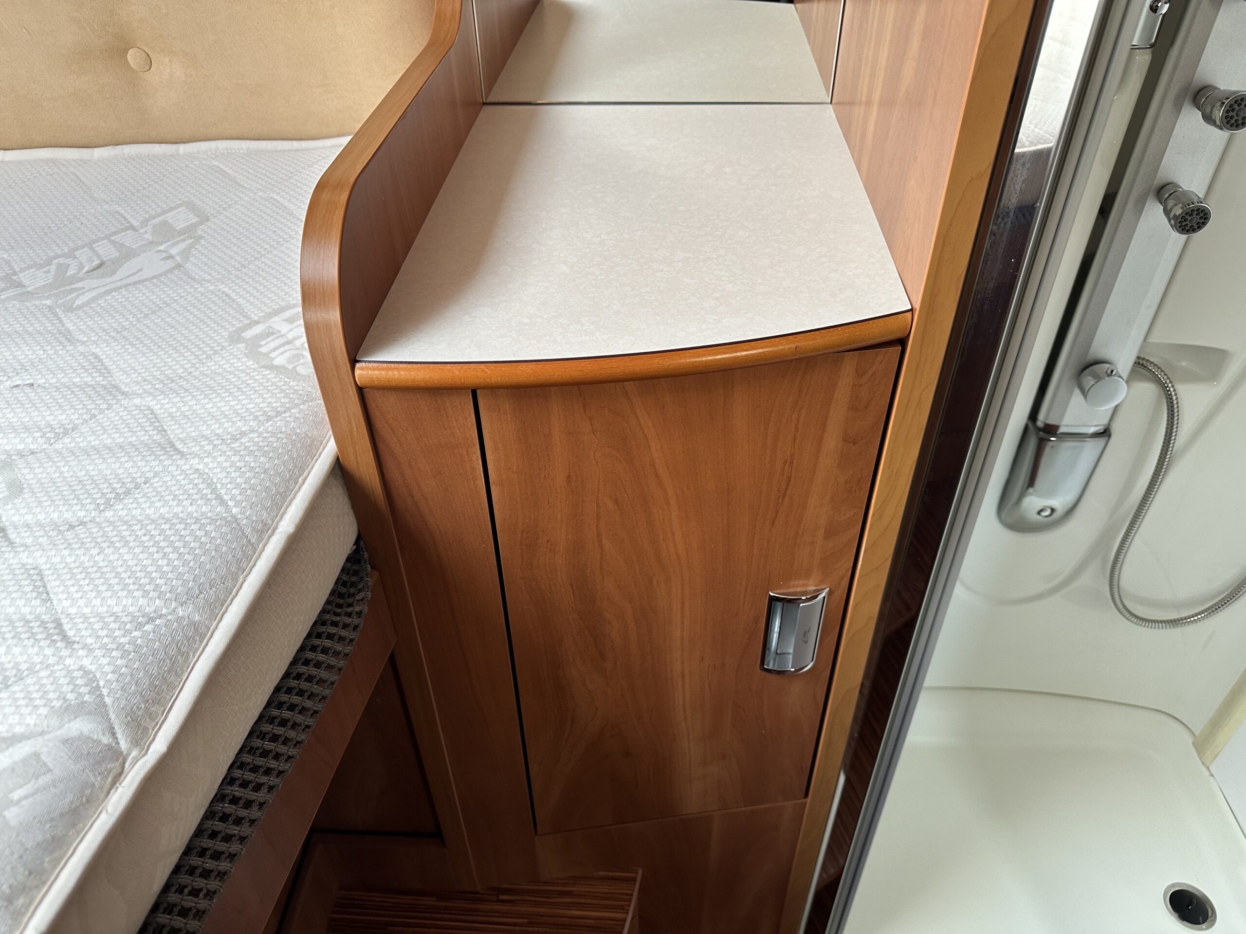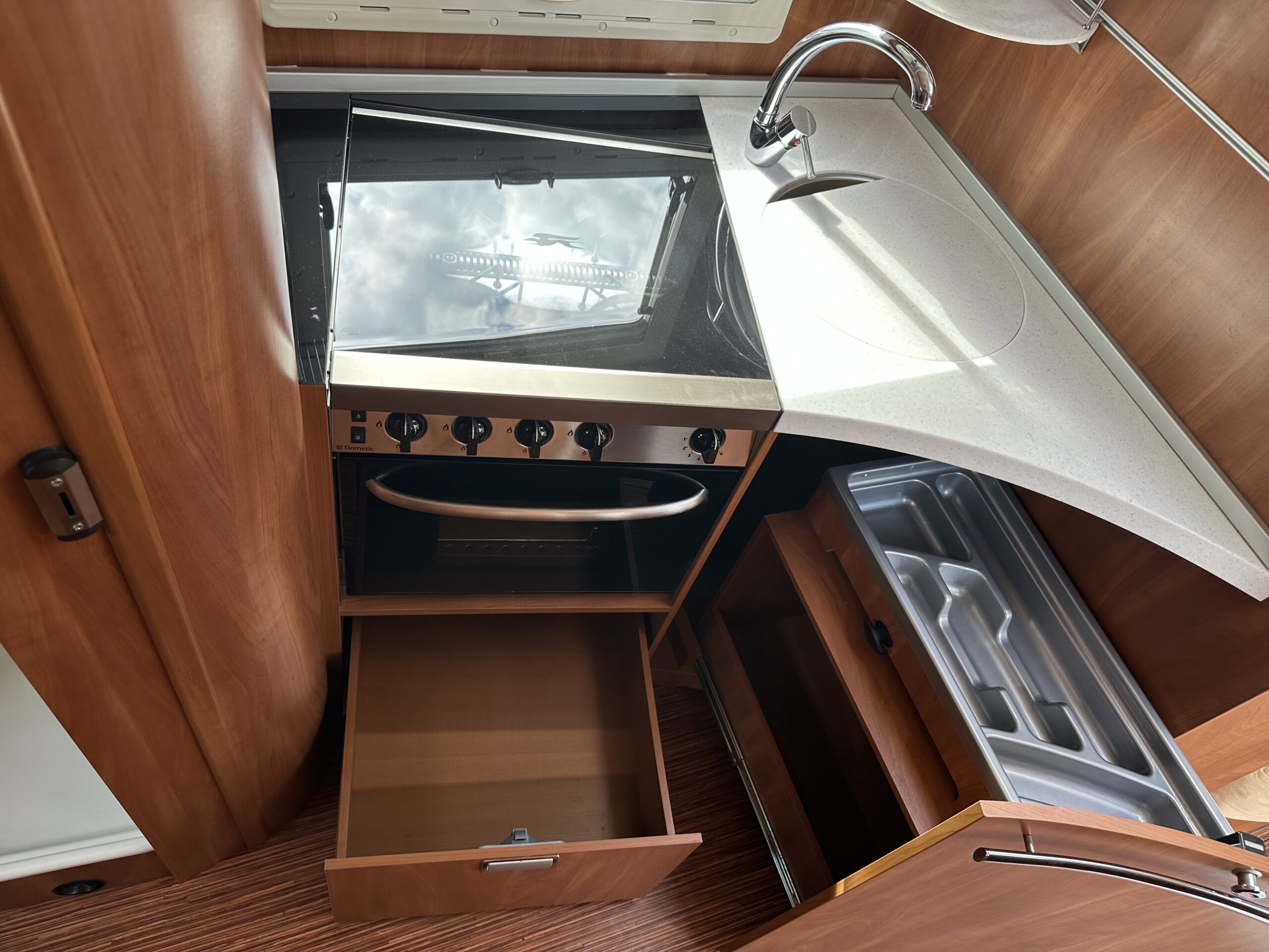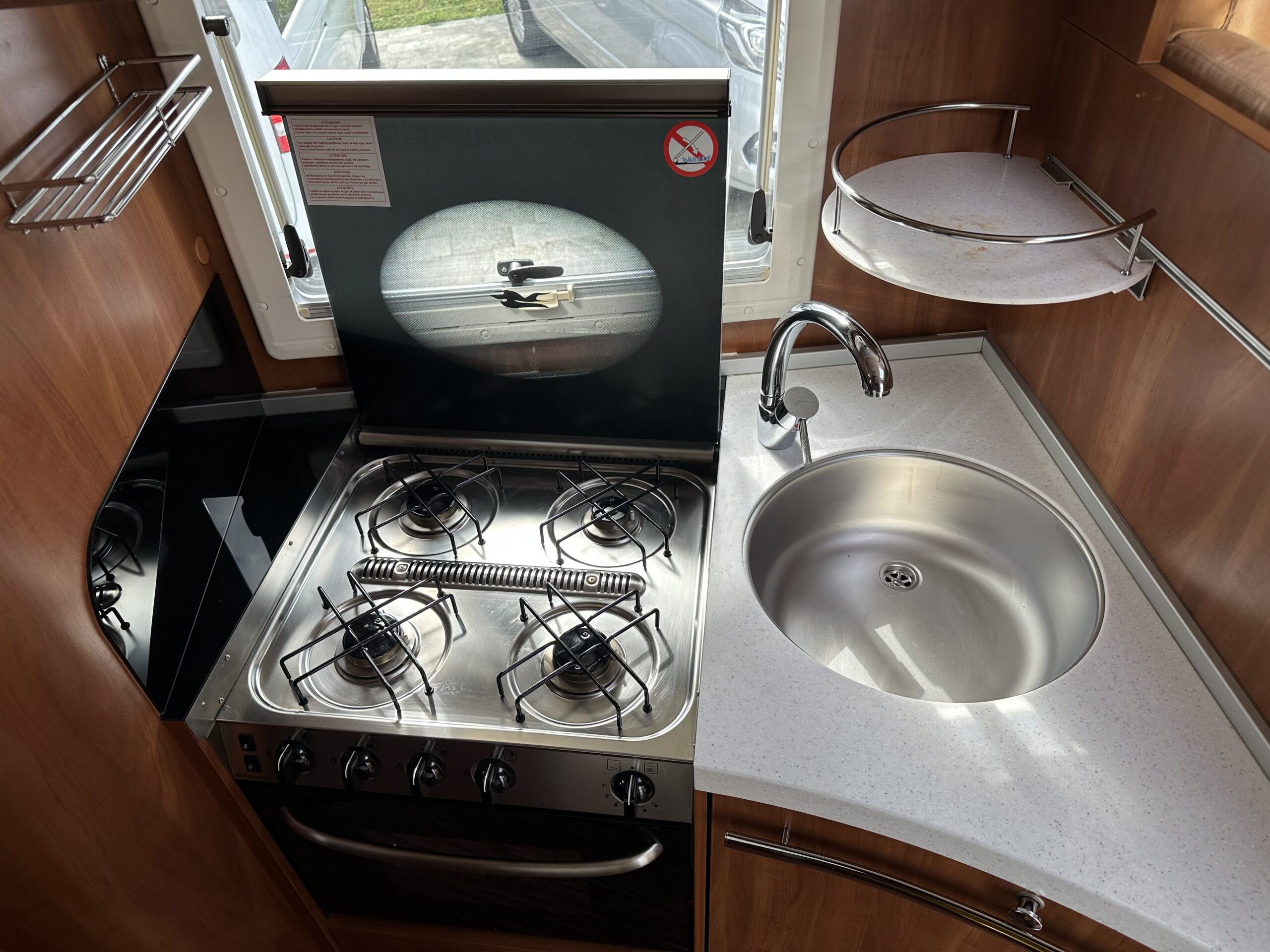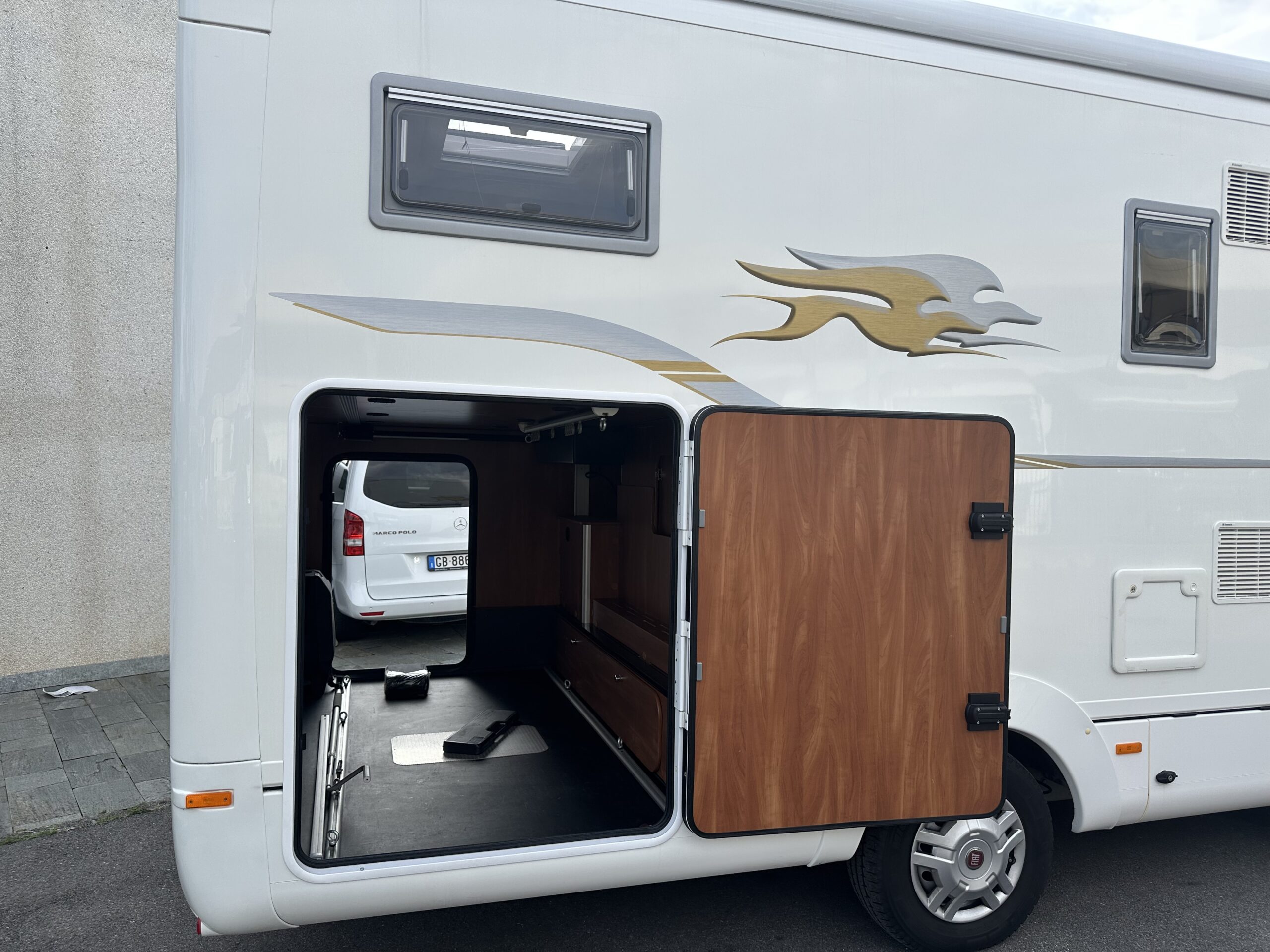 Veranda esterna a tetto – Clima in cellula – Cucina con 4 fuochi e forno – Inverter da 600w – Doppio pavimento passante – Letto basculante elettrico – Cappa aspirante in cucina – Maxi oblò Heki zona giorno – – Stacca Batterie servizi – Frigorifero grande a commutazione automatica – Maxi Oblò Heki zona letto posteriore – Porta cellula con finestra, pattumiera e chiusura centralizzata – Piastra porta TV zona giorno – Illuminazione interna a led – Zanzariera porta cellula – Tappezzeria in alcantara – Luce esterna – Sistema di sicurezza in viaggio per il gas Truma Secumotion con scambiatore automatico bombole Duocontrol – Letto posteriore con sistema sali/scendi elettrico – Attacco esterno acqua e gas – Attacchi Tv + piastra porta Tv zona letto posteriore