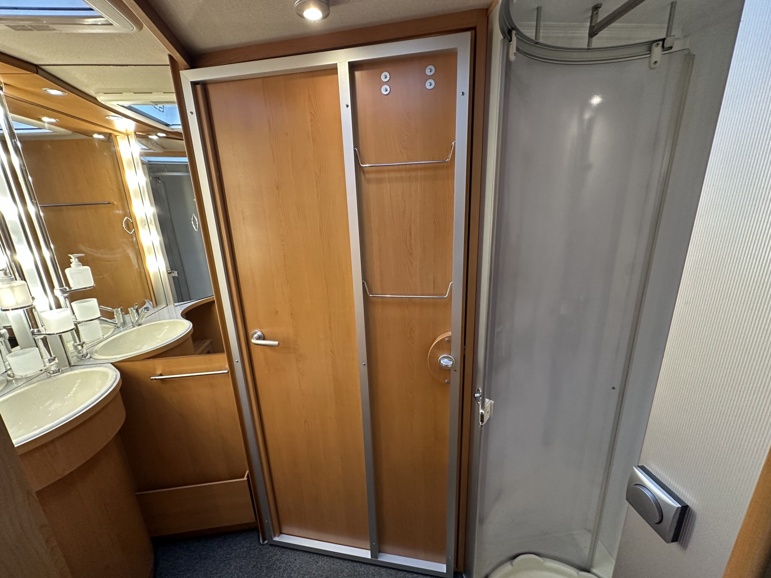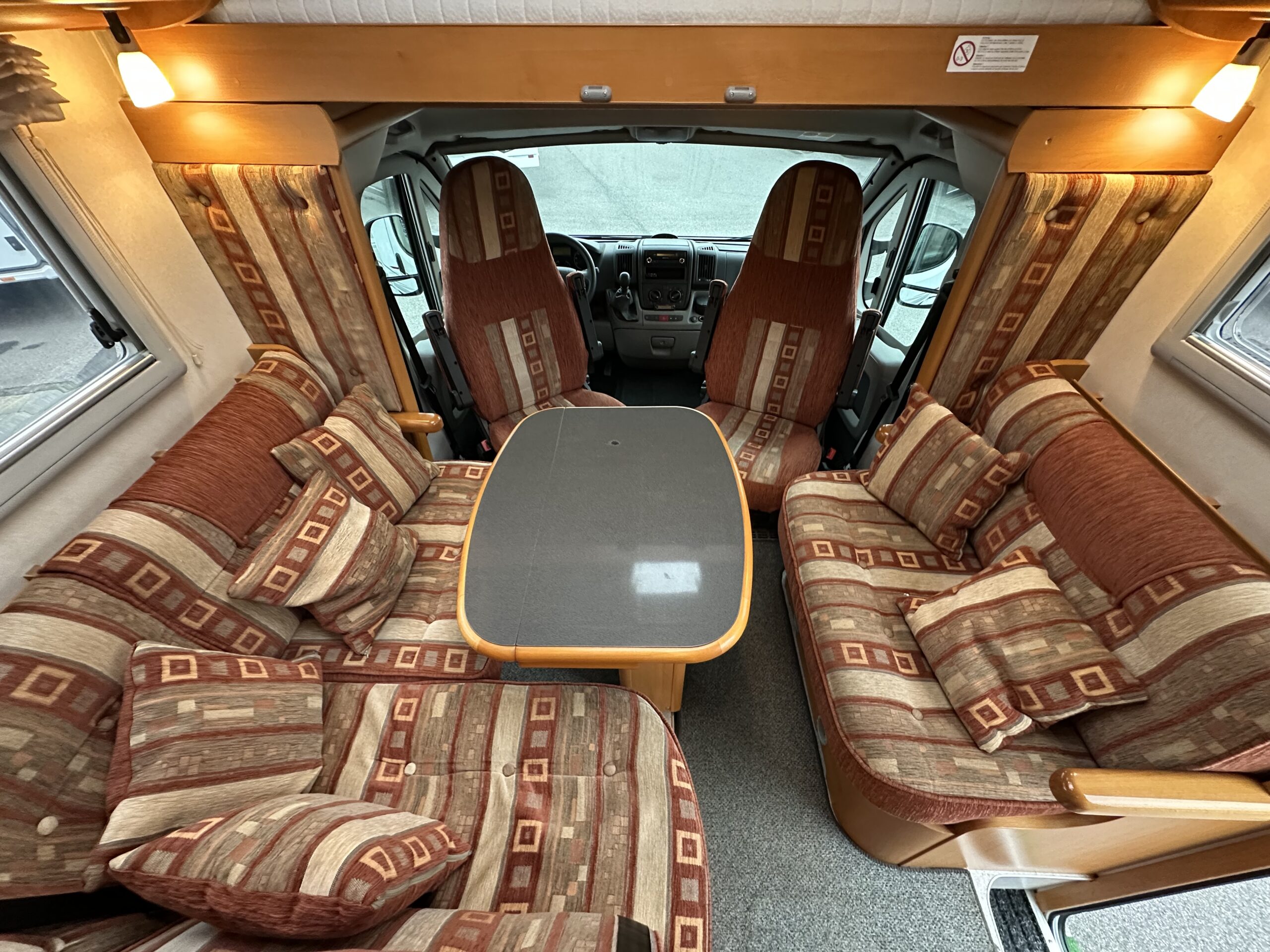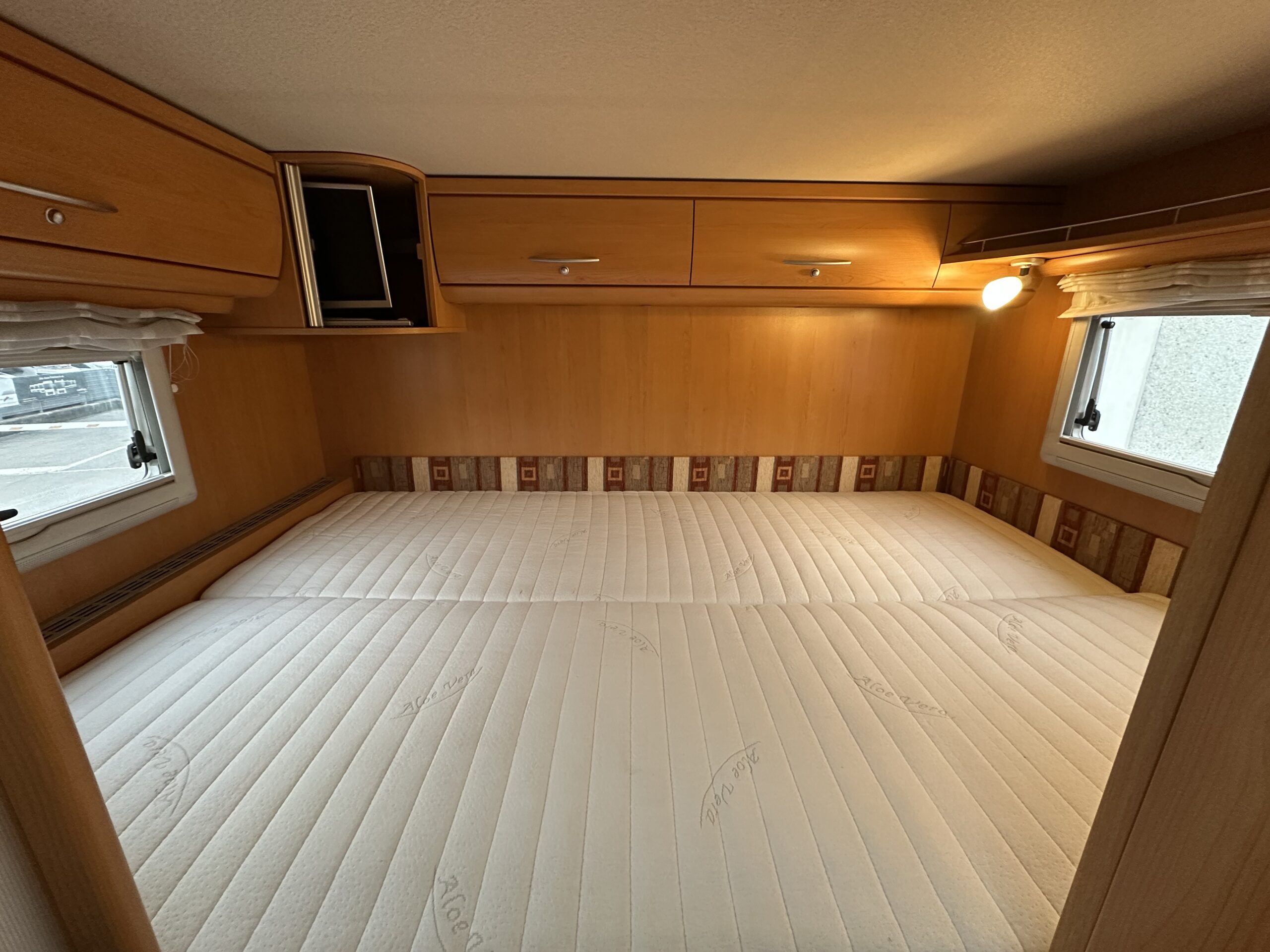 Mansarda in monoscocca – Veranda esterna – Pannello solare – Riscaldamento a termosifoni Alde ad acqua – Luce esterna – Doppia batteria- Doccia esterna – Piastra porta tv anteriore e posteriore – Cappa spirante in cucina – Maxi oblò Heki in dinette – Frigorifero grande a commutazione automatica – Sistema di sicurezza gas per il viaggio Truma Secumotion – Doppio pavimento passante – Moquette cellula completa – Generatore Tec 29 ( non in garanzia).