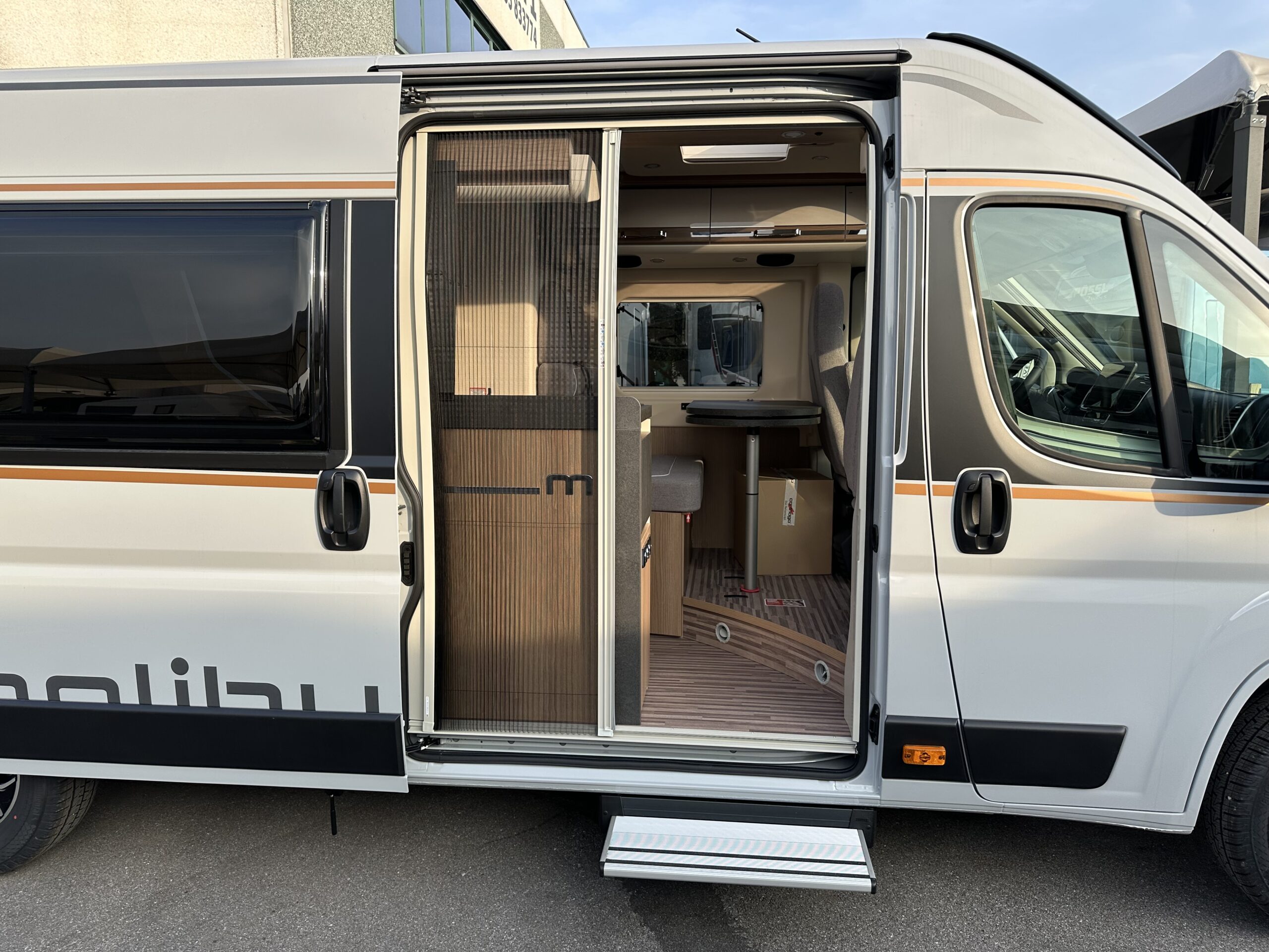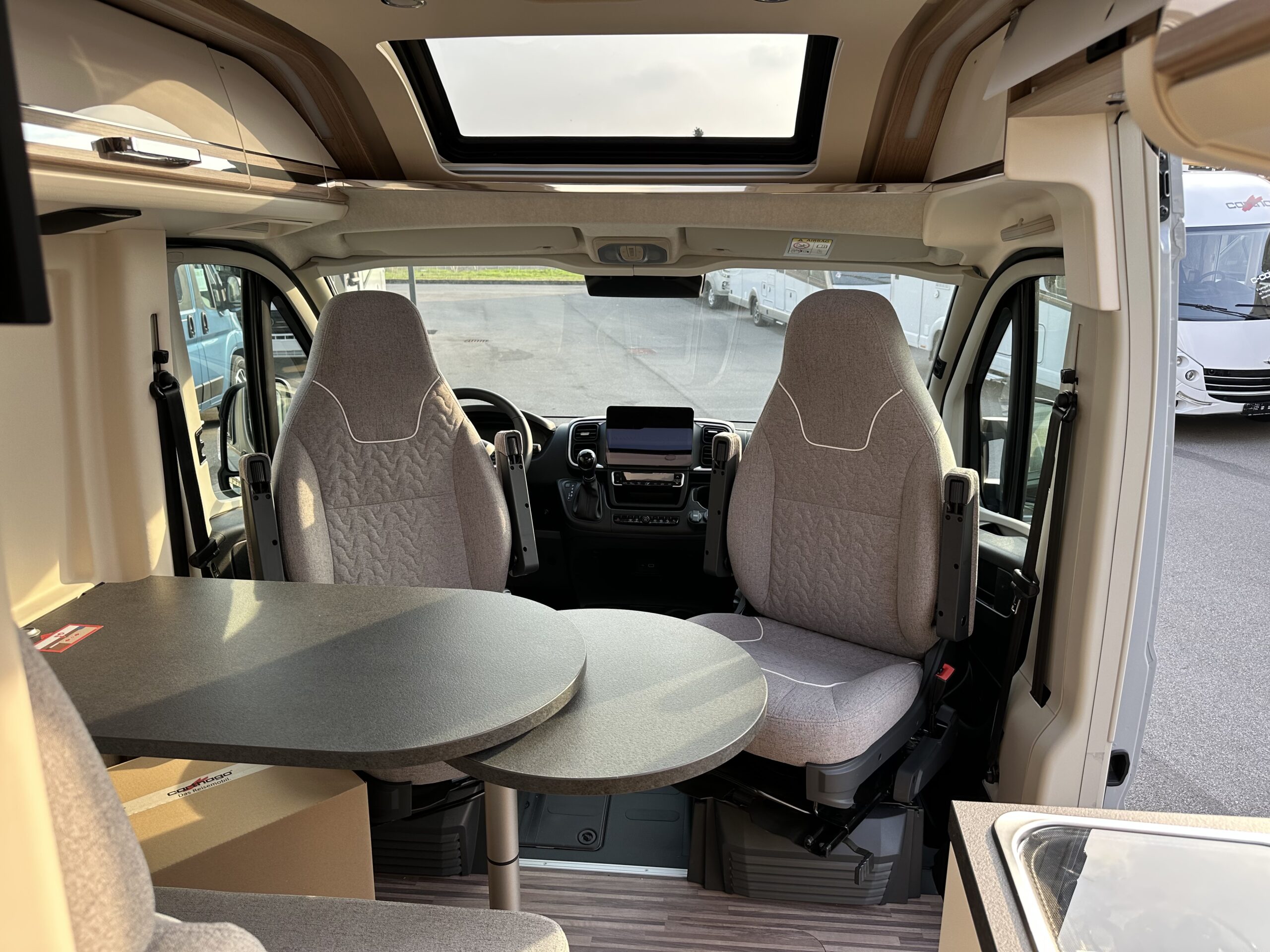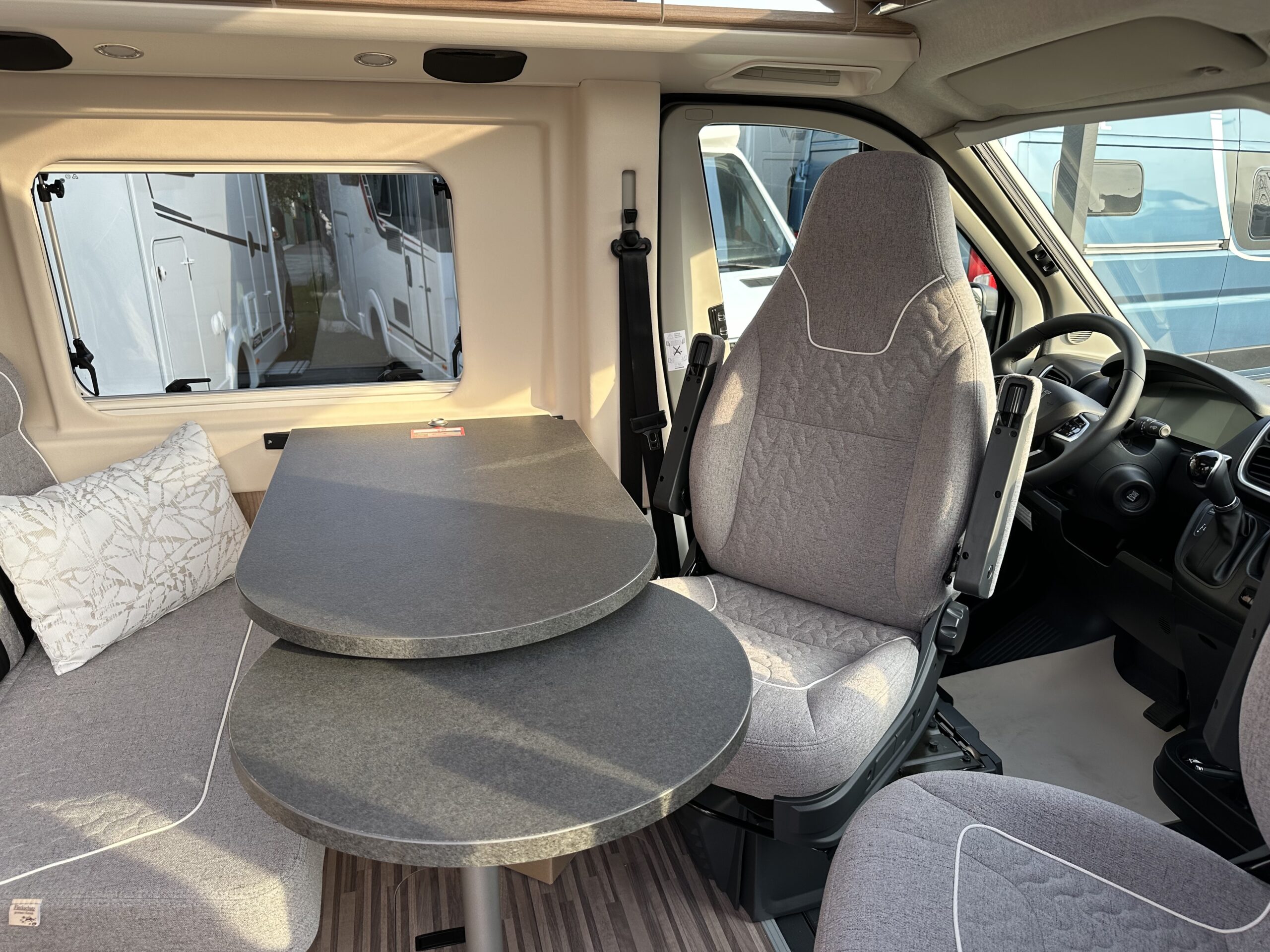 – PACCHETTO TELAIO: Zanzariera dietro la porta scorrevole – Sedili pilota rivestiti in stesso tessuto del salone incl. braccioli imbottiti – Serbatoio carburante da 90 litri – Aiuto parcheggio con sensori posteriori – Booster di ricarica – Sistema di oscuramento della cabina di guida Remis con plissè su parabrezza e sui finestrini laterali – Specchietti esterni, regolabili elettricamente e riscaldabili – Sedile passeggero regolabile in altezza – Specchietti esterni ripiegabili elettricamente – Predisposizione radio con antenna sul tetto e DAB+, altoparlanti (4x) – Cornice del faro in nero