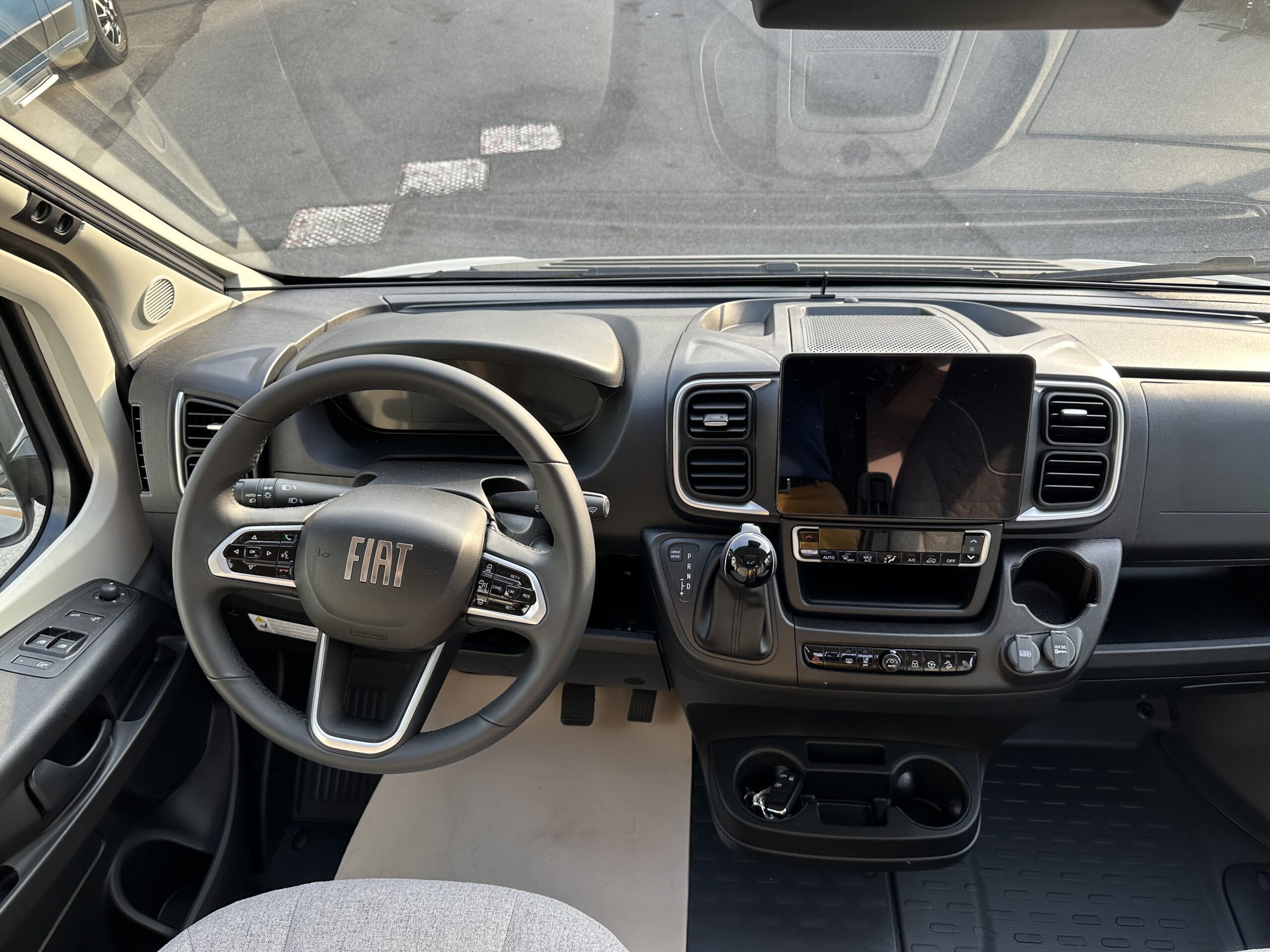 – PACCHETTO TELAIO PLUS FIAT: Strumento combinato con display a colori – Volante e pomello del cambio in pelle – Climatizzatore automatico in cabina – Volante multifunzione – Freno di stazionamento elettrico – Abbellimento del cruscotto con griglie di ventilazione cromate – Cerchi in lega da 16 “ Fiat per telaio f35 in combinazione con il cambio automatico a 8 rapporti – Paraurti verniciati nel colore della carrozzeria – Keyless Start caricabatteria elettronico con tasto Start/Stop – Stazione di ricarica induttiva per smartphone nella cabina di guida – Fendinebbia con luce di svolta – Piastra di protezione nera