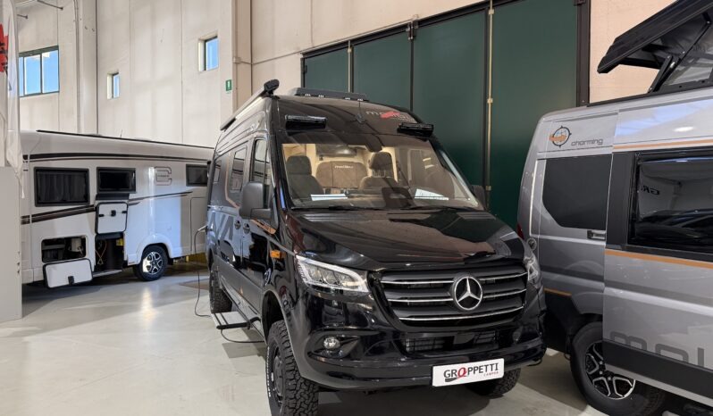 – PACCHETTO PERFORMANCE 4X4 (SERIE): Bocchette a lunga gittata nella plancia portastrumenti – Set di attrezzi premium – 2 Batteria agli ioni di litio da 150 Ah, in tutto 300 Ah, con specifico caricabatteria elettronico – Rifinitura cucina – Predisposizione radio con antenna sul tetto e DAB+, altoparlanti (4x) – Riscaldamento ulteriore del serbatoio e dei tubi acque scarico – Fari LED High Performance – Presa USB – Zanzariera dietro la porta scorrevole – Assistente attivo acustico di mantenimento corsia – Serbatoio acque chiare e acque grigie isolato – Serbatoio acque chiare con riscaldamento aggiuntivo – Presa USB zona gruppo sedute – Serbatoio carburante da 93 litri – Assistente del fascio principale – Grafica esterna Performance 4×4 – Sistema di assistenza attivo alla regolazione della distanza DISTRONIC – Materassi di qualità in schiuma fredda nel letto posteriore -Pacchetto acustica – Coperchio ribaltabile per superficie di appoggio – Predisposizione impianto elettrico gancio di traino incluso presa per rimorchio – Sistema di oscuramento della cabina di guida Remis con plissè su parabrezza e sui finestrini laterali – Climatizzatore cabina automatico Thermotronic – Specchietti esterni ripiegabili elettricamente – Inverter da 12 V a 230 V, 1.800 W con funzione di commutazione automatica – Rivestimento tetto con strato di microfibra coibente – Vetro isolante termico con banda filtrante sul parabrezza – Barra luminosa a LED da 11″ Cerchi in acciaio da 16” con pneumatici fuoristrada – Sistema di retrocamera con lente singola – Griglia del radiatore cromata – Illuminazione esterna a LED, compresa la grondaia – Truma Duo Control CS con sensore anticollisione e commutazione automatica – Cambio automatico 9G-Tronic con funzione Hold – Applique da soffitto zona giorno con illuminazione diffusa LED indiretta – Sistema di controllo pressione pneumatici – Colore esterno nero ossidiana metallizzato – Freno di stazionamento elettrico – Presa 230V zona dinette – Set Camping Malibu (un tavolo e due sedie pieghevoli) – Sedili cabina regolabili in altezza ed inclinazione – Paraurti verniciato nel colore della carrozzeria – MBUX 10,2″ Multimedia con navigatore / DAB+ – Presa USB zona letti posteriori – Assistente alla segnaletica stradale – Booster di ricarica da 70 – Sedili comfort in cabina rivestiti con la tappezzeria zona giorno incl. Braccioli imbottiti – Trazione integrale permanente incl. fari posteriori con tecnologia LED – Variante peso 4.100 kg – Cornice della griglia del radiatore nel colore della carrozzeria – Pannello comandi digitale Truma CP Plus – Veranda a tetto, lunghezza 325 cm – Strumento combinato con display a colori – Variante motore 190 CV / 140 kW, Euro VI – Volante in pelle – Truma Combi 6 D+E incl. kit altezze (funzionamento diesel/elettrico)