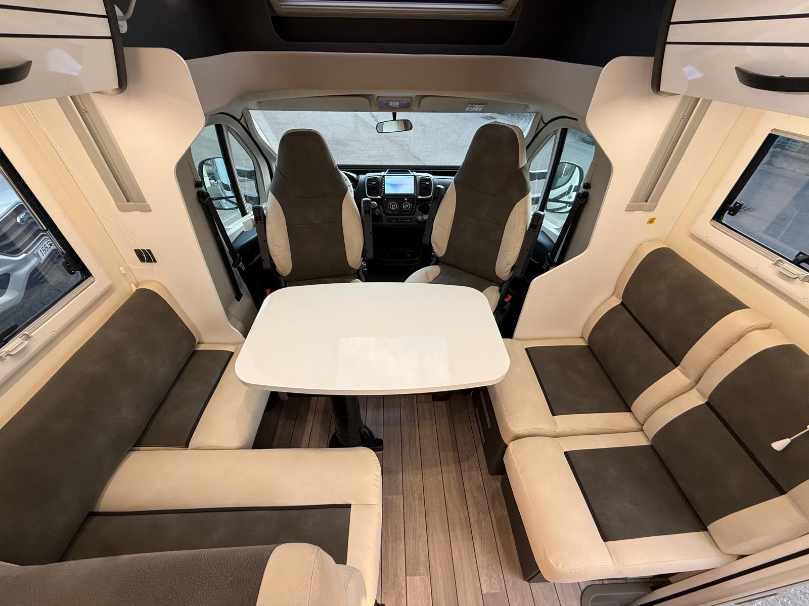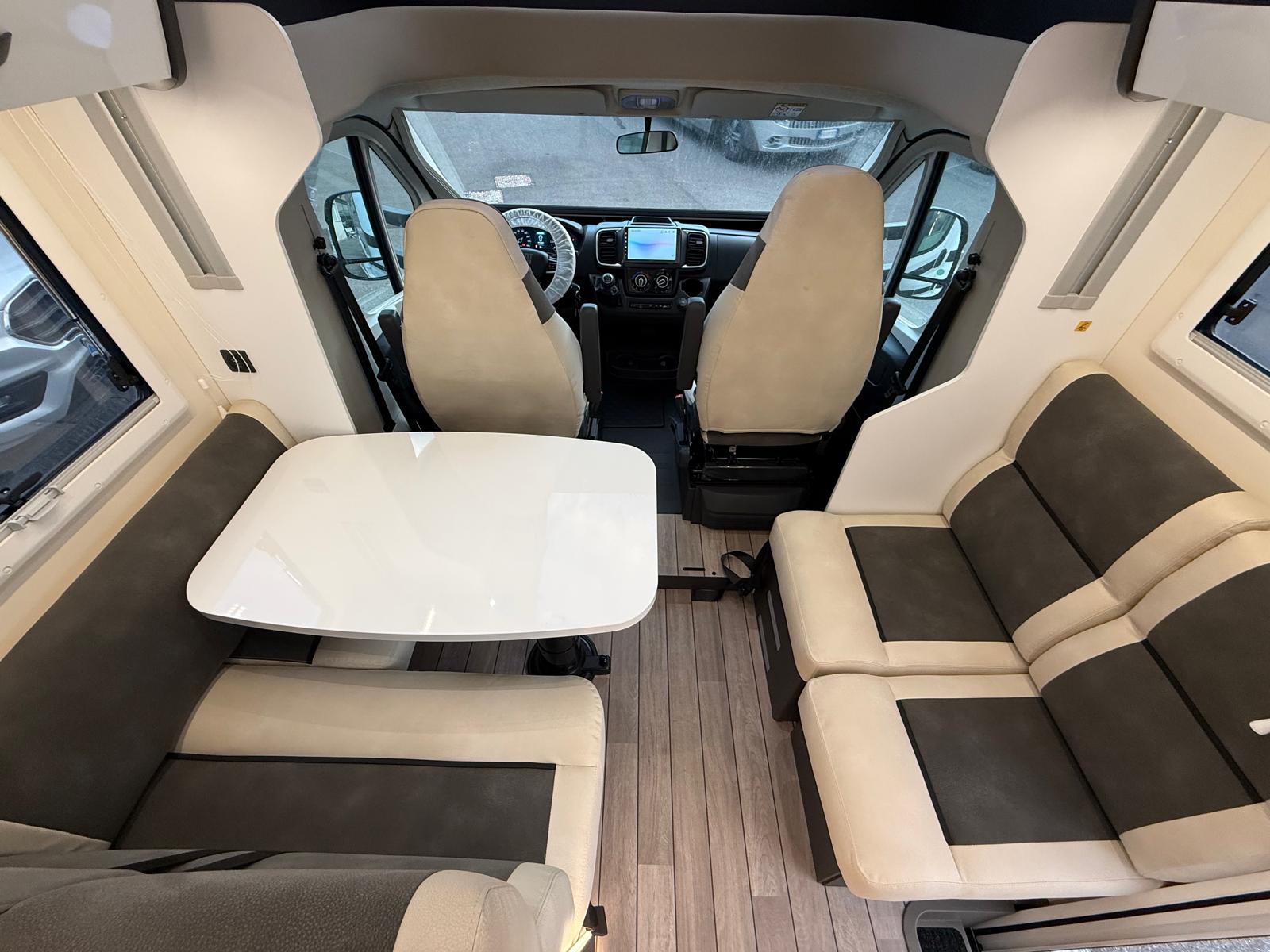 – PACK SERIE 300 FIAT In promozione a costo € 0,00: Fendinebbia, paraurti anteriore in tinta carrozzeria, piastra paramotore nera, cerchi in lega 16″ bicolore, volante e pomello del cambio in pelle, tecno Dash board, freno di stazionamento elettrico, TPMS monitoraggio pressione pneumatici, porta cellula XL con finestra, doppia chiusura e centralizzata, pannello solare 200w con regolatore MPPT, tetto panoramico, oscuranti plissetati cabina, braccio porta tv, coprisedili cabina in tinta tappezzeria.