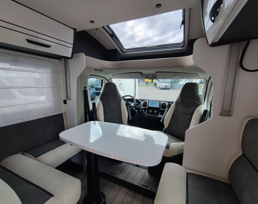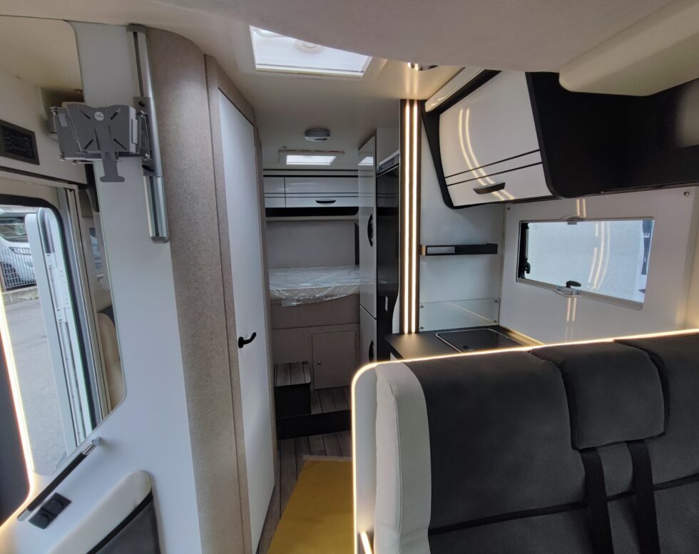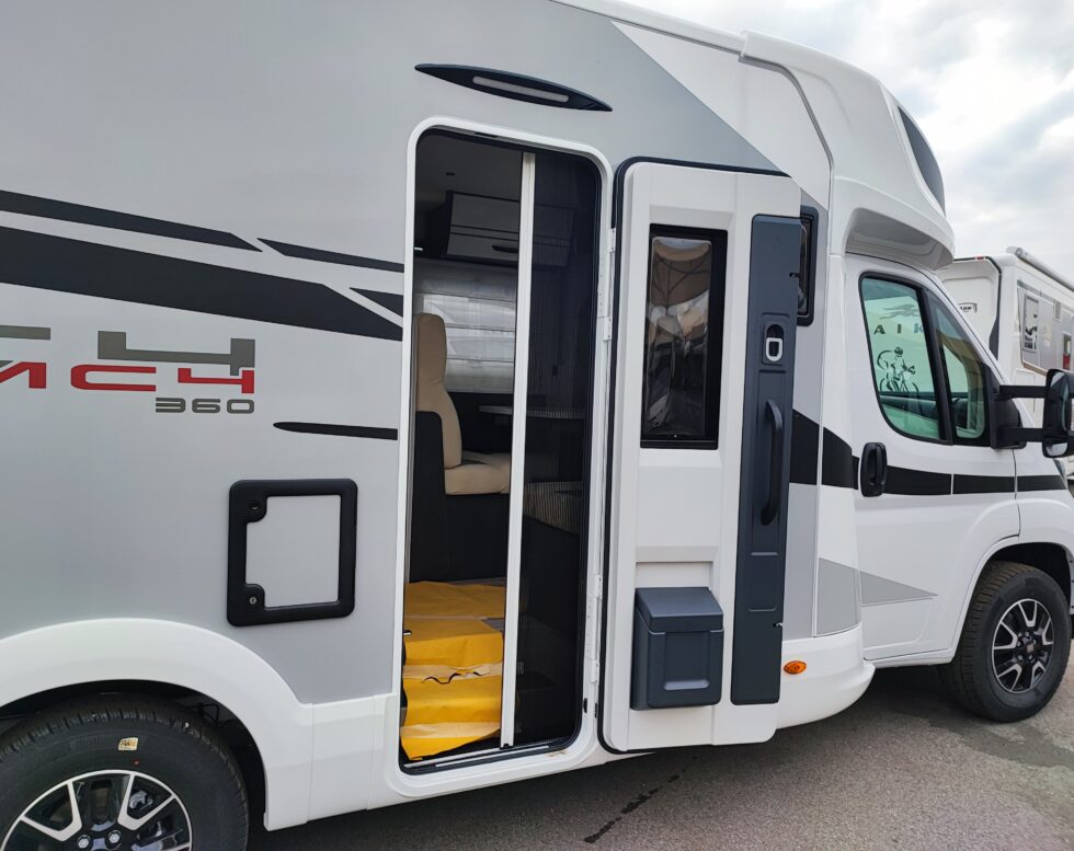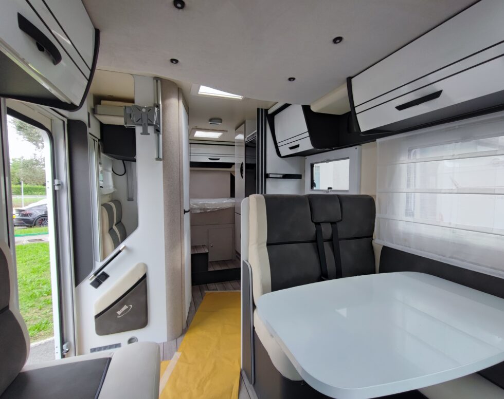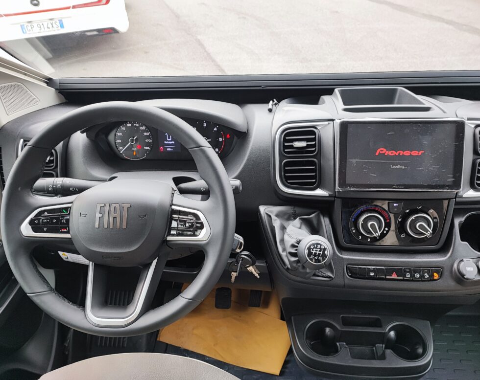 – PACK SERIE 300 FIAT: Fendinebbia, paraurti anteriore in tinta carrozzeria, piastra paramotore nera, cerchi in lega 16″ bicolore, volante e pomello del cambio in pelle, pannello di controllo tecnico, TPMS monitoraggio pressione pneumatici, freno a mano elettrico, porta ingresso cellula XL con doppia chiusura centralizzata, pannello solare 200w con regolatore MPPT, tetto panoramico, oscuranti plissettati cabina, braccio porta tv, coprisedili cabina in tinta tappezzeria