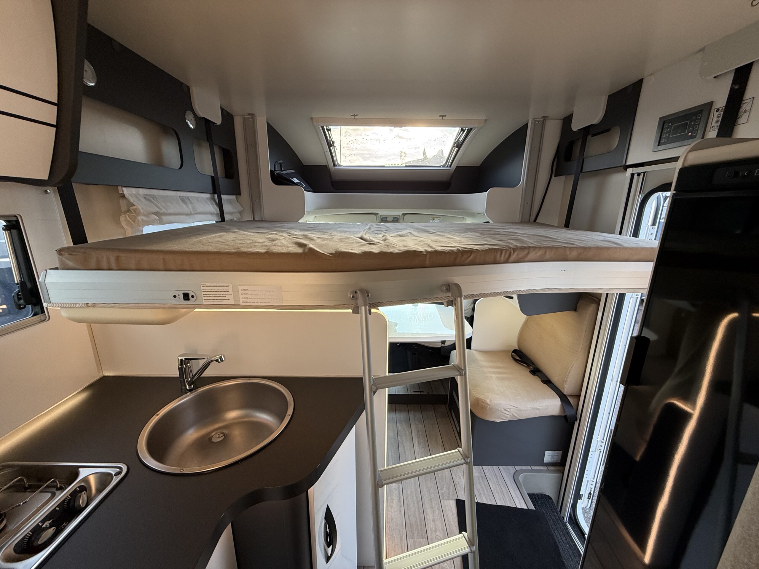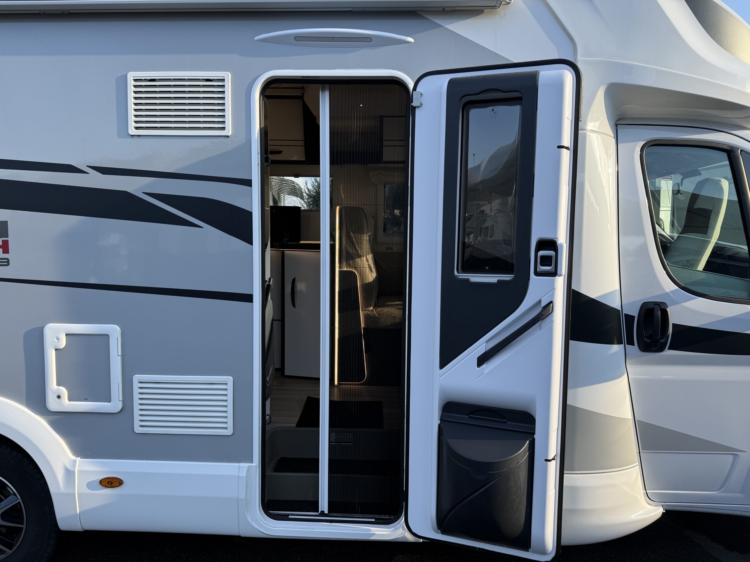 Veranda esterna-Letto basculante a movimentazione elettrica-Pannello solare-Climatizzatore Truma Aventa 2^ Generazione-Staffa Tv zona giorno estraibile + TV-Luce esterna-Prese USB aggiuntive in dinette -Porta cellula XL con finestra, pattumiera integrata e chiusura centralizzata-Zanzariera scorrevole porta cellula-Comando CP Plus per Truma Combi-Frigorifero grande a commutazione automatica -Oblò Skyroof su cupolino anteriore-Prolunga e cuscini per trasformazione letto matrimoniale posteriore-Illuminazione interna a led -Dinette trasformabile in 5 posto letto con materassi dedicati -Antifurto perimetrale e volumetrico