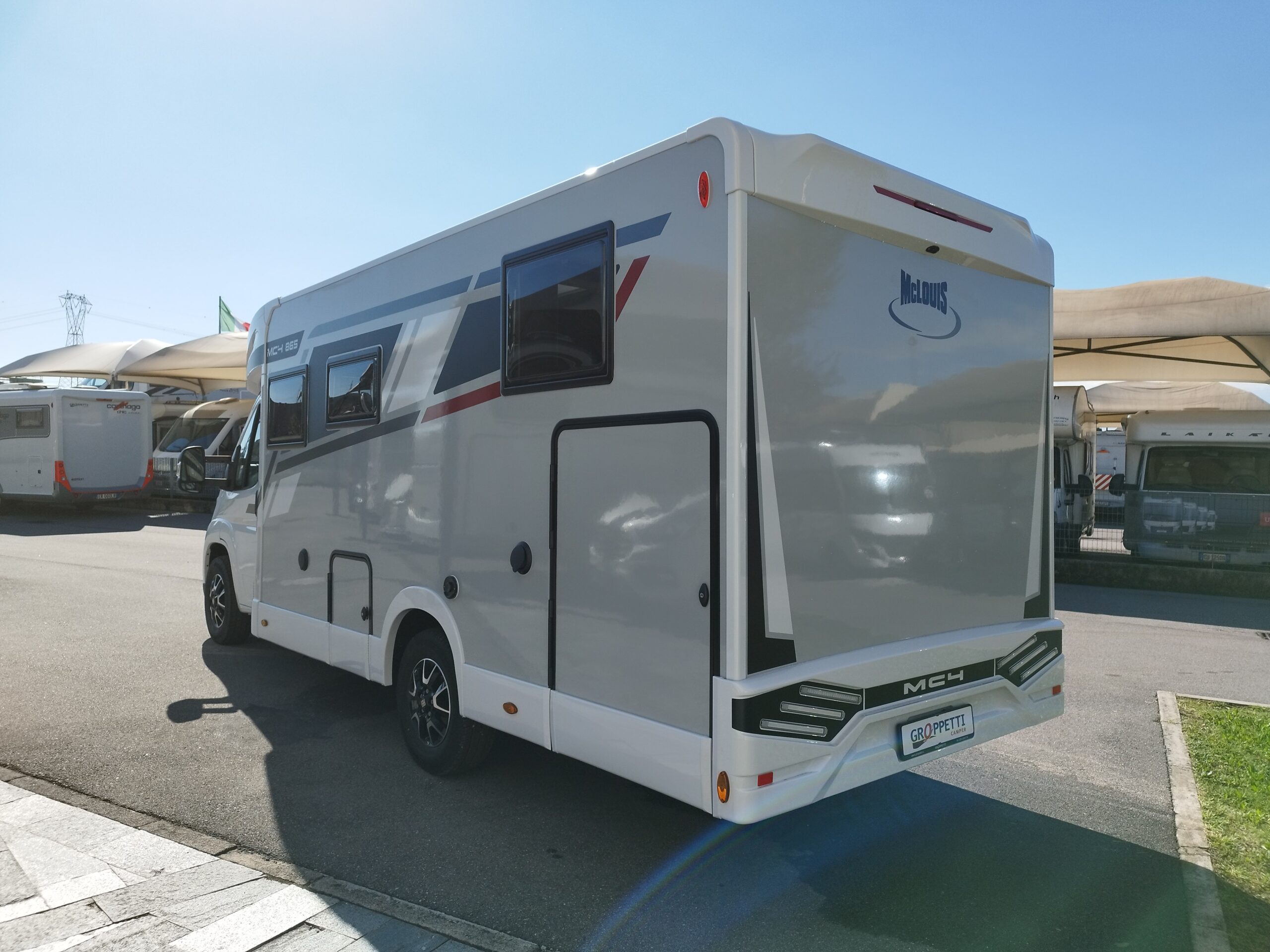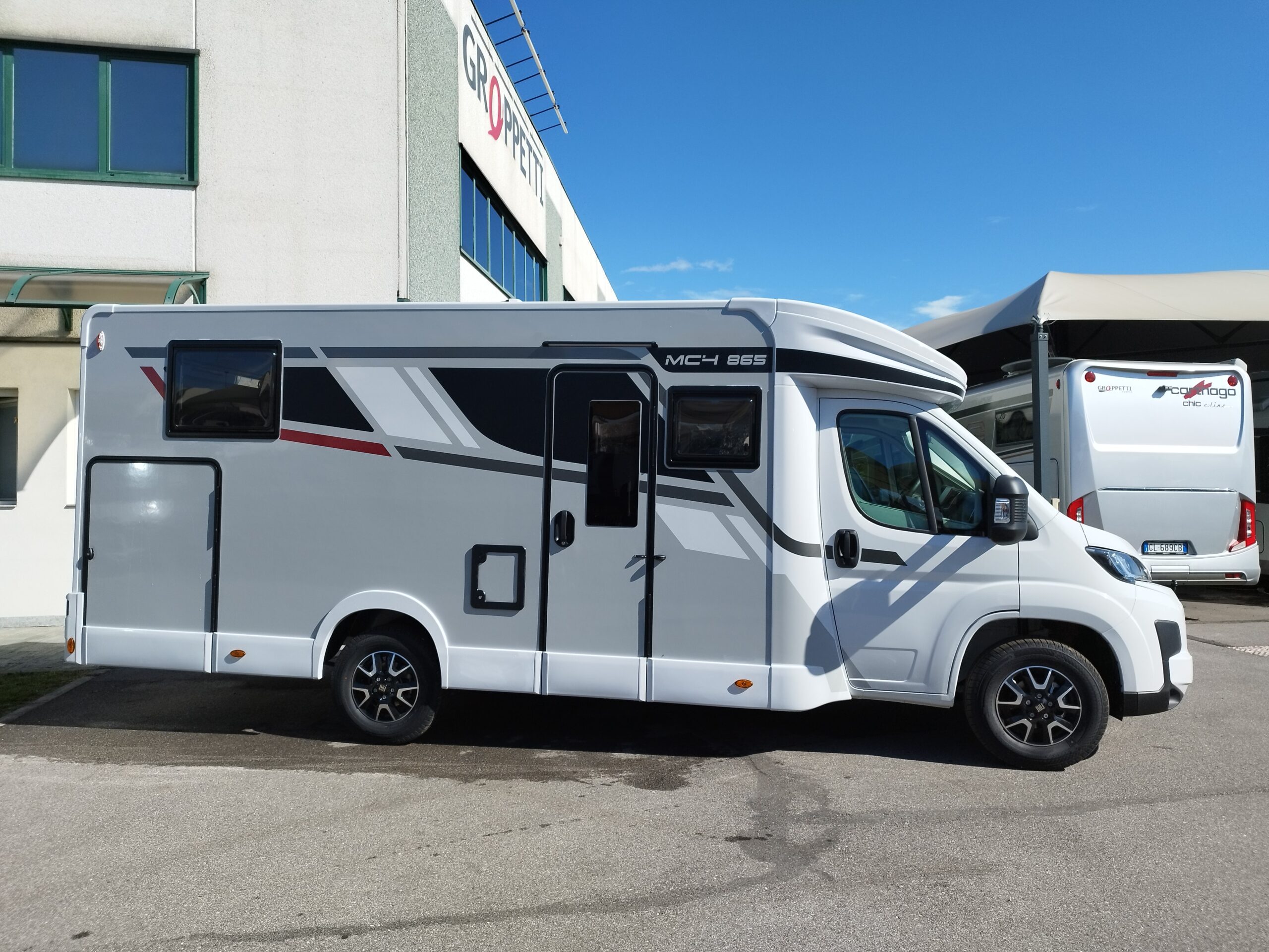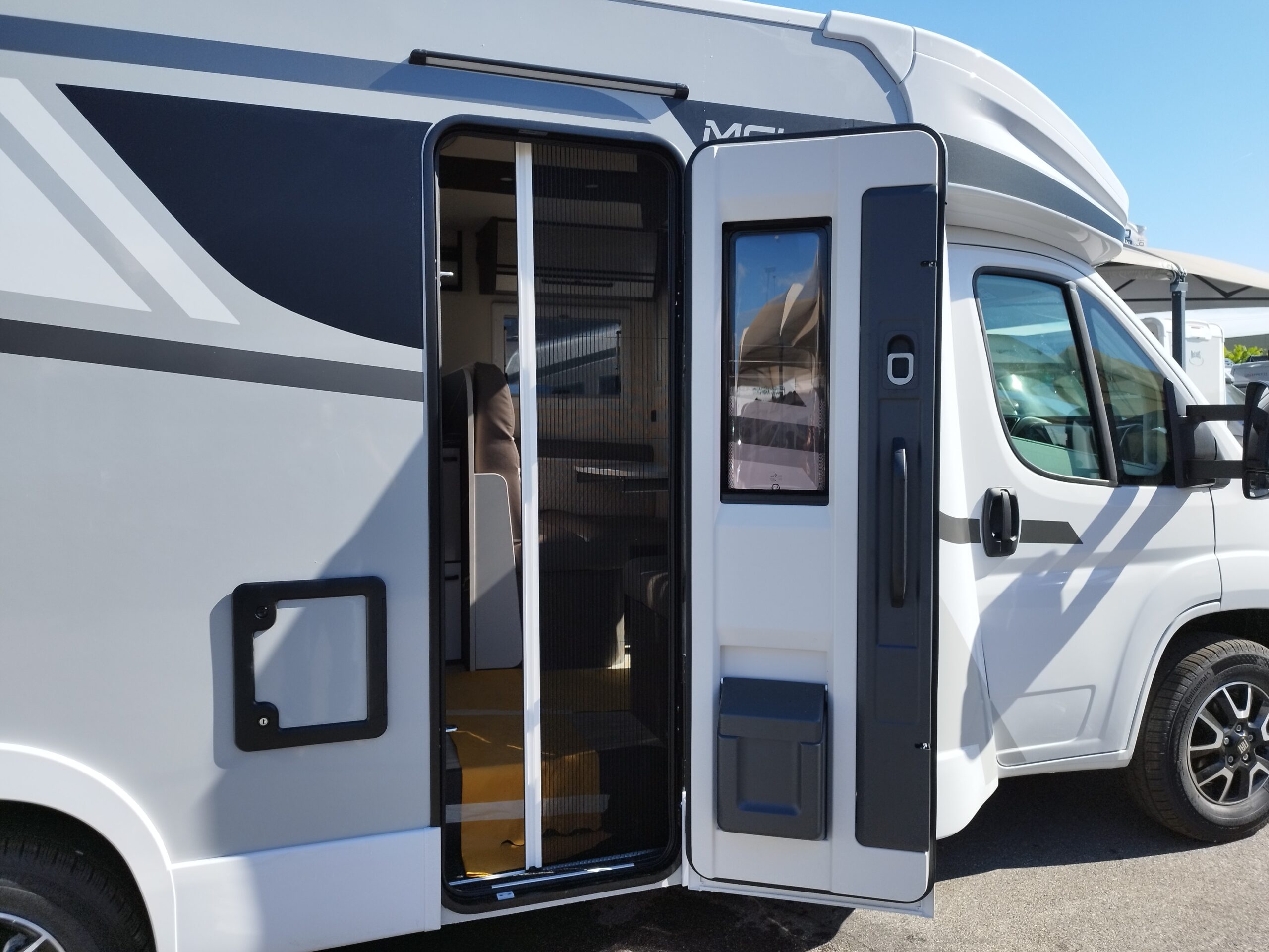 - PACK SERIE 800 : Fendinebbia, Paraurti anteriore in tinta con la carrozzeria, Piastra paramotore nera, Cerchi in lega bicolore da 16″, Volante e pomello del cambio in pelle, Cruscotto Techno, TPMS – Controllo automatico della pressione degli pneumatici, Freno a mano elettrico, Porta XL con 2 punti di chiusura, con finestra e chiusura centralizzata, Oscuranti cabina plissettati, Braccio supporto TV, Skyroof anteriore, Coprisedili cabina, Pannello solare da 200W con regolatore MPPT >>>> PROMO GRATIS