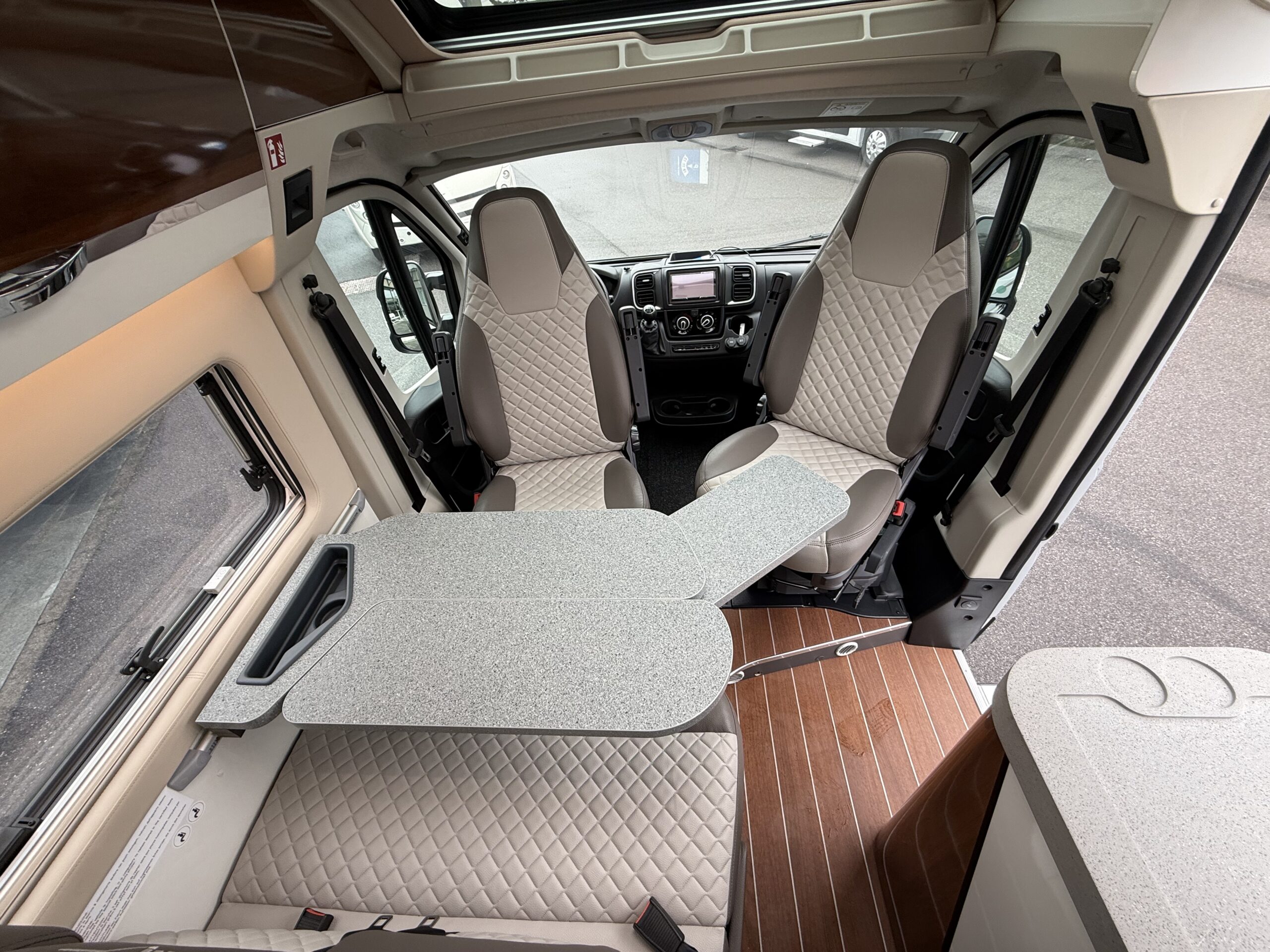 Fiat Ducato 2.200 cc Multijet III 140cv – EURO 6D Final con AdBlue – Colorazione esterna expedition grey – Cerchi in lega con pneumatici da 16″ – Doppio airbag – Clima cabina – ABS – ASR – ESP – Traction + – Hill Holder – Hill Descendt control – Cornice fari, mascherina e Skid plate neri – Luci diurne a LED – Volante e pomello cambio in pelle – Cruscotto con finitura Techno – Fari fendinebbia – Comandi radio al volante – Oscuranti Remis cabina – Star & Stop – Cruise control e limitatore di velocità – Sedili cabina regolabili, con piastre girevoli, braccioli e in tinta – Sensori di parcheggio posteriori – Impianto con radio doppio DIN con interfaccia Apple Carplay/Android Auto – Retrocamera posteriore