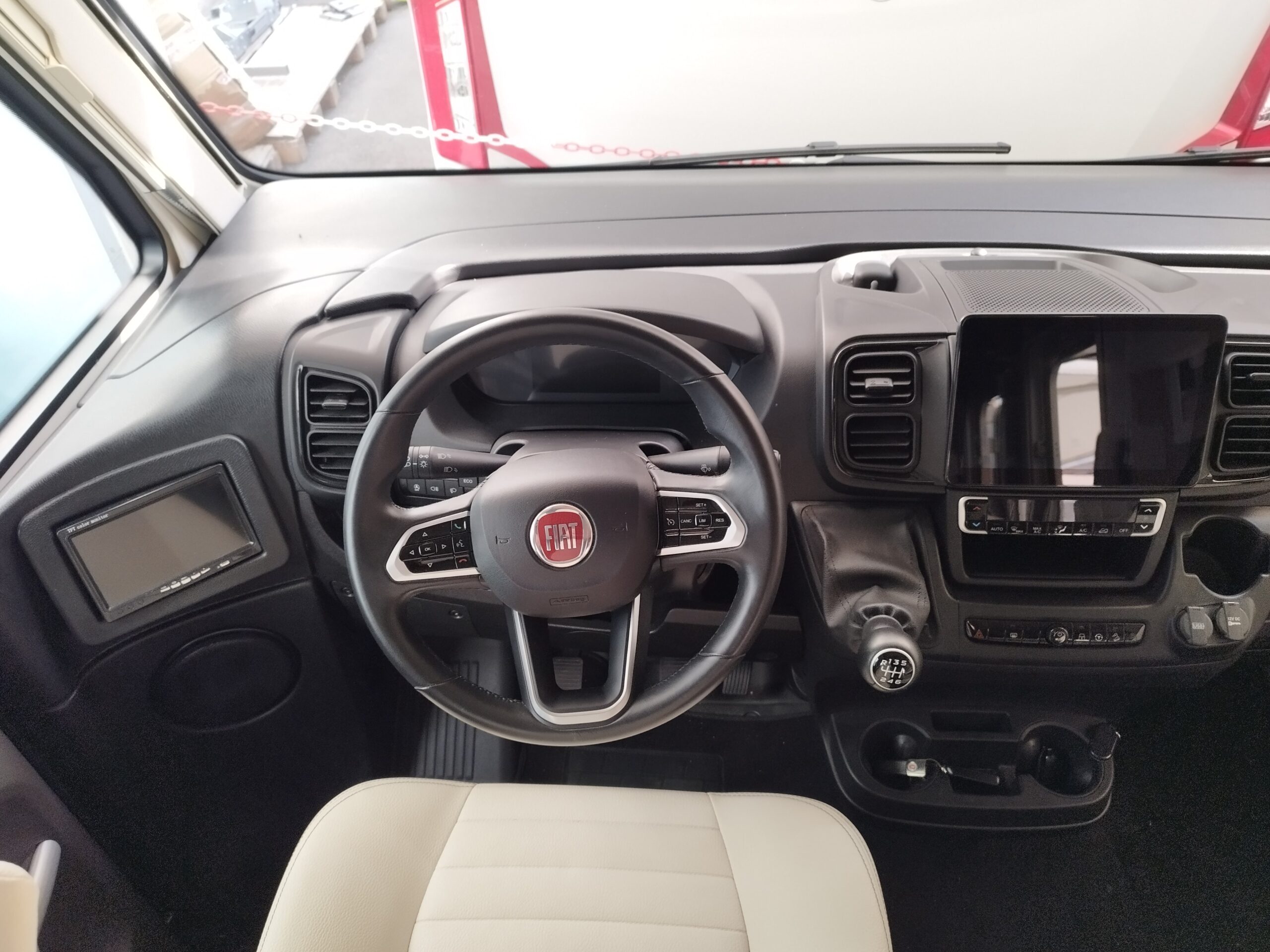 Fiat Ducato AL-KO Light 2.200 cc Multijet III 160 cv con AdBlue – EURO 6D Final – Clima automatico – Doppio airbag – Retrocamera bioculare con monitor a lato cruscotto – Sistema Multimediale Fiat con monitor da 10” con navigatore satellitare con calcolo itinerari per autocaravan/bluetooth/Apple Carplay/ Android Auto – Comandi radio al volante – Cerchi in lega con pneumatici da 16″ – ABS – ASR – ESP – TRACTION + – HILL HOLDER – HILL DESCENDT CONTROL – Cruise control e limitatore di velocità – Sedili cabina regolabili, con piastre girevoli, braccioli e in tinta – Oscuranti plissettati per parabrezza e laterali – Cruscotto Full Digital –