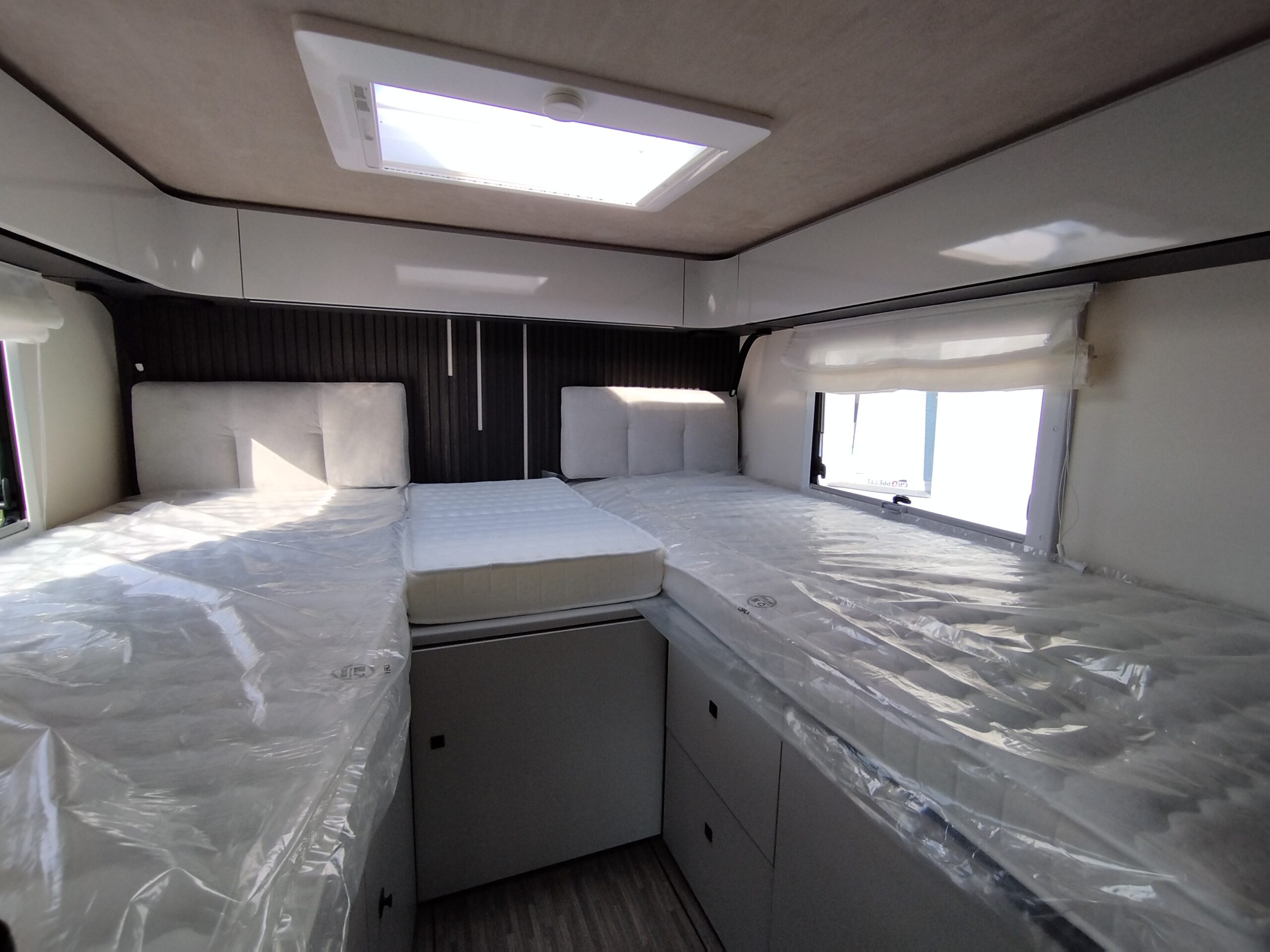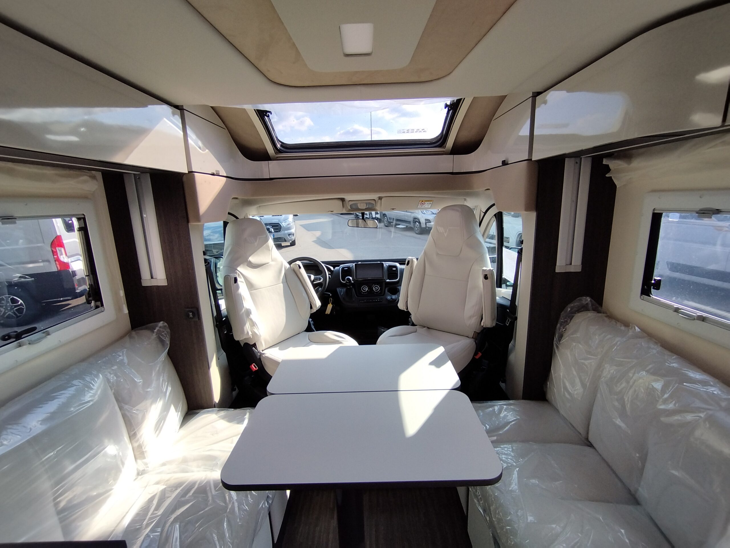 10 anni di garanzia impermeabilità – Clima cabina – Regolatore di velocità e limitatore di velocità – Hill Holder – Traction + e Hill Descendt Control – ABS – ASR – ESC – Cerchi in lega con pneumatici da 16″ – Airbag lato guidatore e passeggero – Oscuranti plissettati Remis in cabina – Chiusura centralizzata porte cabina e porta cellula – Porta cellula con finestra, pattumiera e chiusura centralizzata – Braccio porta TV – Oblò Heki zona letto posteriore – Pannello comandi digitale INET X – Stufa Truma Combi 6000 con alimentazione a gas – Frigorifero 174lt a compressore – Predisposizione autoradio con altoparlanti in cabina – Vaso espansione per pompa acqua – Bandelle laterali in ABS – Serbatoio acqua potabile da 120 lt – Serbatoio acque di recupero da 110lt – Winter pack con riscaldamento serbatoi – Prese USB – Top cucina in pietra acrilica – Coprilavello cucina – Cestello cucina estraibile – Tavolo con gamba centrale e struttura a libro apribile – Sedili cabina in coordinato con la tappezzeria interna – Predisposizione pannello solare e antenna TV/TV SAT – Luce esterna a led XL – Luce gavone a led – Struttura con completa assenza di legno all’interno di tetto/pareti e pavimenti – Parete esterna ed interna in vetroresina – Oblò Sky Roof su cupolino – Isolamento soft Touch su parte interna del tetto – Materassi in memory foam – Bandella esterna apribile con gavone – Finestre a filo carrozzeria Seitz