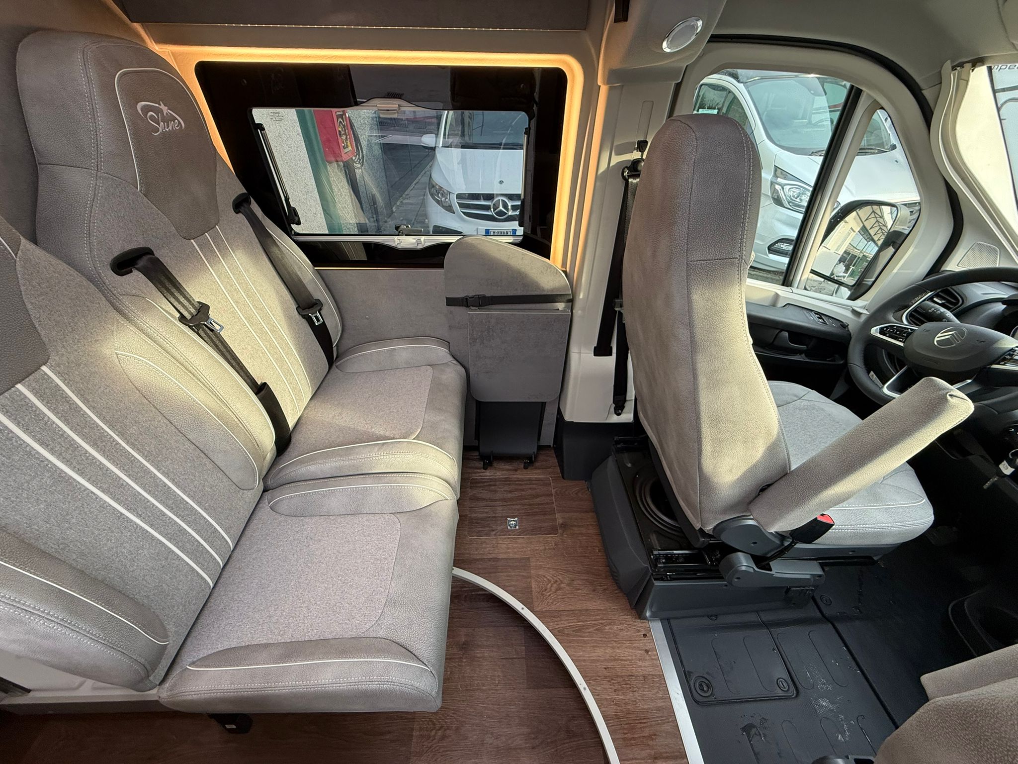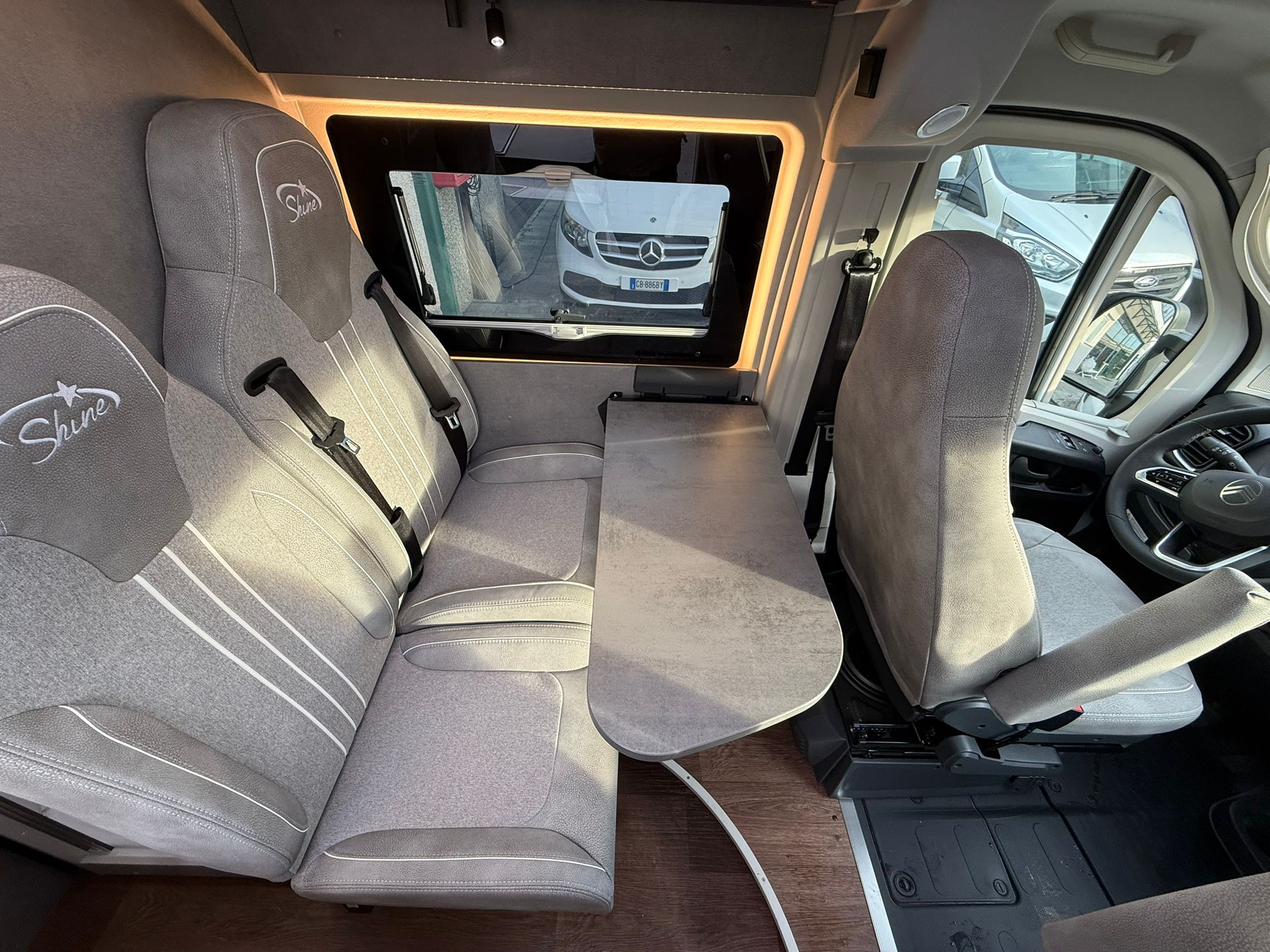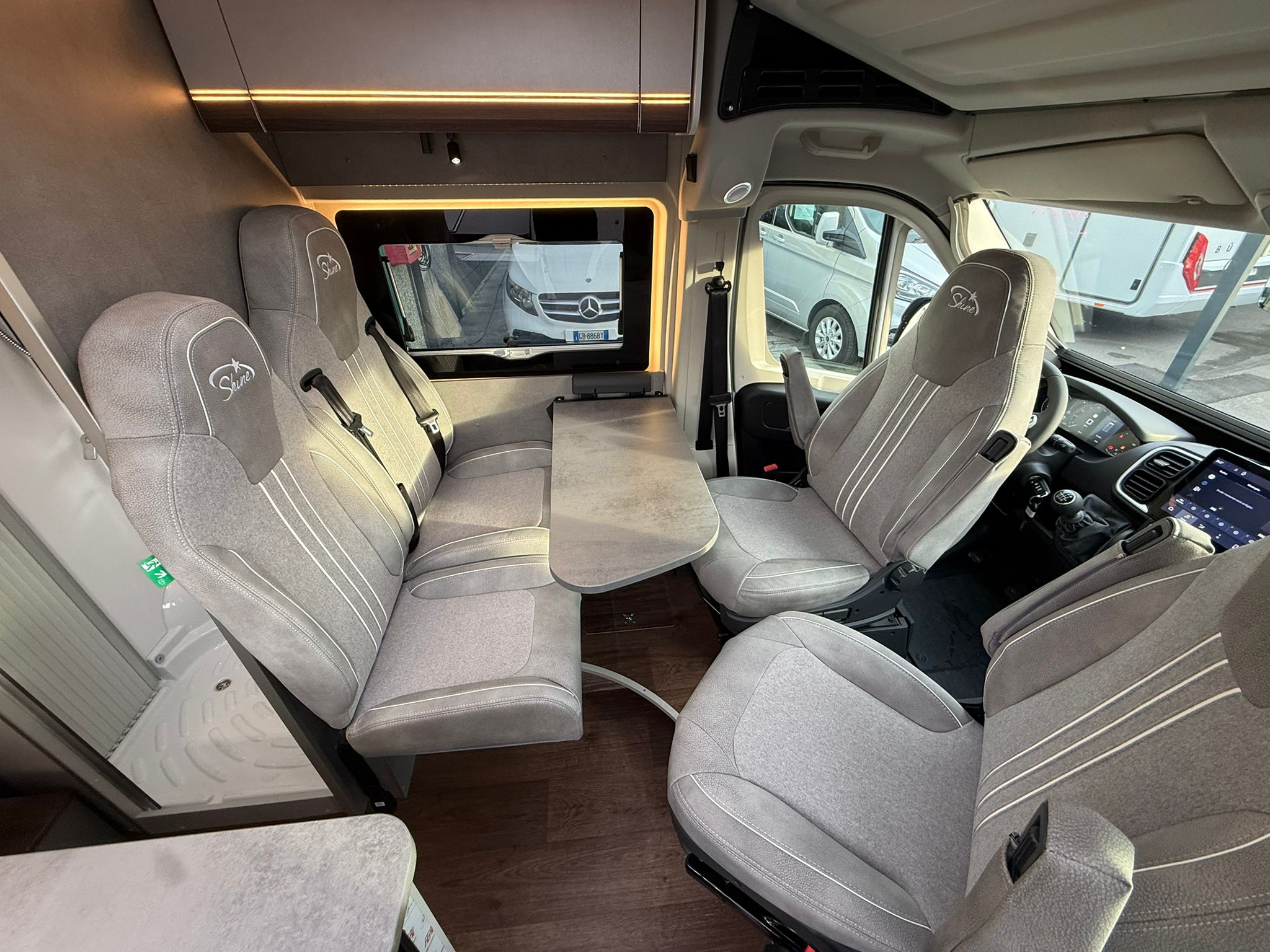 Telaio 35 q.li – serbatoio gasolio 75 lt. – cerchi in lega 15″- ruota di scorta – sedile passeggero regolabile in altezza – oscuranti remis in cabina – doppio airbag – clima cabina manuale – volante in pelle – luci diurne a led – predisp. radio con casse audio – coprisedili cabina come dinette – specchi elettrici riscaldati – tappezzeria speciale silver – cruise control – traction plus – hill descent – strumenti cruscotto cromati – booster di ricarica 25 Ah – Sensore pressione pneumatici – Fari automatici – Sensore pioggia – Antenna DAB integrata – Finestre Seitz S4 con oscurante e zanzariera – Finestra supplementare laterale