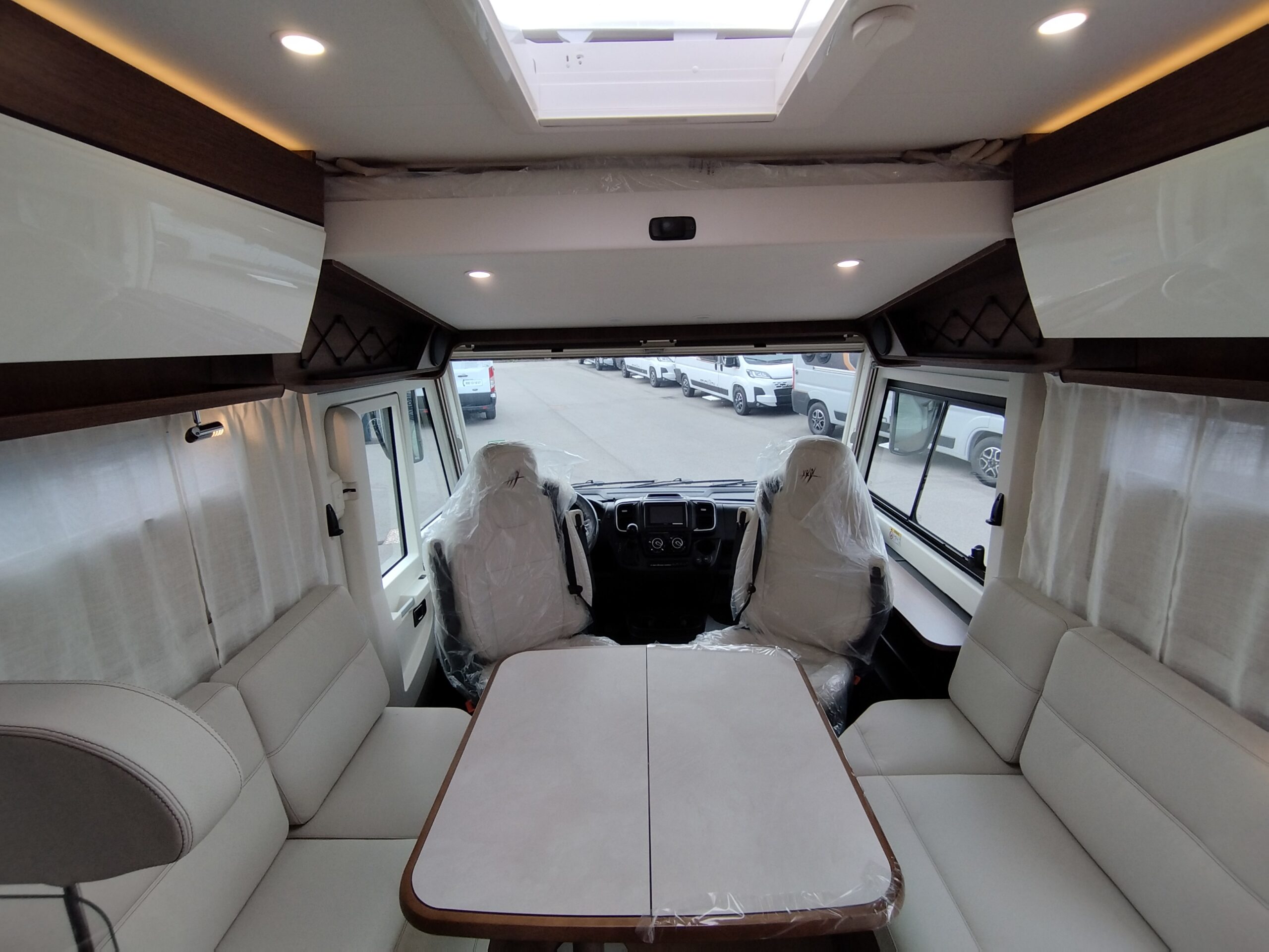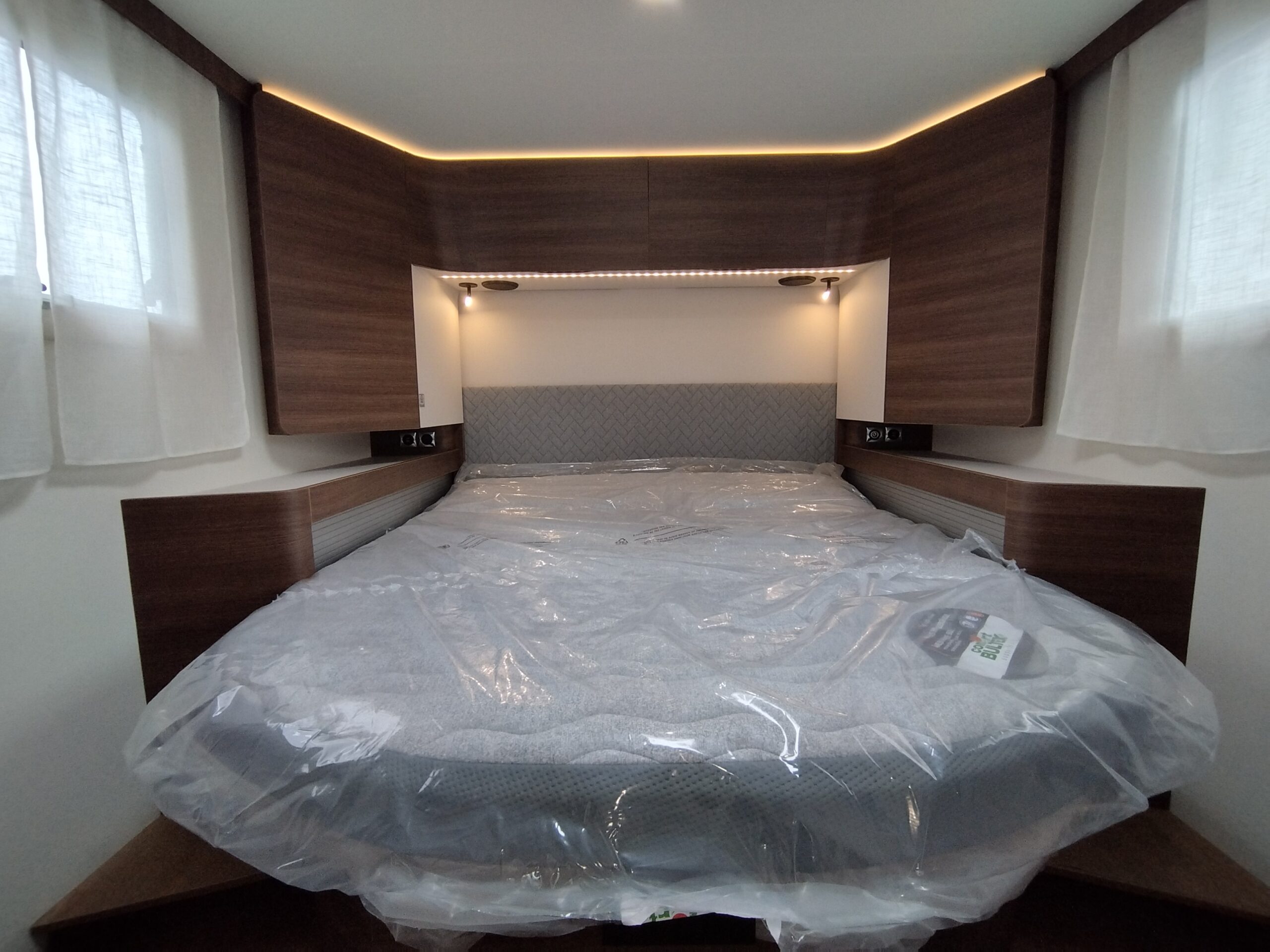 Air bag conducente e passeggero – climatizzatore cabina manuale – Porta conducente con alzacristallo elettrico – Chiusura centralizzata cellula e conducente – Frontale a profilo ribassato per una migliore visibilità – Fari anteriori con luci a led diurne – Fari posteriori a led – Gradino elettrico accesso cellula – Barra di illuminazione a led soffitto gavone – 100% poliestere tetto, pareti e sottoscocca – isolamento in Styrofoam – Riscaldamrento combinato TRUMA COMBI 6 a gas ed elettrico con comando del riscaldamento con InetX – Sistema anticollisione gas – illuminazione dell’ambiente 100% a led – Nuovo rivestimento in laminato su piano di lavoro cucina e tavolo salotto – cucina con cassetti con chiusura a richiamo e bloccaggio centralizzato – Predisposizione per doppia batteria servizi – Caricabatterie predisposti per batterie al litio – mobile TV con staffa per flatscreen LCD 32″ – Letto centrale XXL con misure da 160 cm x 196 cm – Rete letto retrattile – Letto centrale regolabile elettricamente in altezza – Letto basculante a 2 posti con doghe – Serbatoio acqua potabile da 140 lt (20 lt per la condizione di marcia) – Serbatoio acque di recupero da 90 lt – Frigorifero da 156 lt con AES (selettore della miglior fonte di energia) – Vano porta bombole per 2 bombole da 11kg