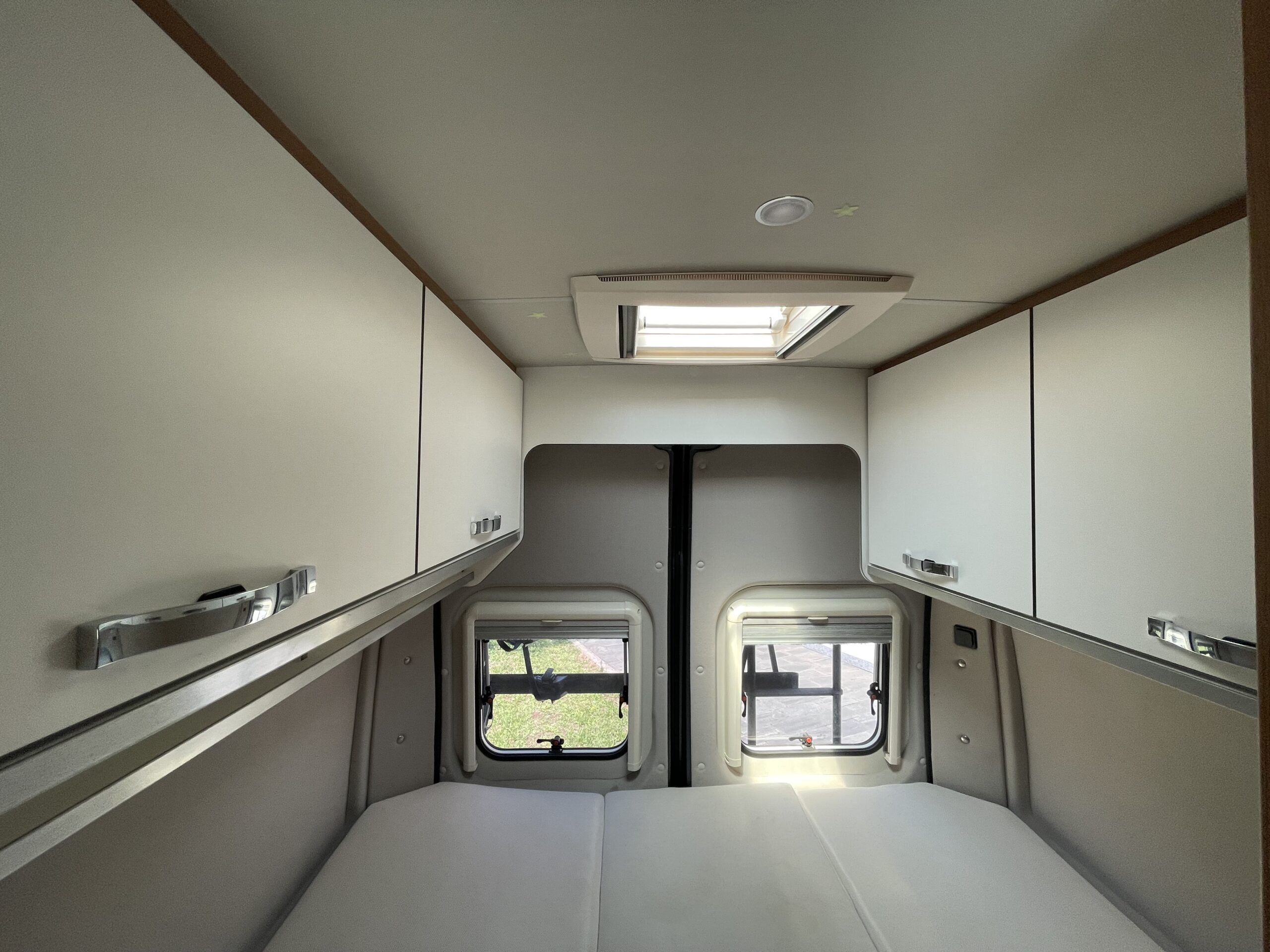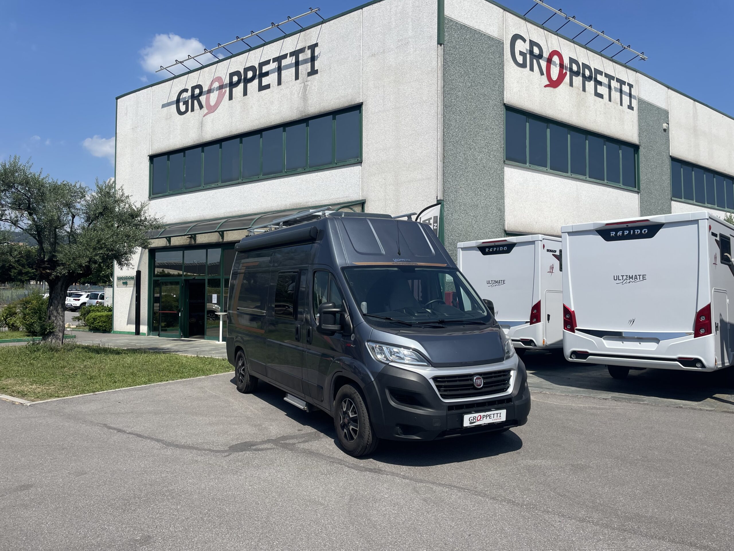 Clima cabina, ABS – ASR – ESP – Doppio Airbag, Vetri e specchietti elettrici, Chiusura centralizzata, Pomello e volante in pelle con comandi radio, Cruise control e limitatore di velocità , Cerchi in lega 16″, Oscuranti plissettati Remis, Sedili girevoli