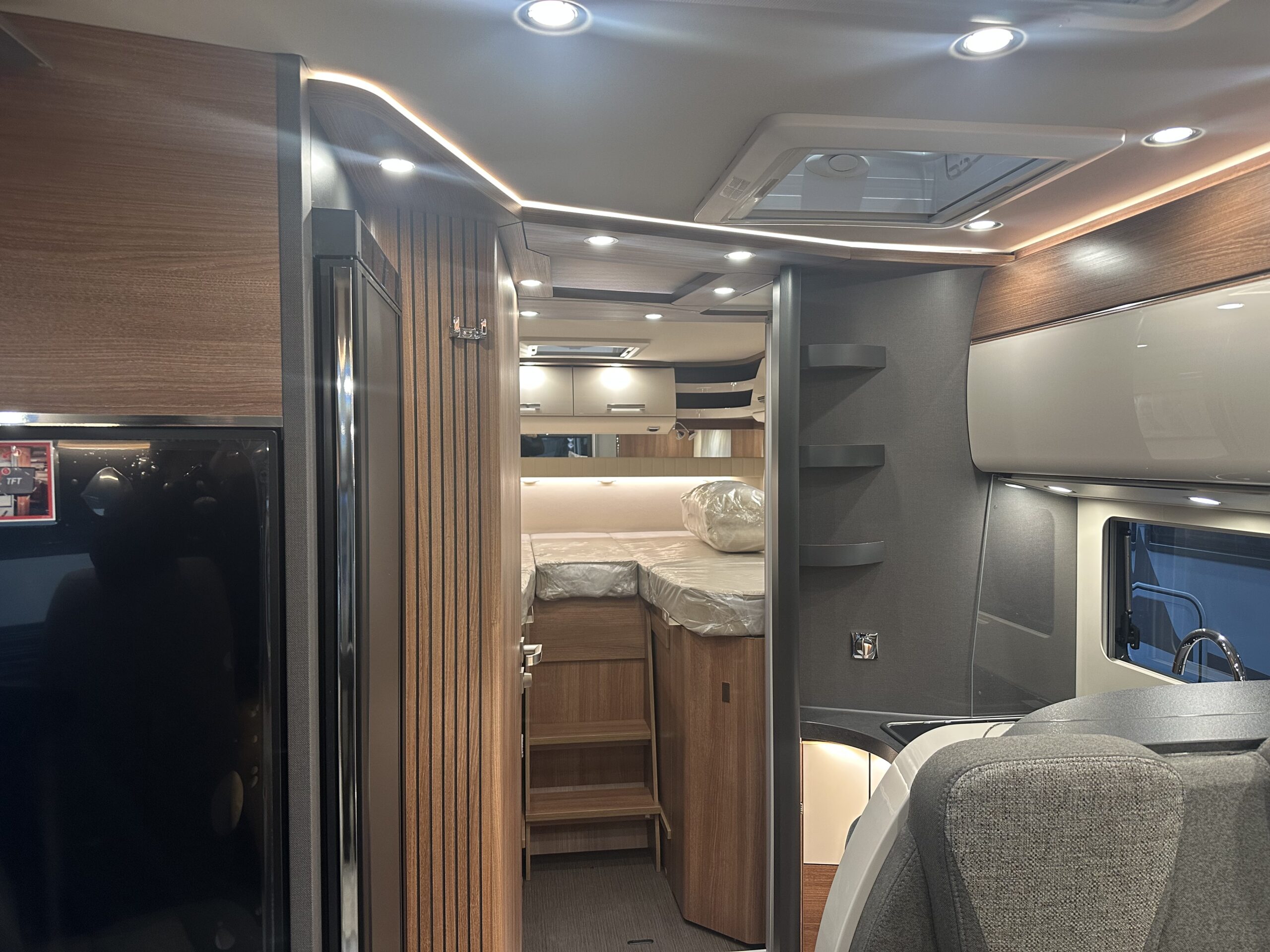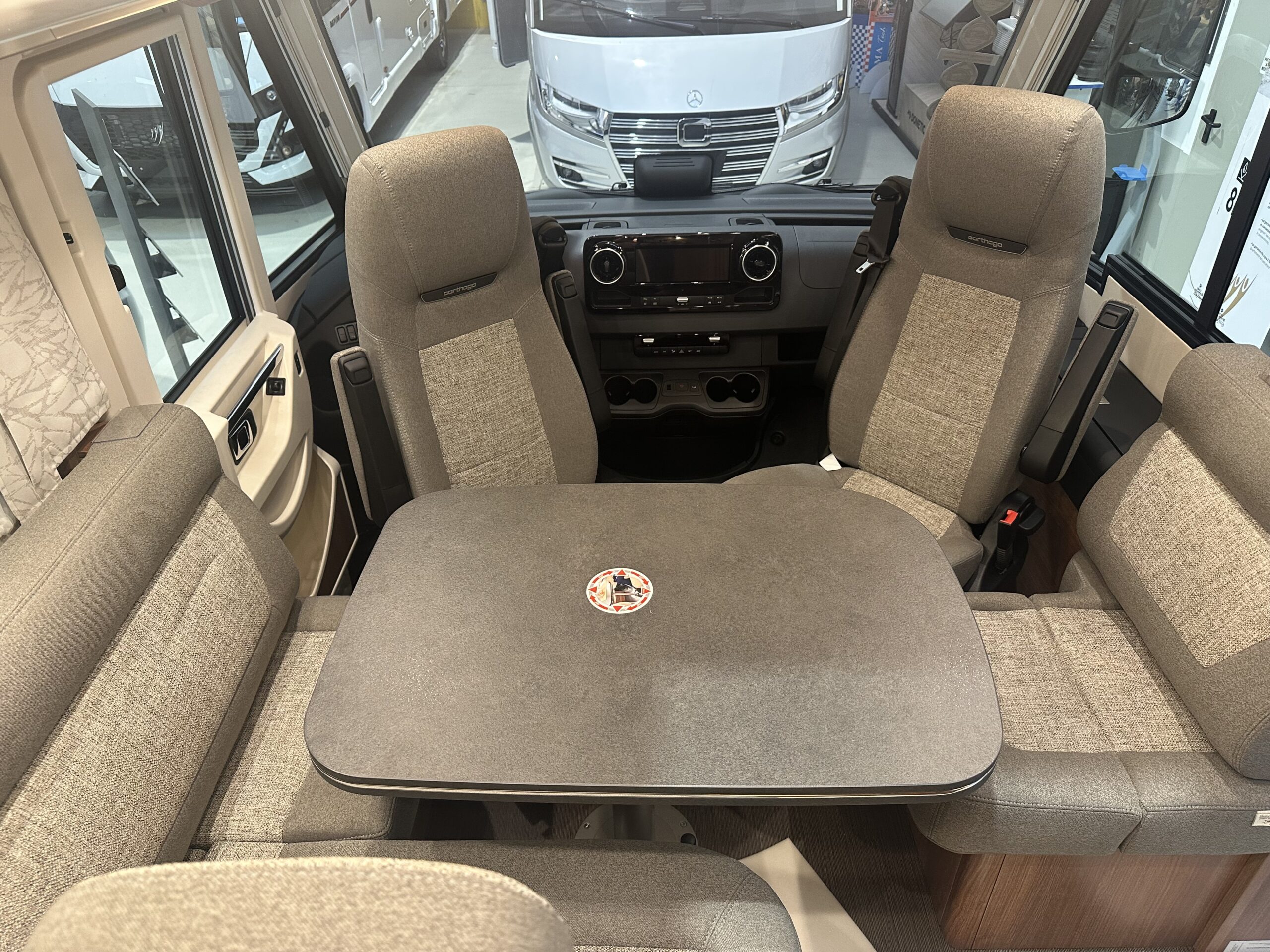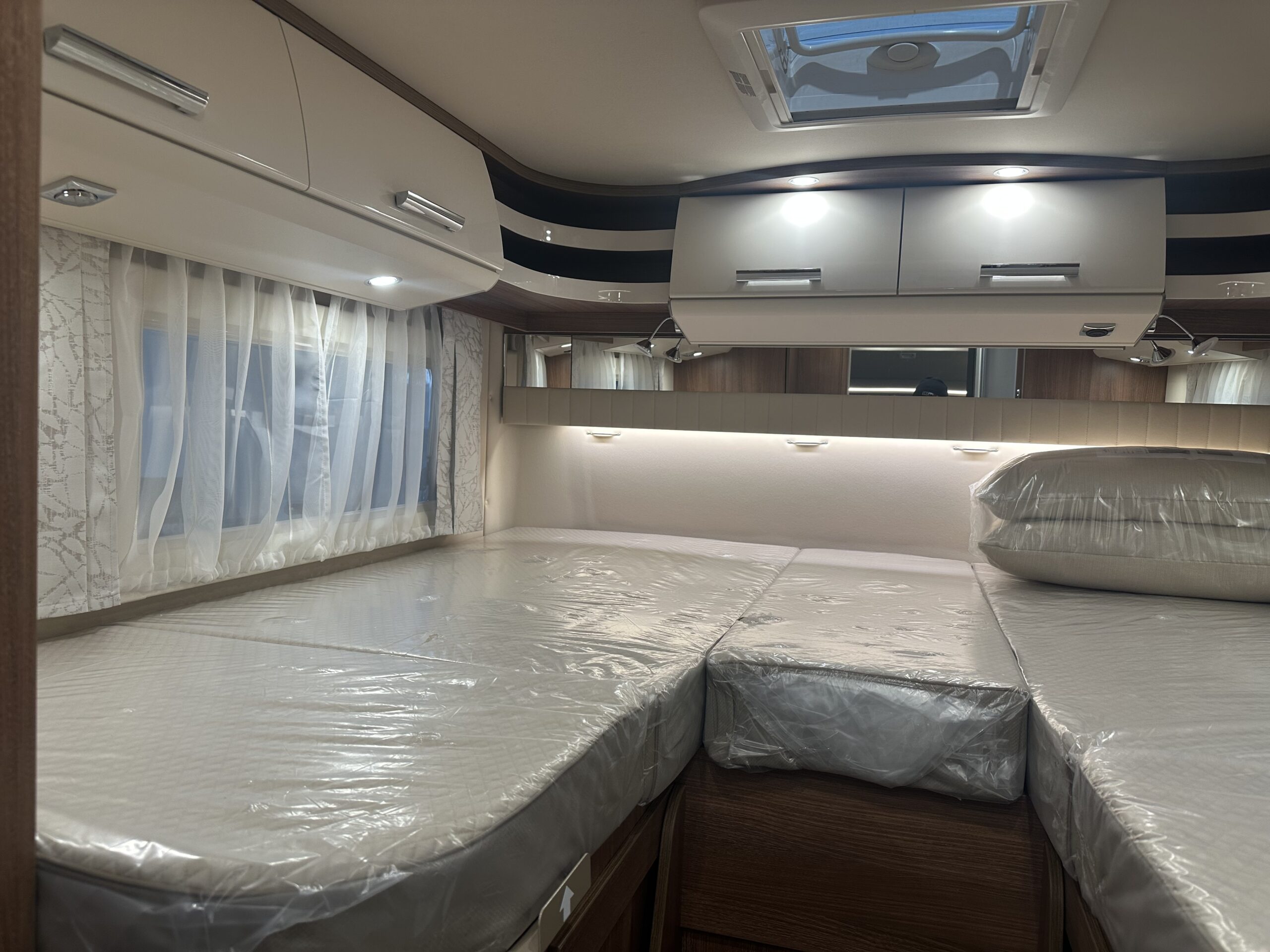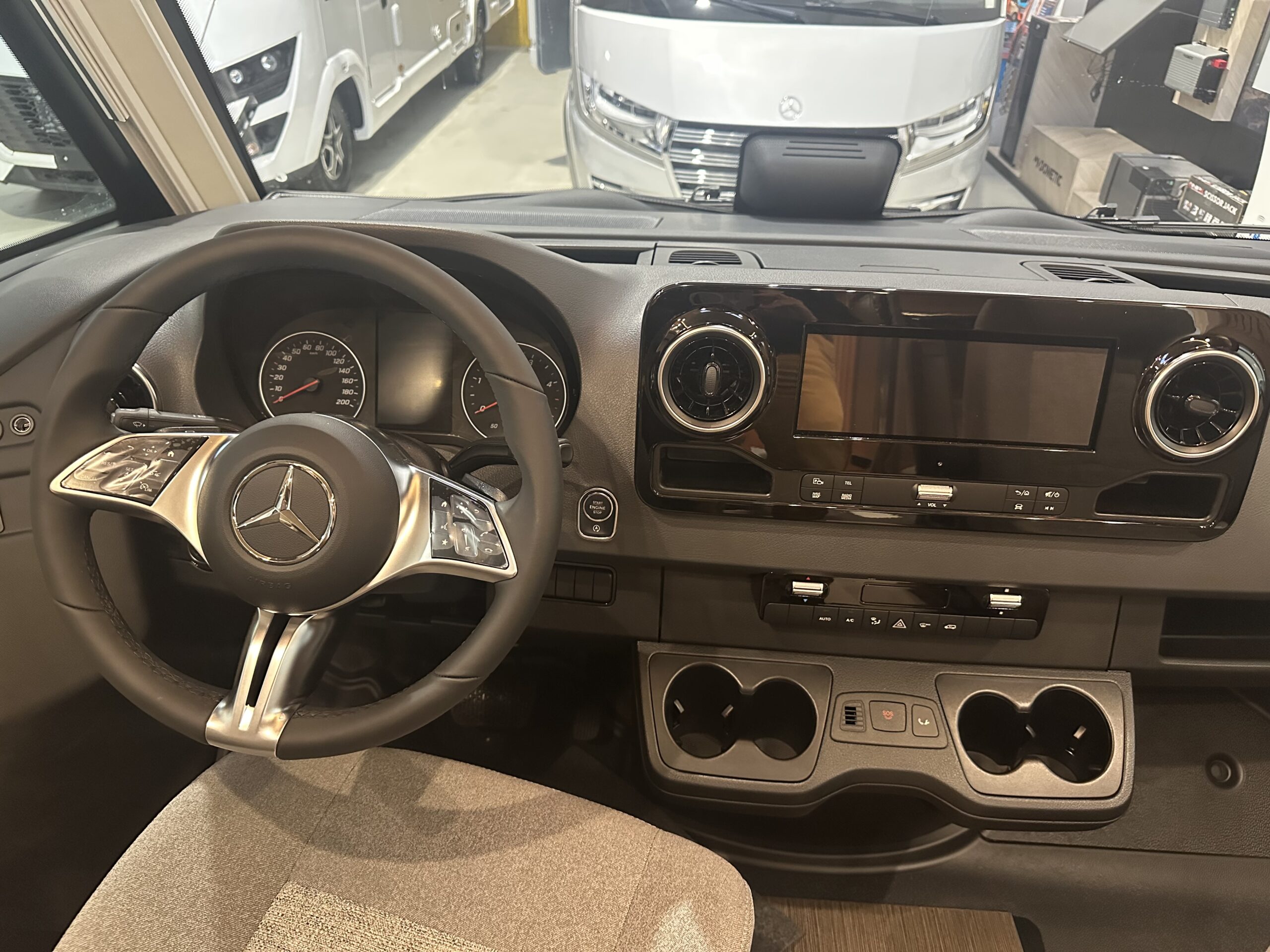 – PACCHETTO BASE PLUS MB € 12.625,00 : Oblò Midi Heki su gruppo sedute – Presa USB nel pensile sopra il letto posteriore – Sensore pioggia – Volante in pelle con tasti multifunzione – Assale anteriore con portata superiore – Predisposizione radio con antenna sul tetto e DAB+, altoparlanti (4 x) – Porta cellula con zanzariera a rullo – Booster di ricarica – MBUX 10,2″³ Multimedia con navigatore / DAB+ – Assistente alla segnaletica stradale – Freno di stazionamento elettrico – Ampia porta del garage lato guida – Strumento combinato con display a colori – SOG toilette – batteria al litio da 90 Ah –