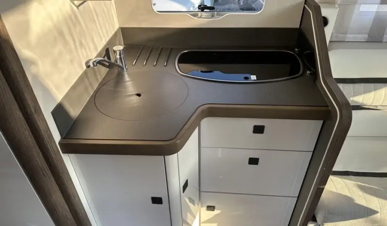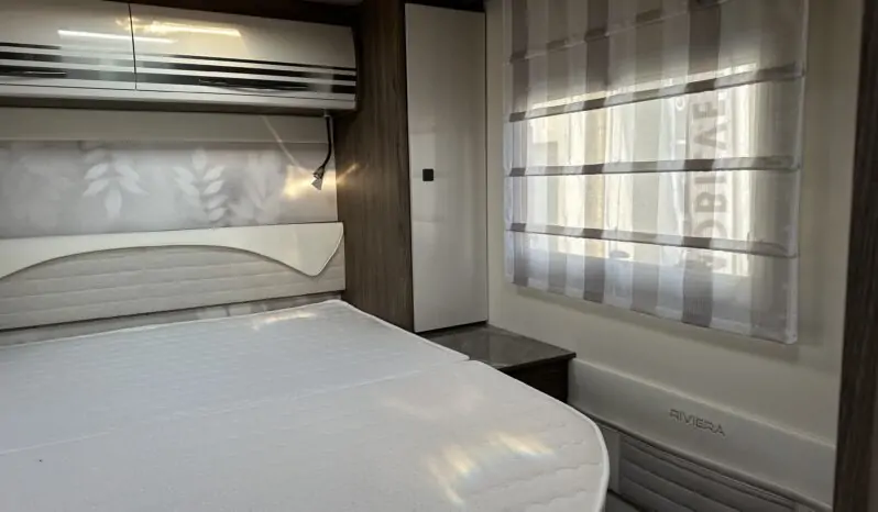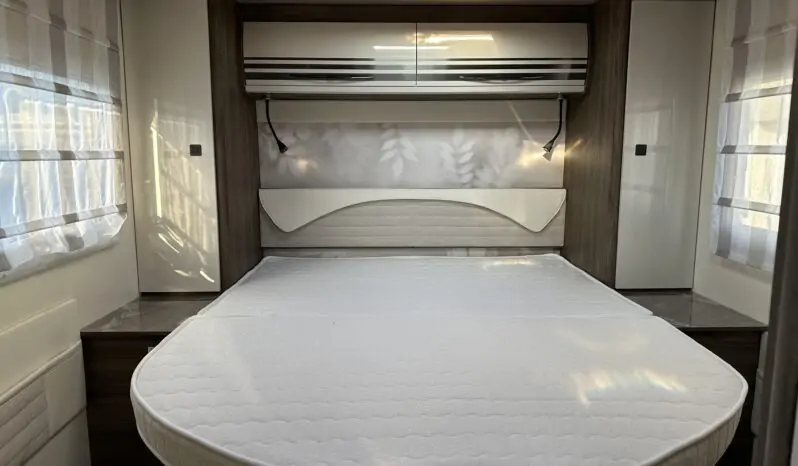 Oblò Skyroof su cupolino – Truma panel X – Casse audio posteriori – Stacca batterie servizi – Presa USB doppia aggiuntiva zona dinette – Rivestimento soft touch interno del tetto –