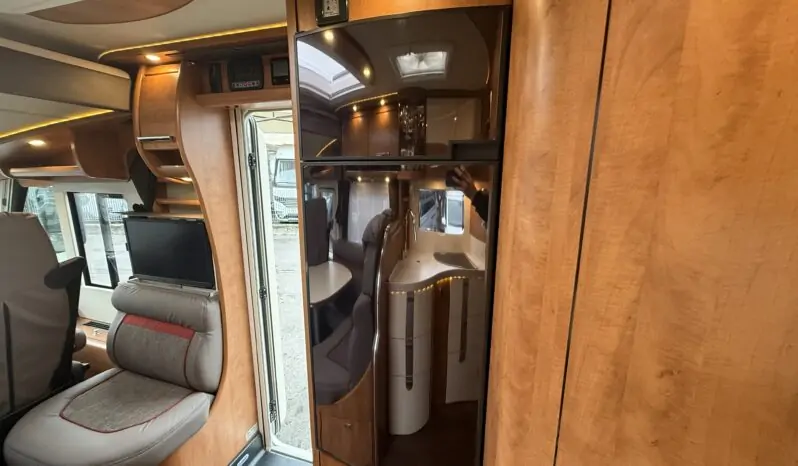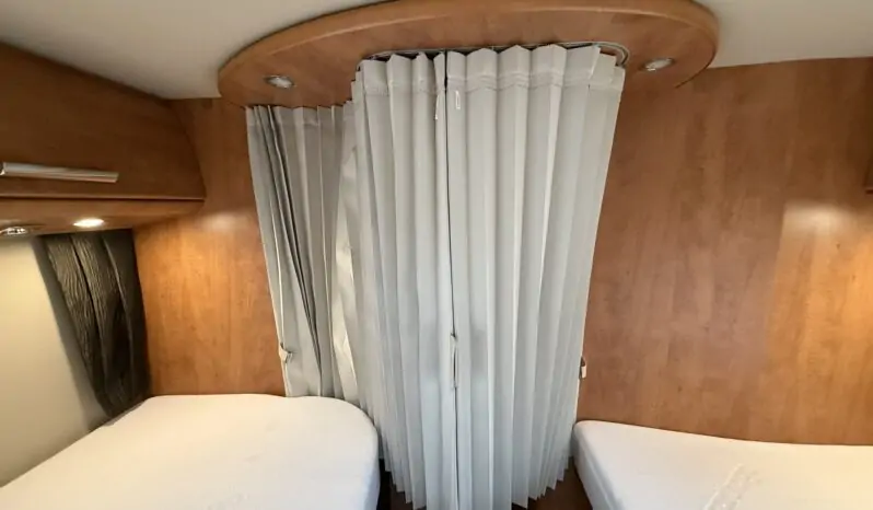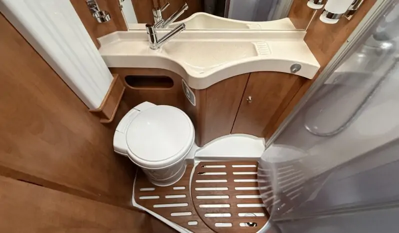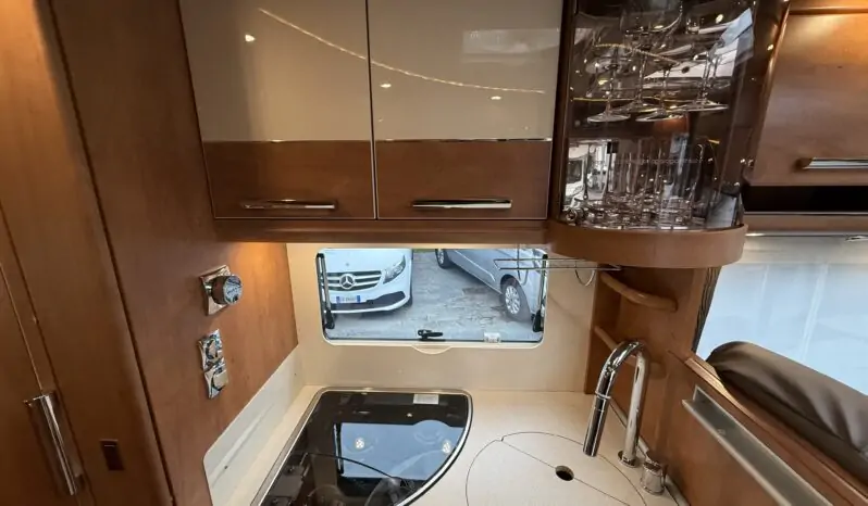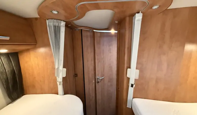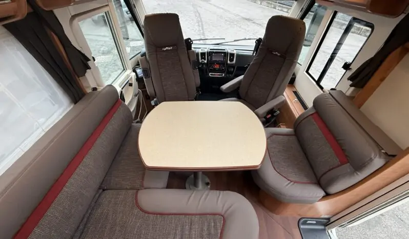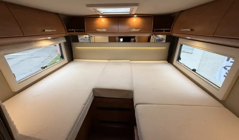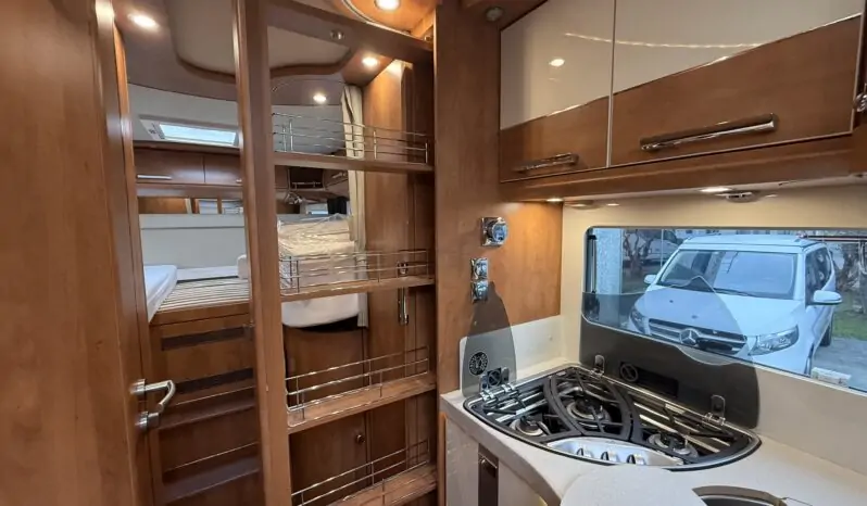 Ampia porta garage lato guidatore – Doppio pavimento passante – Upgrade garage con rivestimento pareti interne in feltro agugliato – Maxi oblò Heki in dinette – Vetrinetta bar con set bicchieri zona cucina – Comando CP Plus x Truma Combi – Frigorifero grande a commutazione automatica – Porta cellula a 2 punti con finestra e chiusura centralizzata – Sali scendi per macchina caffè in cucina – Attacco esterno acqua calda/fredda – Zanzariera scorrevole porta cellula – Luce esterna – Oblò letto basculante – Triogas – Prolunga + cuscini per grande matrimoniale posteriore – Sistema Sog per cassetta WC – Stacca batterie servizi – Tappezzeria in similpelle e tessuto.