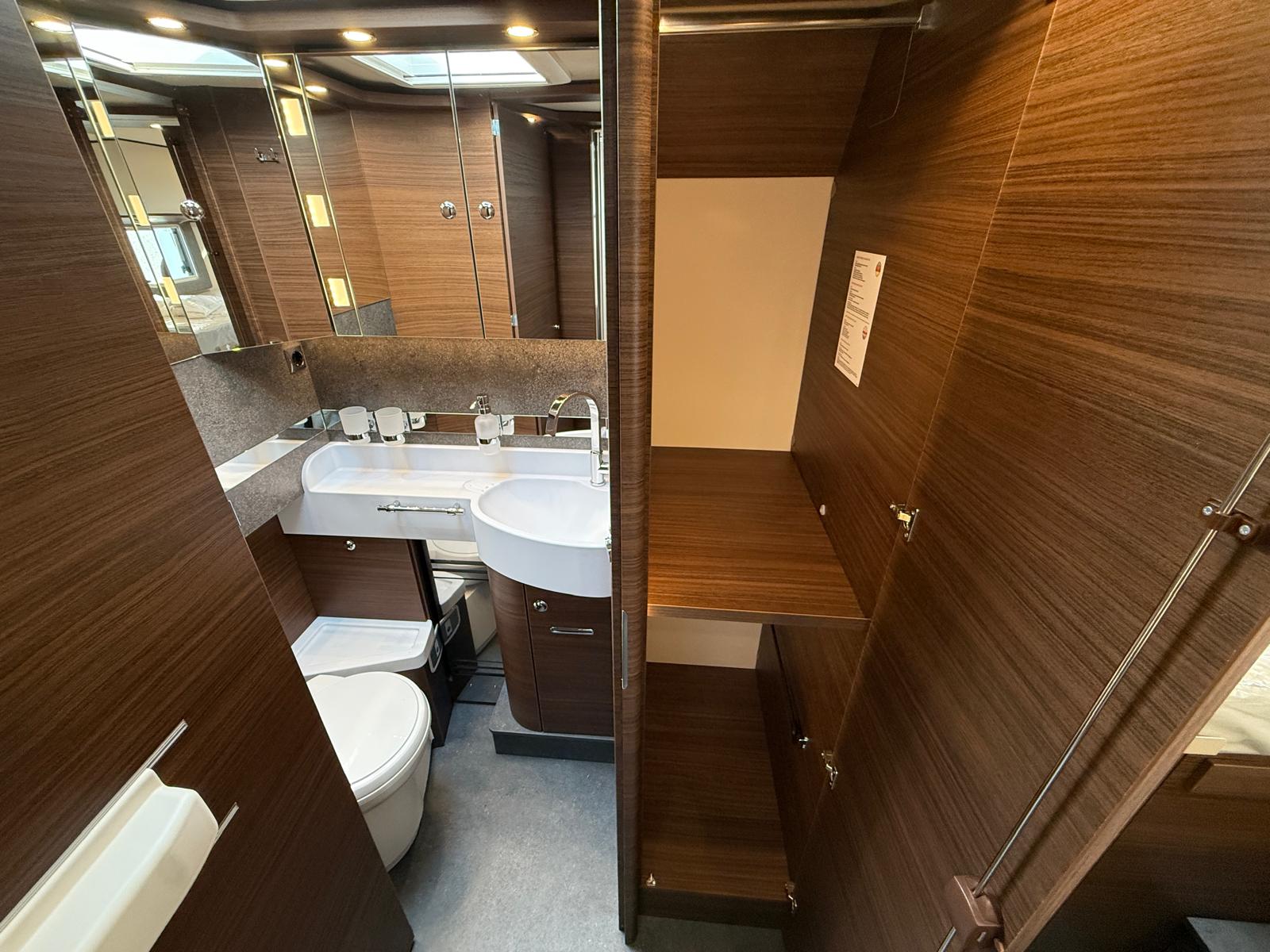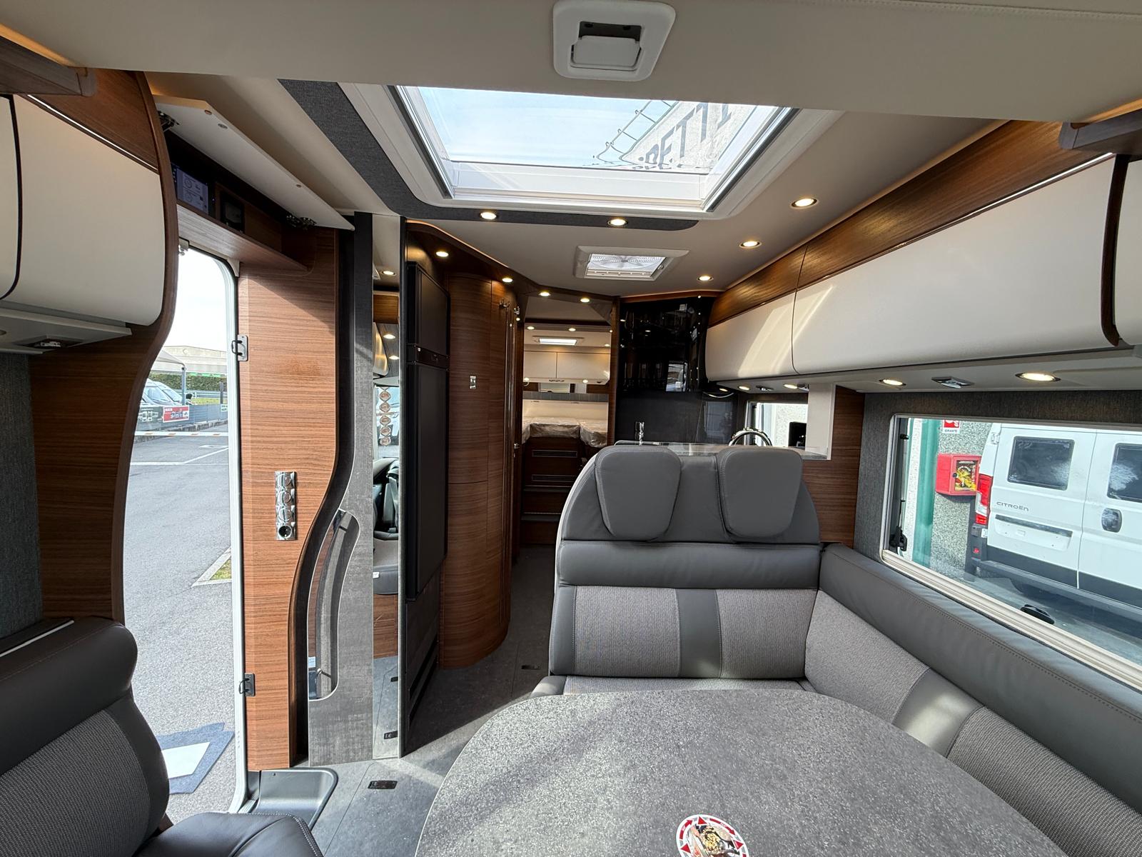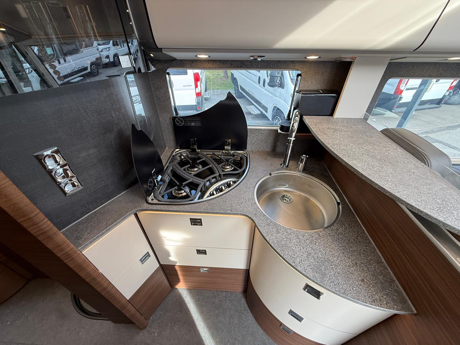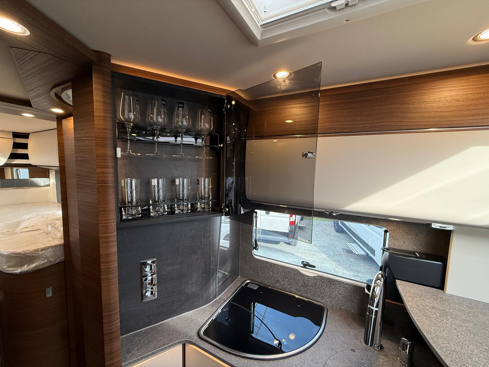 finestra e zanzariera avvolgibile, Predisposizione radio con antenna sul tetto e DAB+, altoparlanti, Ricezione DVB-T2, Mobile bar di design con porta bicchieri e set bicchieri sopra la cucina, Booster di ricarica, MBUX 10,2″ Multimedia con navigatore / DAB+, Truma DuoControl CS con sensore anti collisione e funzione Eis-Ex, Piedini di stazionamento posteriori a manovella per stabilizzare il veicolo da