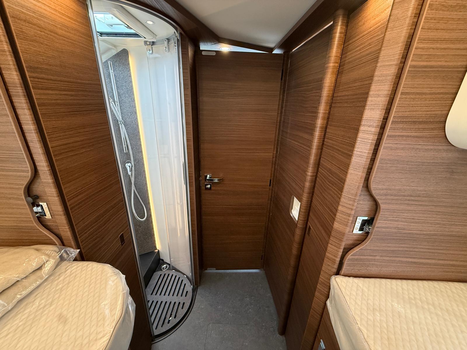 – PACCHETTO SUPER € 14.365,00 : Predisposizione impianto satellitare, Presa USB nel pensile sopra il letto posteriore, Upgrade garage per scooter con feltro agugliato, reti portabagagli, Areazione toilette SOG tramite camino sul tetto, Serbatoio carburante da 92 litri, Predisposizione retrocamera, Freno di stazionamento elettrico, Assistente alla segnaletica stradale, Strumento combinato con display a colori, Superfici delle sedute nella cabina guida regolabili in inclinazione e in altezza, Chiusura centralizzata per porta cellula e porta cabina con funzione coming home, Sensore pioggia, Specchietti in stile bus bicolore nero/bianco, Predisposizione dell’impianto solare, Volante in pelle con optional tasti multifunzione, Assale anteriore con portata superiore, Porta cellula XL “premium two 2.0” con doppia chiusura,
