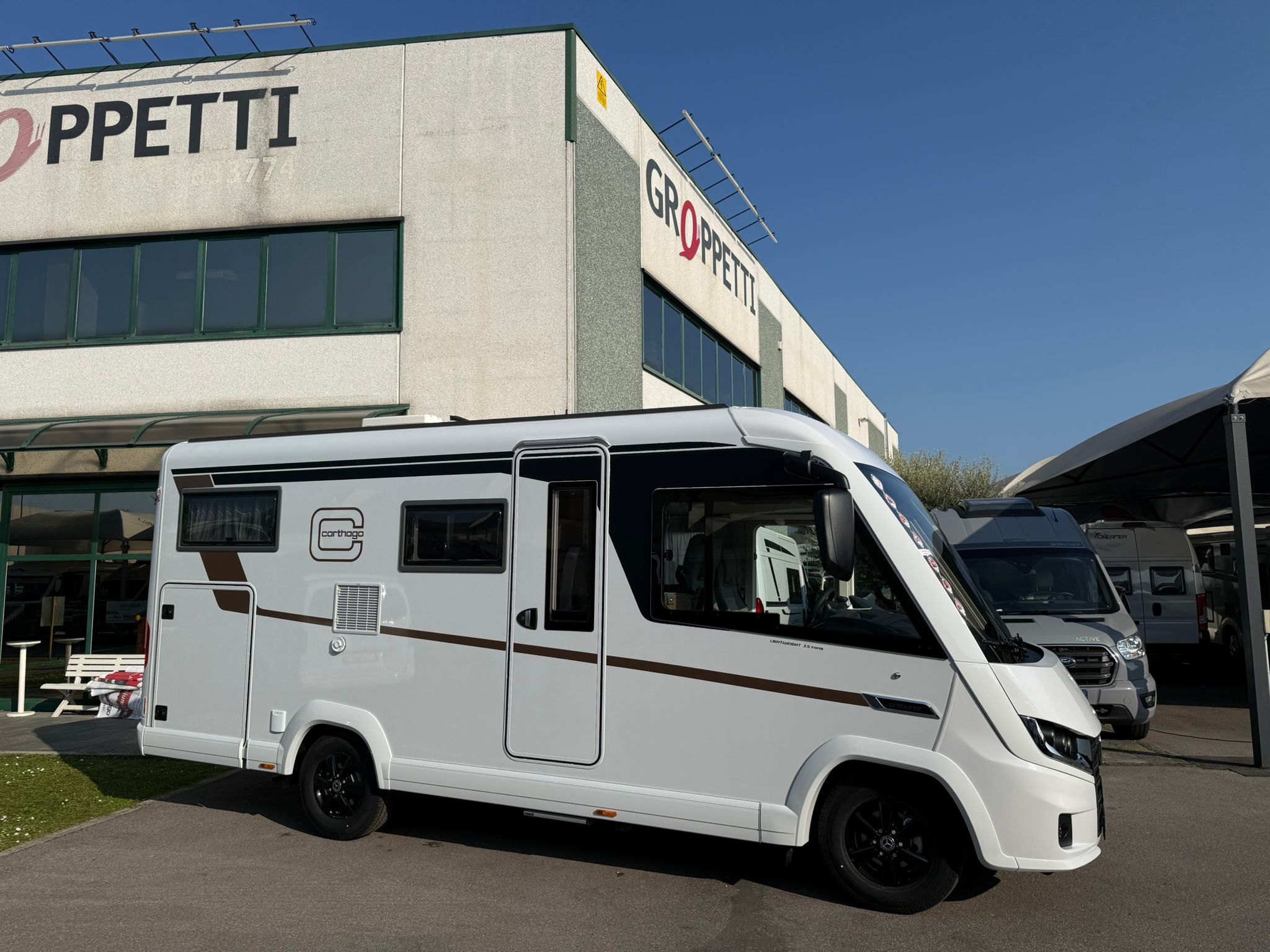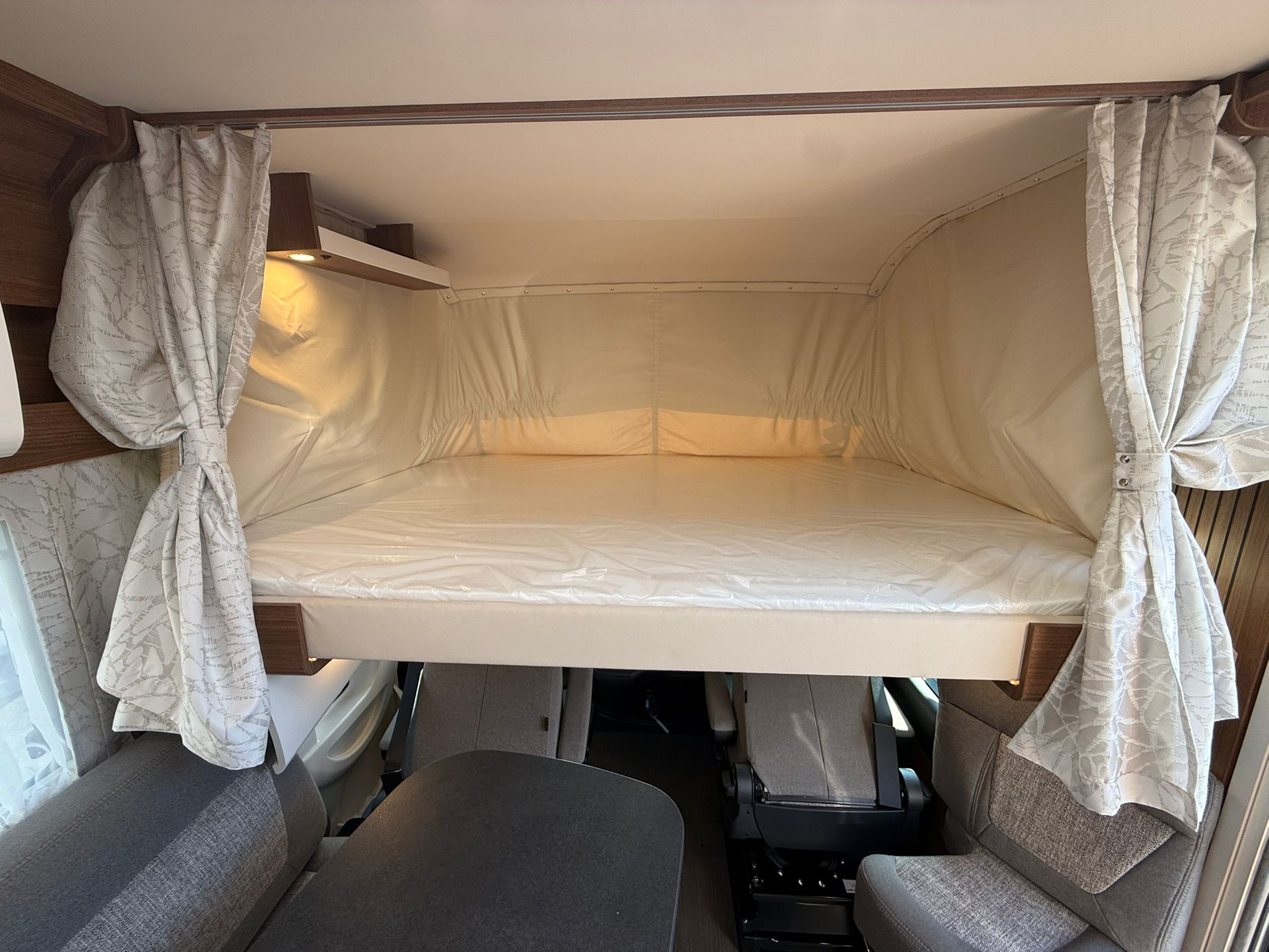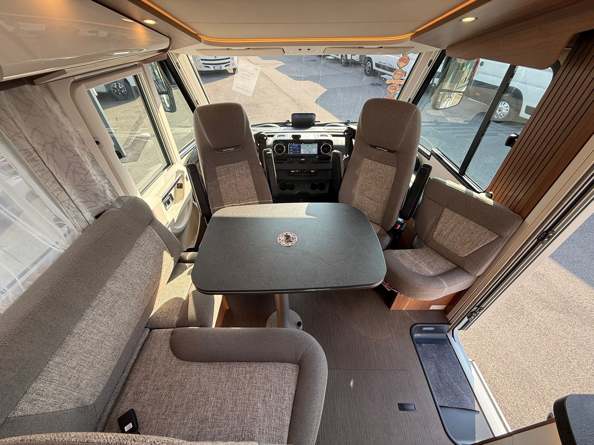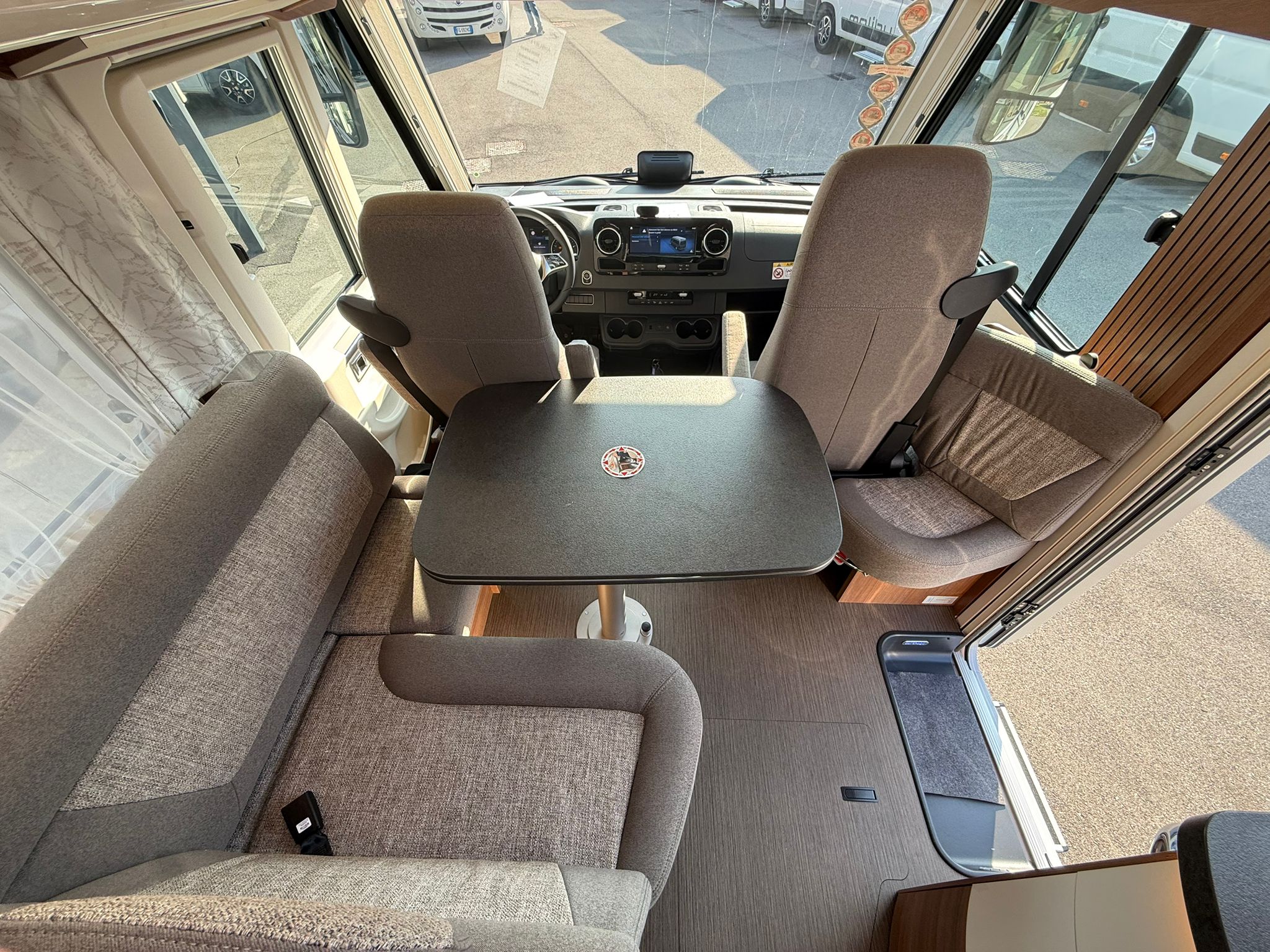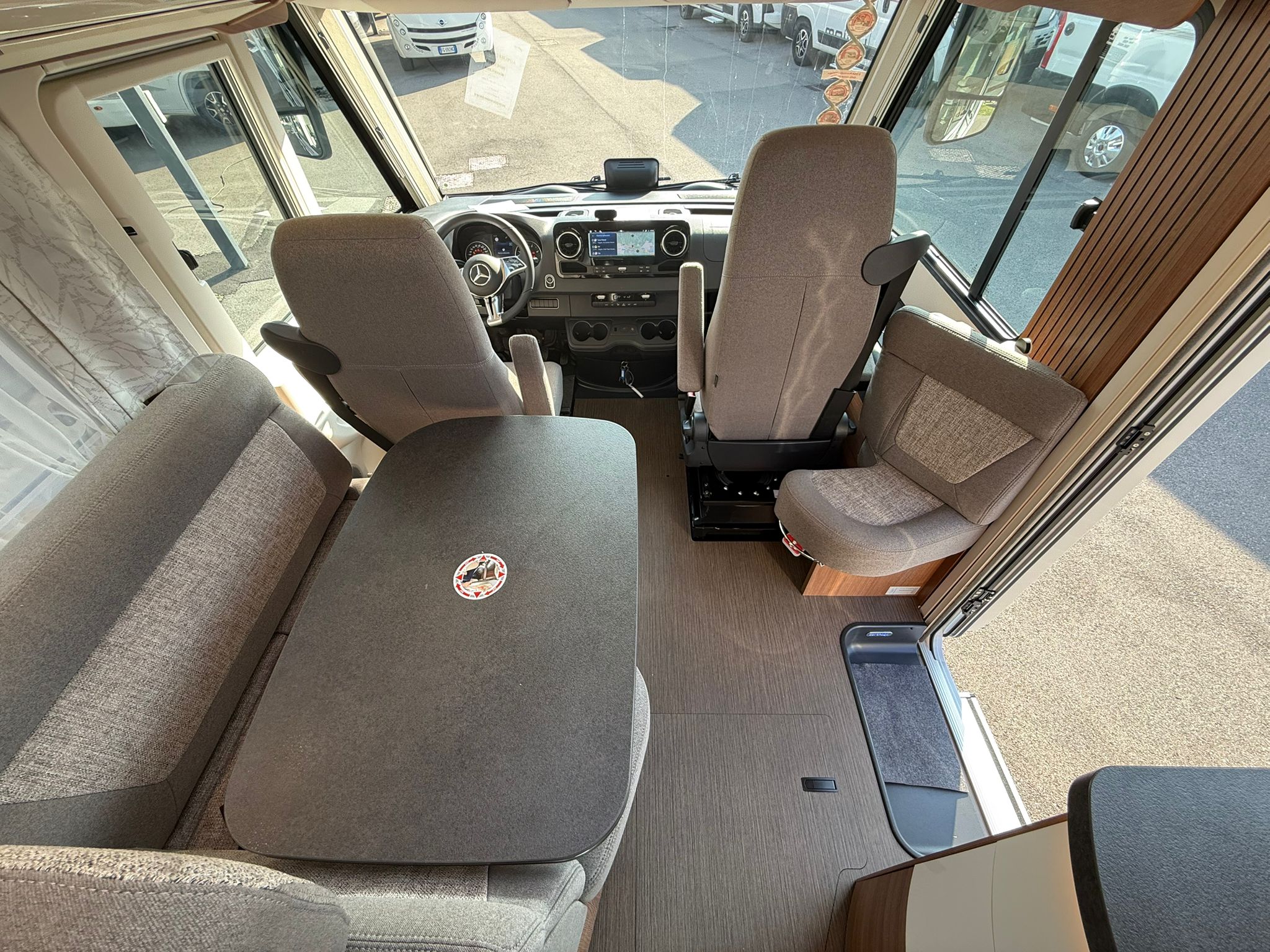 – PACCHETTO BASE PLUS € 12.625,00: Oblò Midi-Heki con faretti LED sopra il gruppo sedute a L, Presa USB nel pensile sopra il letto posteriore, Sensore pioggia, Borchie, Volante in pelle con tasti multifunzione, Assale anteriore con maggiore capacità di carico, Predisposizione radio con antenna sul tetto con DAB+, altoparlanti (4x) , Porta della cellula XL “premium two 2.0” (larghezza 63 cm) con doppia chiusura, tenda e zanzariera avvolgibile, Booster di ricarica, Sistema multimediale MBUX 10,2″ incl. navigatore e DAB+, Cruise Control, Strumento combinato con display a colori, Freno di stazionamento elettrico, Sistema di riconoscimento segnaletica stradale, Grande porta del garage per scooter sul lato guida, Batteria agli ioni di litio da 90 Ah, Areazione toilette SOG,