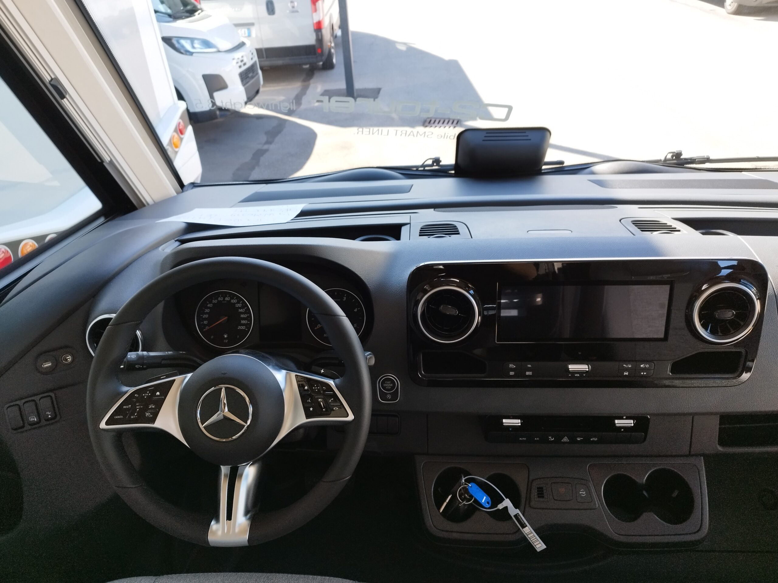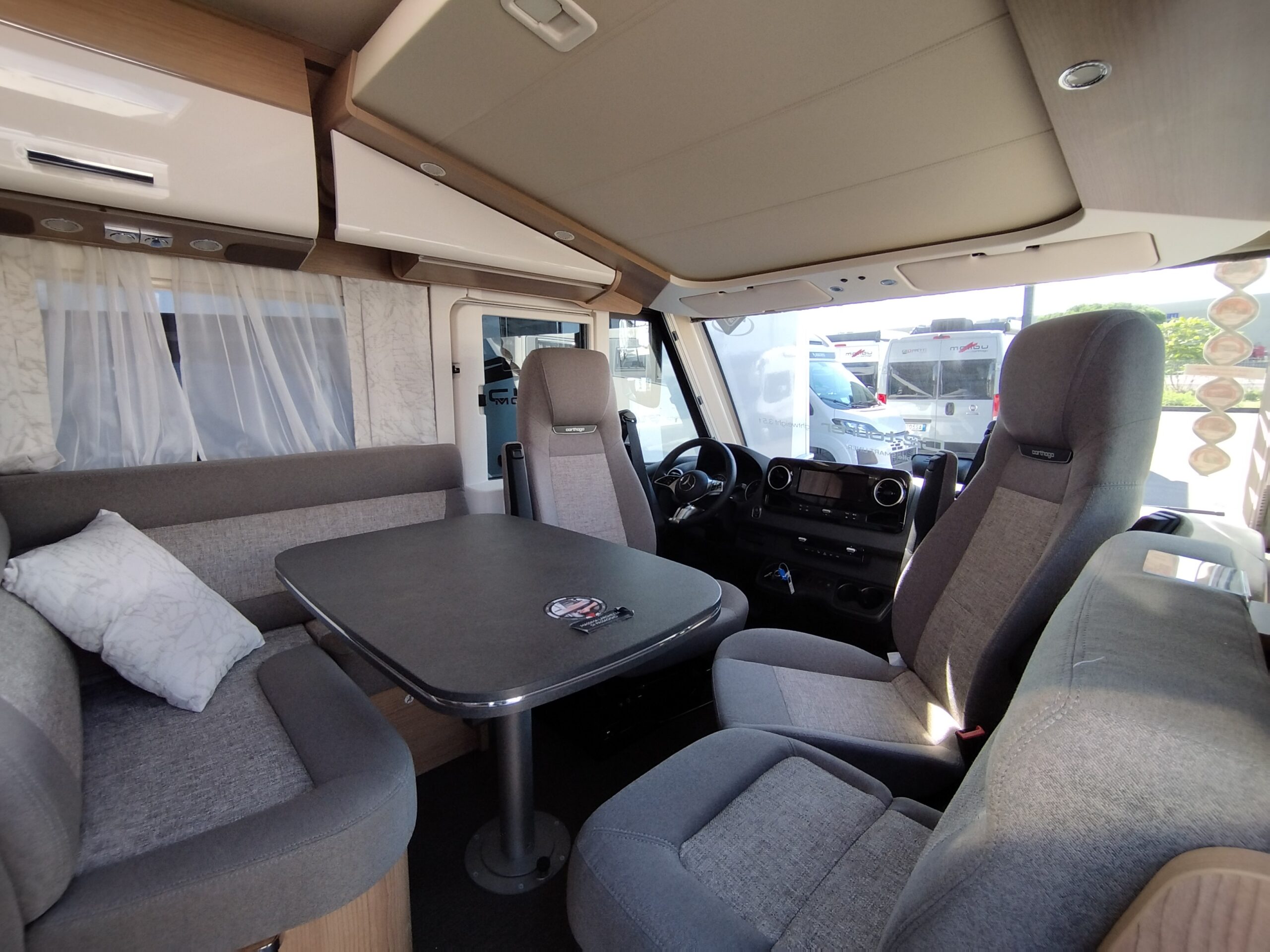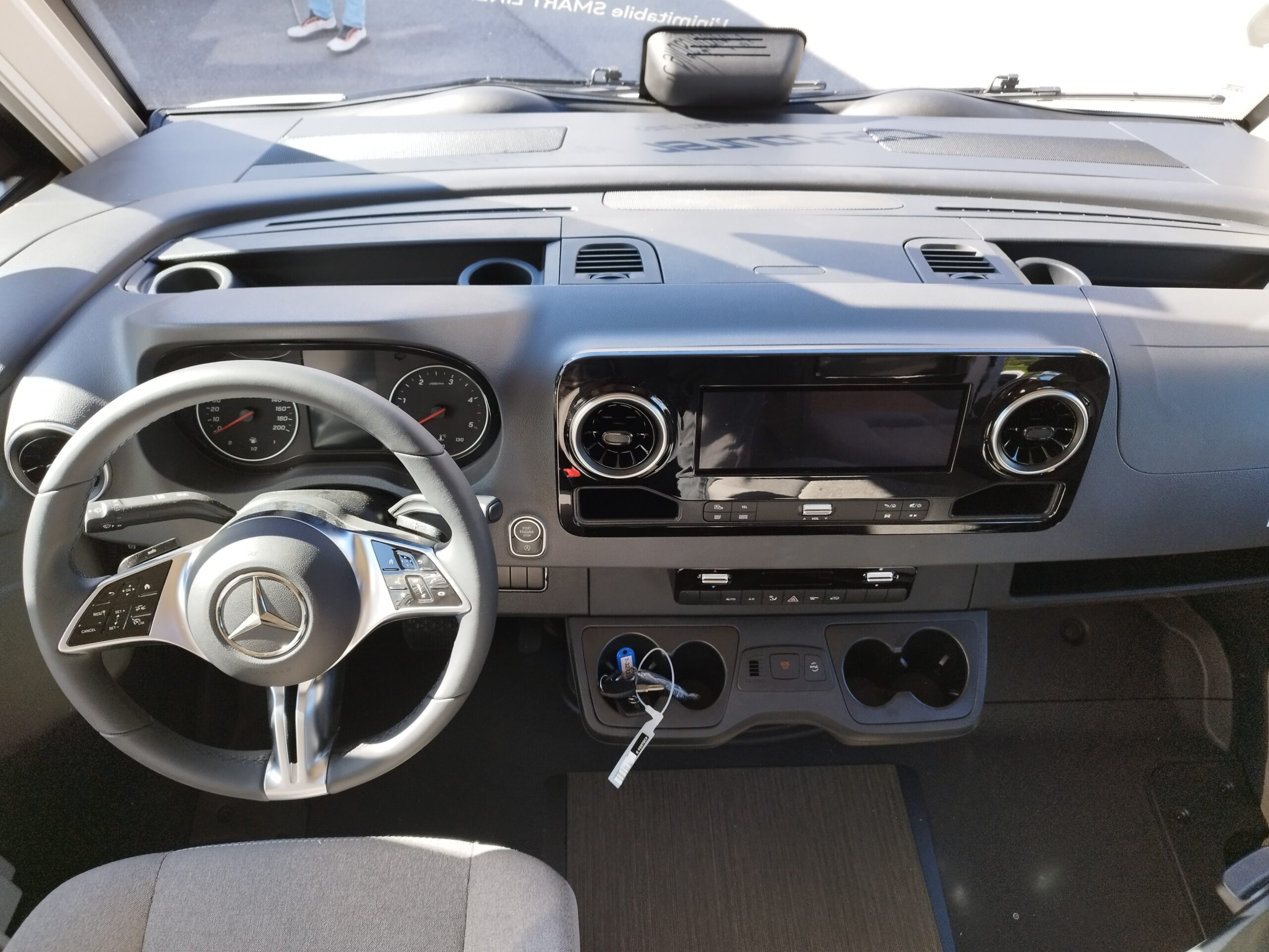 – PACCHETTO BASE PLUS MB € 12.625,00 : Oblò Midi Heki su gruppo sedute – Presa USB nel pensile sopra il letto posteriore – Sensore pioggia – Volante in pelle con tasti multifunzione – Assale anteriore con portata superiore – Predisposizione radio con antenna sul tetto e DAB+, altoparlanti (4 x) – Porta cellula con zanzariera a rullo – Booster di ricarica – MBUX 10,2″³ Multimedia con navigatore / DAB+ – Assistente alla segnaletica stradale – Freno di stazionamento elettrico – Ampia porta del garage lato guida – Strumento combinato con display a colori – SOG toilette – batteria al litio da 90 Ah –