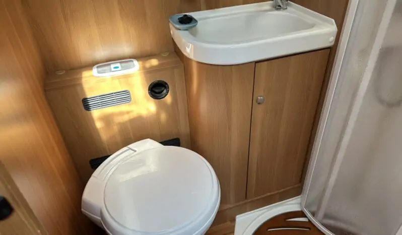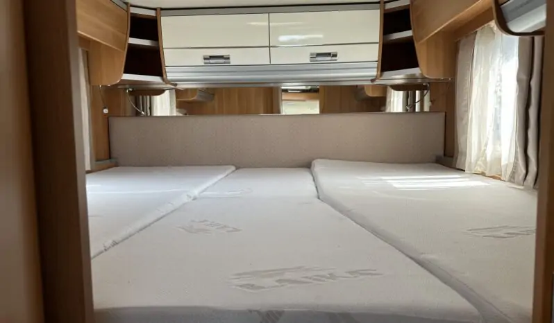 Veranda esterna a tetto – Retrocamera – Antifurto volumetrico e perimetrale – Pannello solare – Doppia batteria servizi – Porta cellula a 2 punti, con finestra, pattumiera e chiusura centralizzata – Doppio pavimento tecnico – Porta bici posteriore – Triogas – Attacco esterno acqua calda/fredda – Oblò Midi Heki zona giorno – Inverter onda pura da 1.500 w – Scambiatore di calore posteriore – Moquette cellula – Frigorifero grande a commutazione automatica – Oblò su letto basculante – Cappa aspirante in cucina – Porta cellula con finestra e pattumiera integrata – Carica batteria Power service da 40 Ah – Luci interne a Led – Comando CP Plus per Truma Combi – Luce esterna – Stacca batterie servizi – Zanzariera porta cellula scorrevole – Gamba telescopica in dinette –