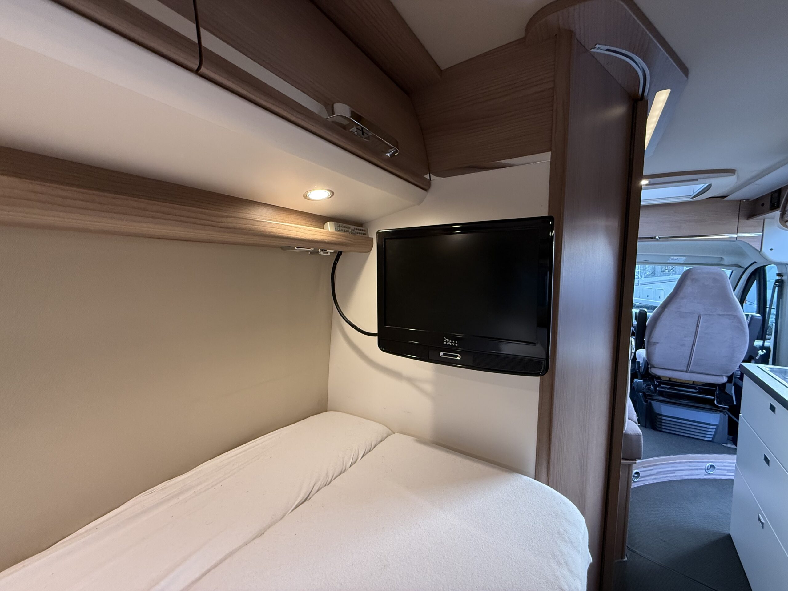Veranda esterna – Pannello solare – Doppia batteria servizi – Truma Combi D 6 E (funzionalità a gasolio ed elettrica) – Comando digitale Truma CP Plus – Oblò Midi Heki zona giorno – Impianto con antenna Tv digitale terrestre – Rivestimento interno climatico in microfibra su soffitto e pareti – Oblò con Turbovent – Supporto TV zona giorno con TV – Copri lavello diviso con tagliere e supporto a parete – Zanzariera scorrevole portellone laterale – Luce esterna su portellone laterale – Attacchi + piastra + Tv zona letti posteriori – Serbatoio acque di scarico incassato e completamente isolato – Finestra supplementare posteriore lato dx – Attacco esterno tavolo – Gradino elettrico large su portellone laterale – Materassi posteriori a 7 zone – Moquette cellula completa – Prolunga piano lavoro cucina – Frontali cucina color bianco madreperla – Doppio pavimento di stivaggio posteriore – Illuminazione diffusa a Led zona giorno