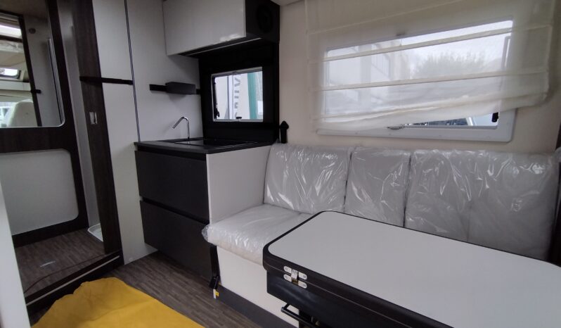 Struttura con completa assenza di legno all’interno di tetto/pareti e pavimento – Parete esterna ed interna in vetroresina – 10 anni di garanzia impermeabilità – Garage con portata fino a 300 kg – Clima cabina – Regolatore di velocità + limitatore di velocità – porta cellula con finestra, pattumiera e chiusura centralizzata – Braccio porta TV – Oblò letto posteriore 70×50 – Stufa Truma Combi 6000 a diesel con comando CP Plus – Cerchi in lega con ruote da 16″ – climatizzatore cabina manuale – Airbag lato guidatore e passeggero – Specchietti retrovisori elettrici – Letto basculante elettrico – ABS – ESP – ESC – Traction Plus – Hill Holder – Hill Descend – Frigorifero da 150 lt a compressore – skid plate + fari neri + paraurti bianco – Fendinebbia – Volante e pomello cambio in pelle – Comandi radio al volante – cruscotto con finutura cromo – TPMS – Freno a mano elettrico – Luce esterna – Serbatoio acqua potabile da 120 lt – Serbatoio acque di recupero da 90 lt – Sedili cabina in coordinato con la tappezzeria interna – Tetto rivestito in soft touch – piano cucina a 2 fuochi – Illuminazione a LED – P-Net X – Oscuarnti plissettati in cabina – Botola a pavimento – Piatto doccia in ABS, rinforzato + pedana – Tavolo a libro – Sky Dome su cupolino – Serbatoio riscaldato – Illuminazione in garage