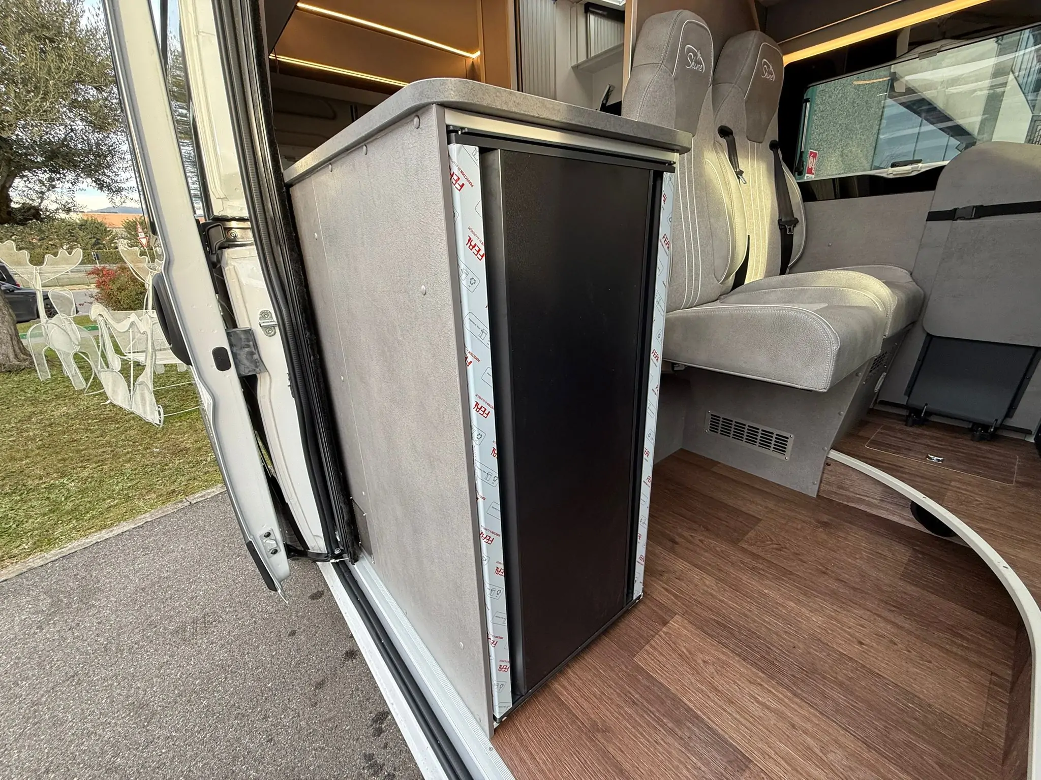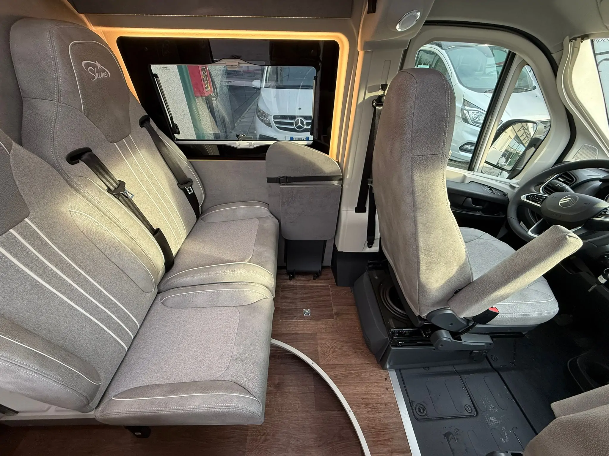 Telaio 35 q.li – serbatoio gasolio 75 lt. – cerchi in lega 15″- ruota di scorta – sedile passeggero regolabile in altezza – oscuranti remis in cabina – doppio airbag – clima cabina manuale – volante in pelle – luci diurne a led – predisp. radio con casse audio – coprisedili cabina come dinette – specchi elettrici riscaldati – tappezzeria speciale silver – cruise control – traction plus – hill descent – strumenti cruscotto cromati – booster di ricarica 25 Ah – Sensore pressione pneumatici – Fari automatici – Sensore pioggia – Antenna DAB integrata – Finestre Seitz S4 con oscurante e zanzariera – Finestra supplementare laterale