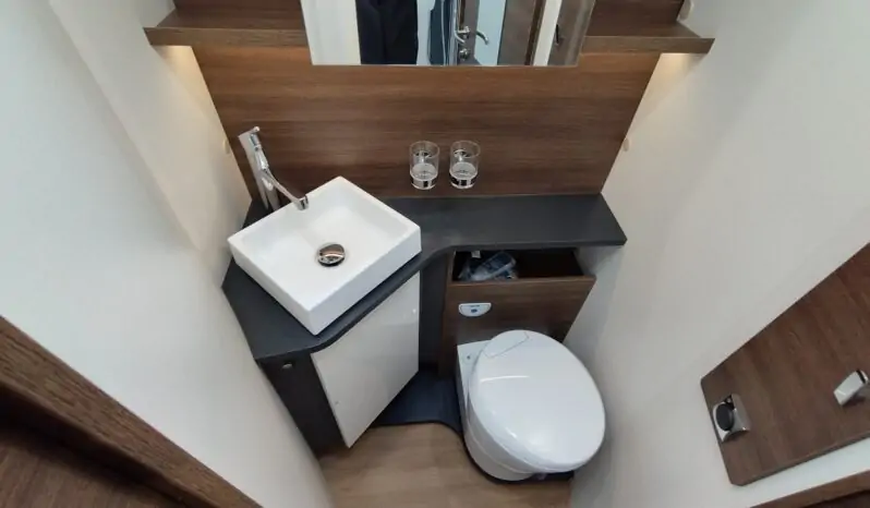 Air bag conducente e passeggero – climatizzatore cabina manuale – Porta conducente con alzacristallo elettrico – Chiusura centralizzata cellula e conducente – Frontale a profilo ribassato per una migliore visibilità – Fari anteriori con luci a led diurne – Fari posteriori a led – Gradino elettrico accesso cellula – Barra di illuminazione a led soffitto gavone – 100% poliestere tetto, pareti e sottoscocca – isolamento in Styrofoam – Riscaldamrento combinato TRUMA COMBI 6 a gas – Sistema anticollisione gas – illuminazione dell’ambiente 100% a led – Nuovo rivestimento in laminato su piano di lavoro cucina e tavolo salotto – cucina con cassetti con chiusura a richiamo e bloccaggio centralizzato – Predisposizione per doppia batteria servizi – Caricabatterie predisposti per batterie al litio – mobile TV con staffa per flatscreen LCD 32″ – Letto centrale XXL con misure da 160 cm x 196 cm – Rete letto retrattile – Letto centrale regolabile elettricamente in altezza – Letto basculante a 2 posti con doghe – Serbatoio acqua potabile da 140 lt (20 lt per la condizione di marcia) – Serbatoio acque di recupero da 90 lt – Frigorifero da 156 lt con AES (selettore della miglior fonte di energia) – Vano porta bombole per 2 bombole da 11kg